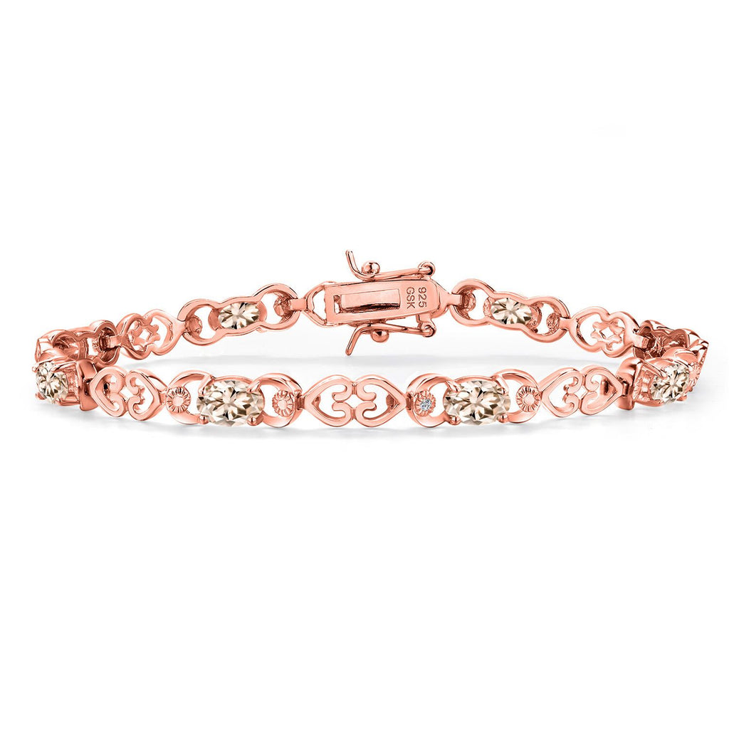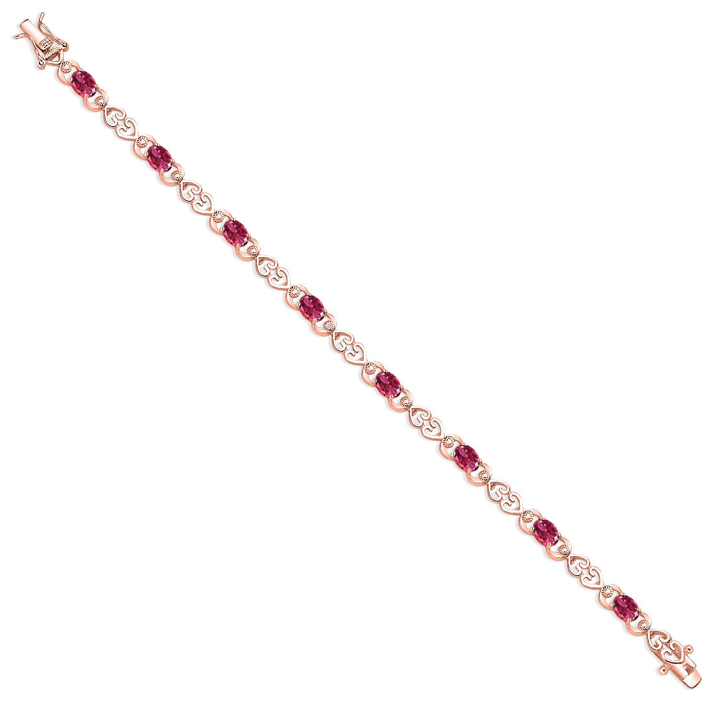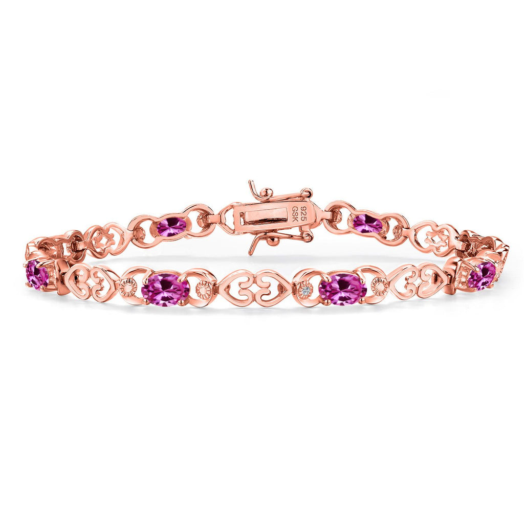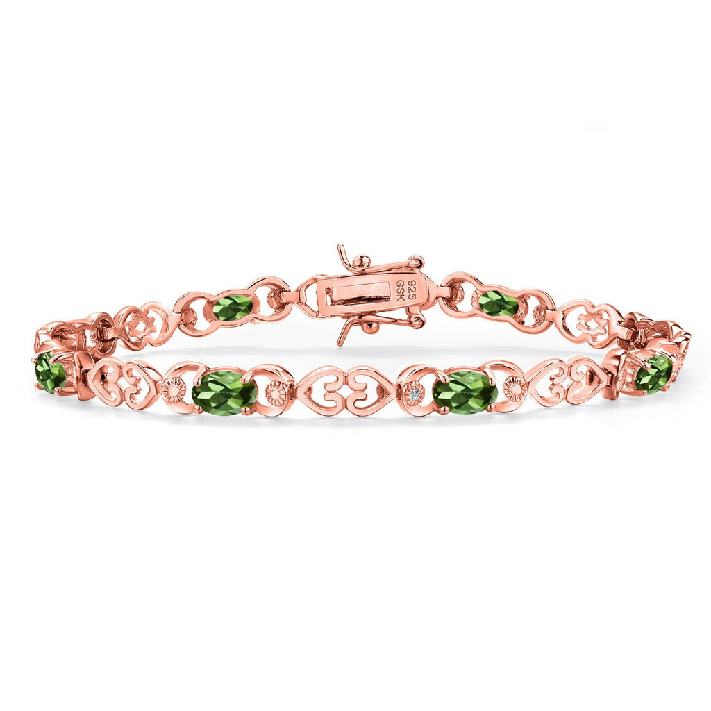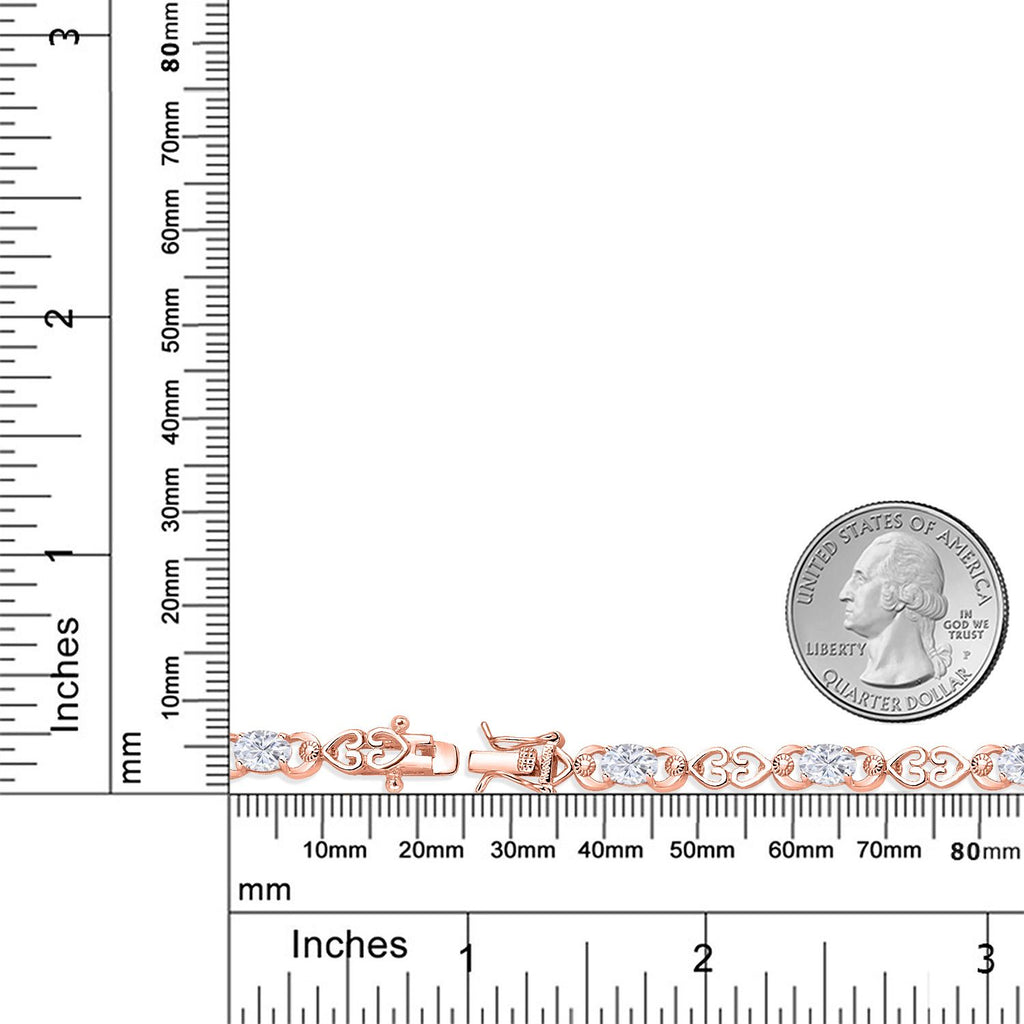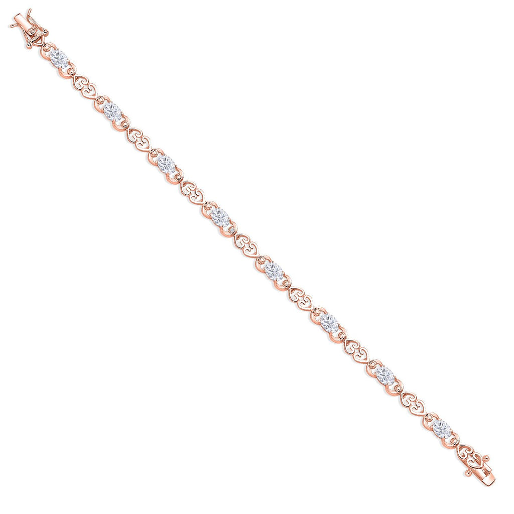Gemstone Birthstone Heart Link Tennis Bracelet for Women | 18K Rose Gold Plated Silver | Oval 6X4MM | 7.25 Inch Length | Double Locking Fold Over Clasp | Fine Jewelry for Her Mom Wife