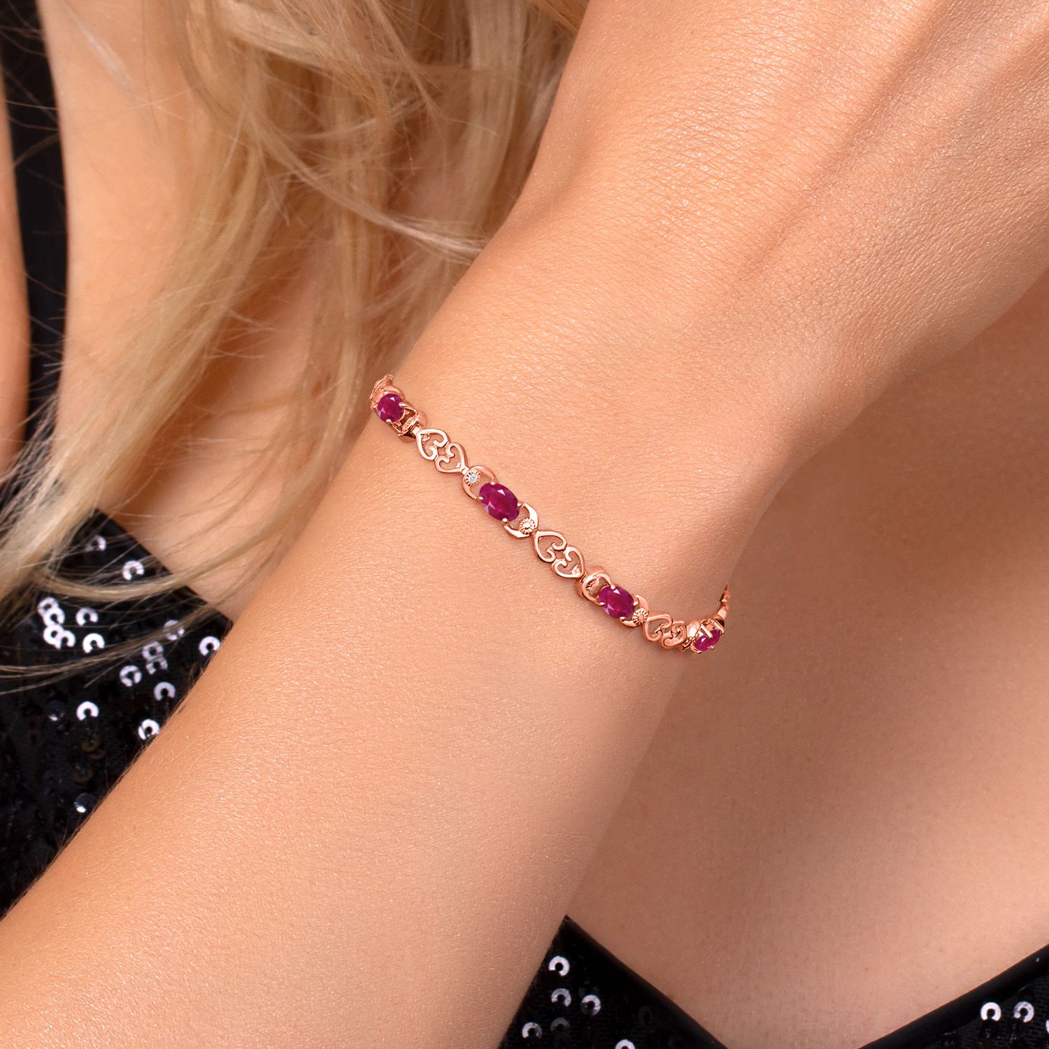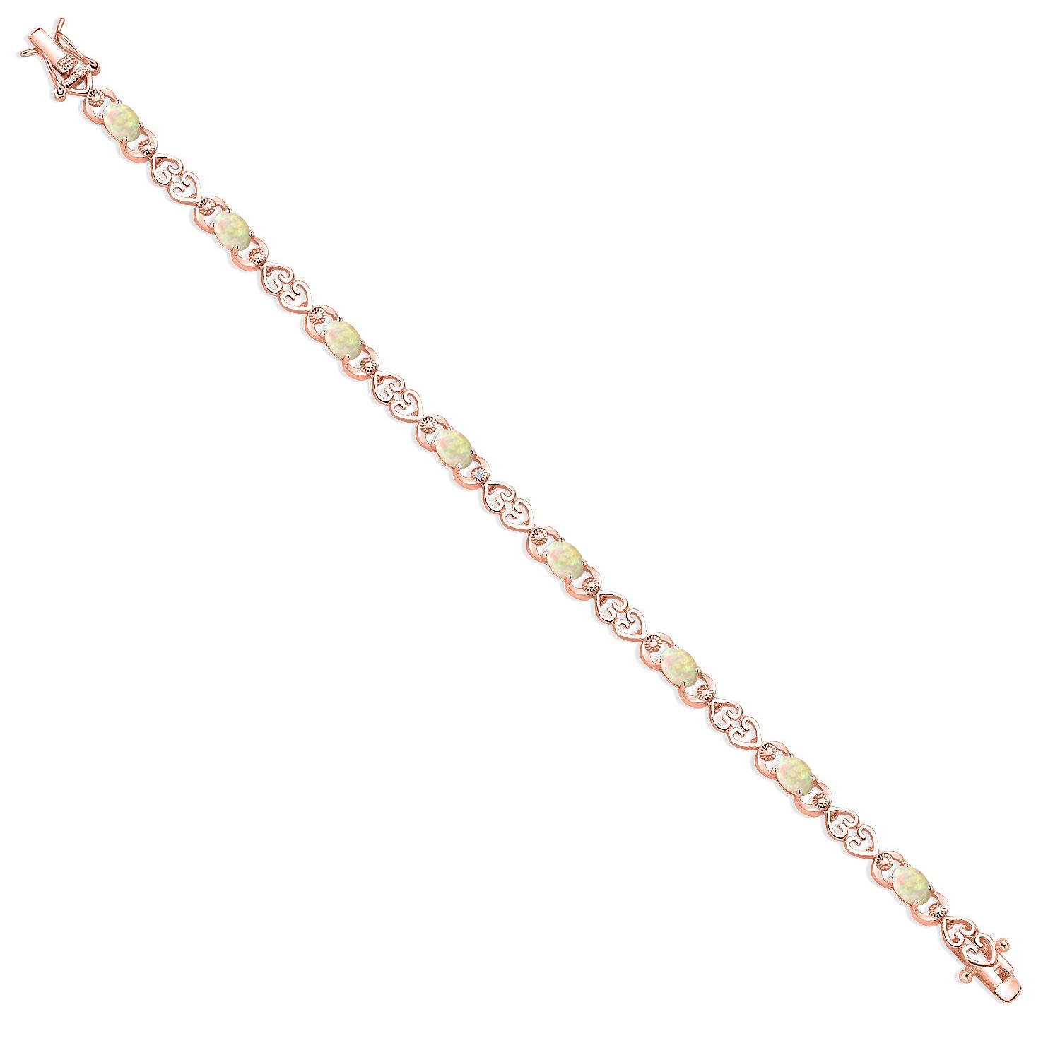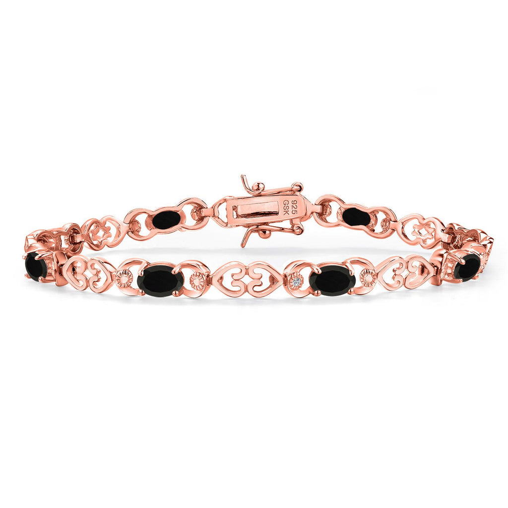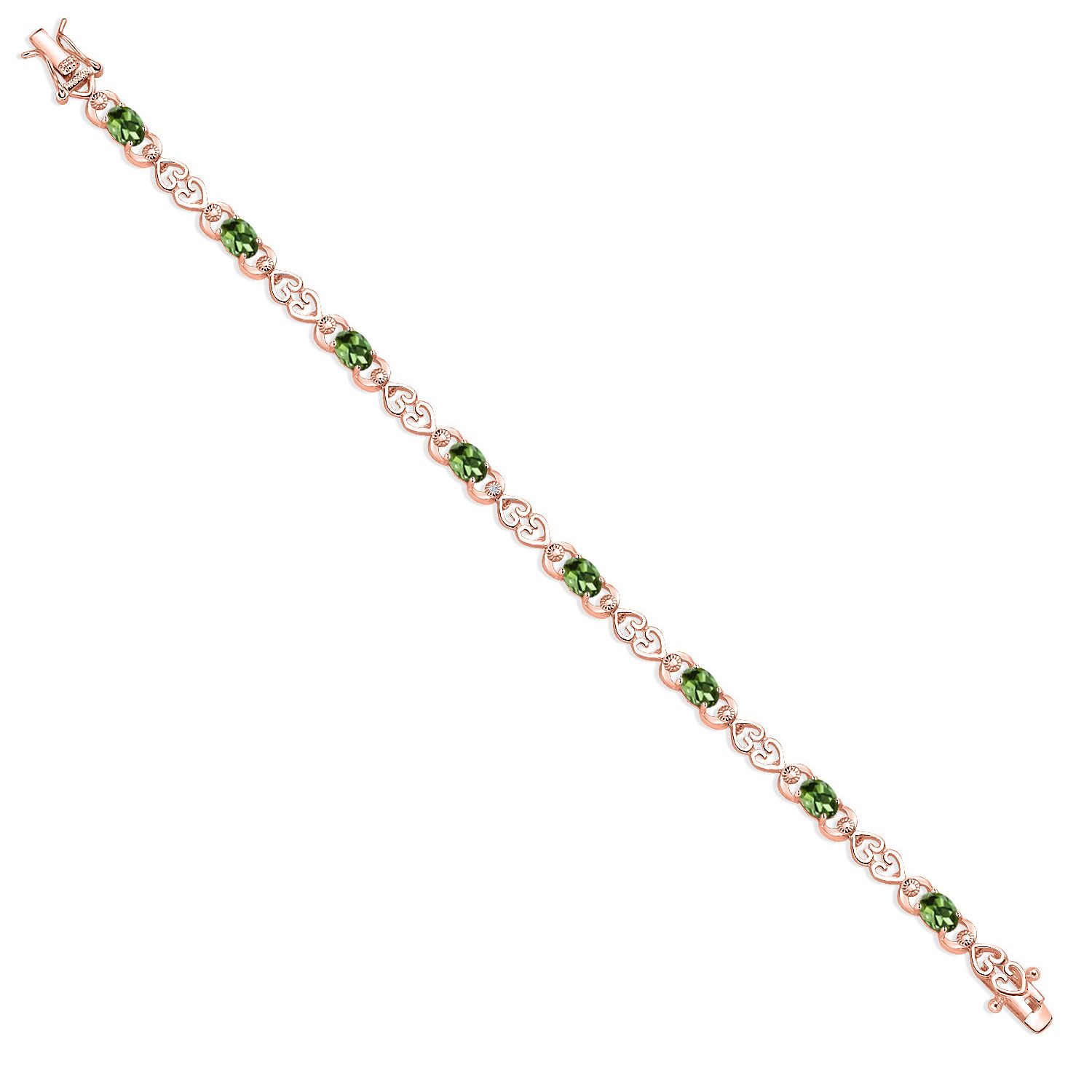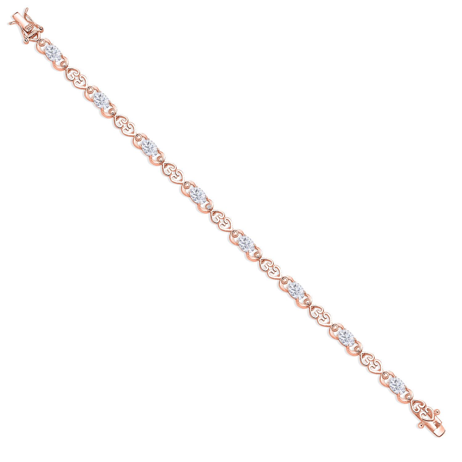 Gemstone Birthstone Heart Link Tennis Bracelet for Women | 18K Rose Gold Plated Silver | Oval 6X4MM | 7.25 Inch Length | Double Locking Fold Over Clasp | Fine Jewelry for Her Mom Wife