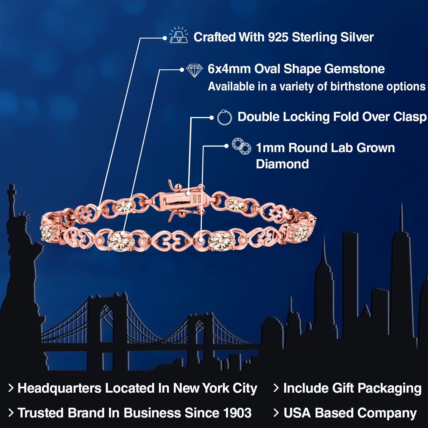 18K ROSE GOLD PLATED ELEGANCE: Crafted from premium 18K rose gold plated silver, this bracelet offers the luxurious appeal of gold with the strength and durability of silver. The warm, romantic hue of rose gold beautifully complements the vivid gemstones, creating a harmonious blend of color and shine. The hypoallergenic properties of the metal ensure that even those with sensitive skin can wear this piece comfortably, adding a touch of elegance to any outfit.