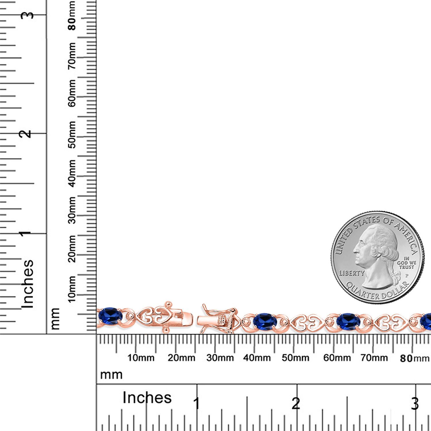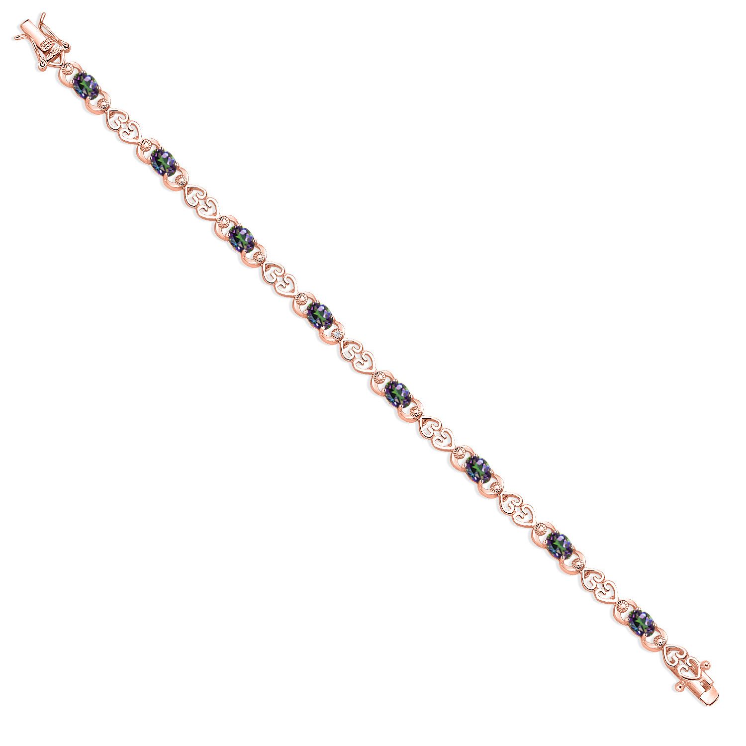 HEART LINK STYLE WITH DIAMOND ACCENTS: Each stone is set within a delicate heart-shaped link, symbolizing lasting connection and love. The continuous design flows gracefully along the wrist, accented by shimmering 1MM round lab grown diamonds that provide added brilliance without overpowering the vibrant center stones. It’s a graceful and meaningful design that complements any occasion.