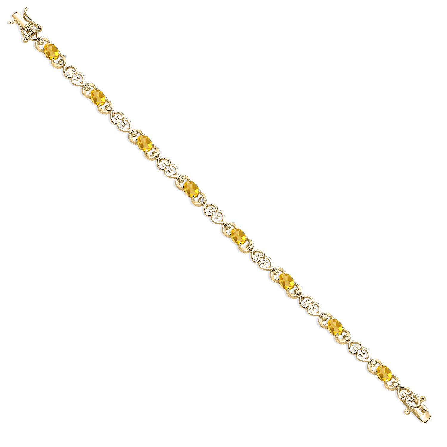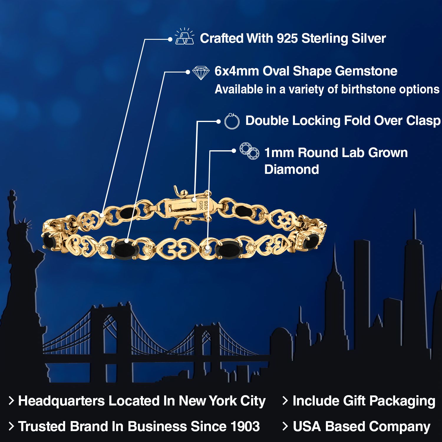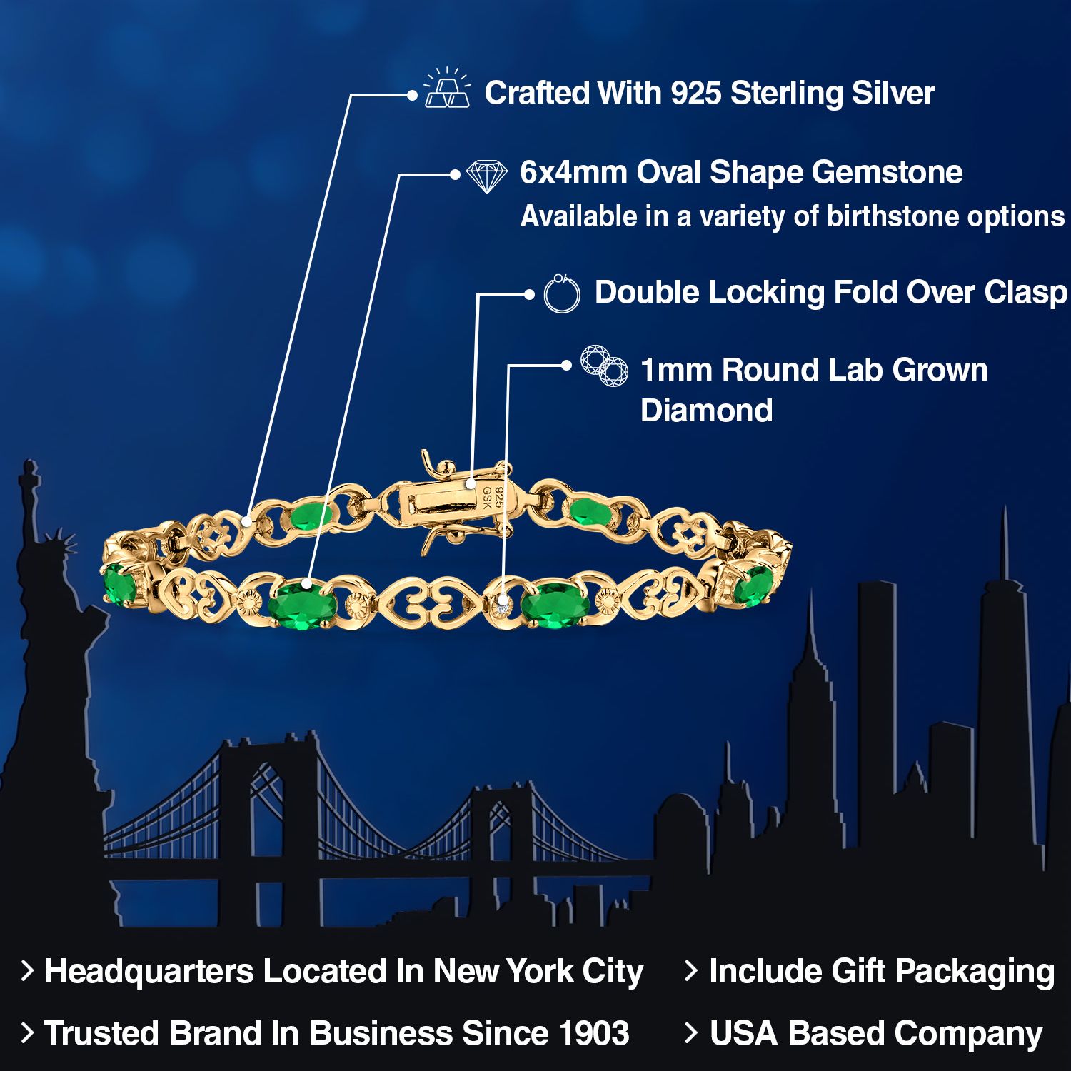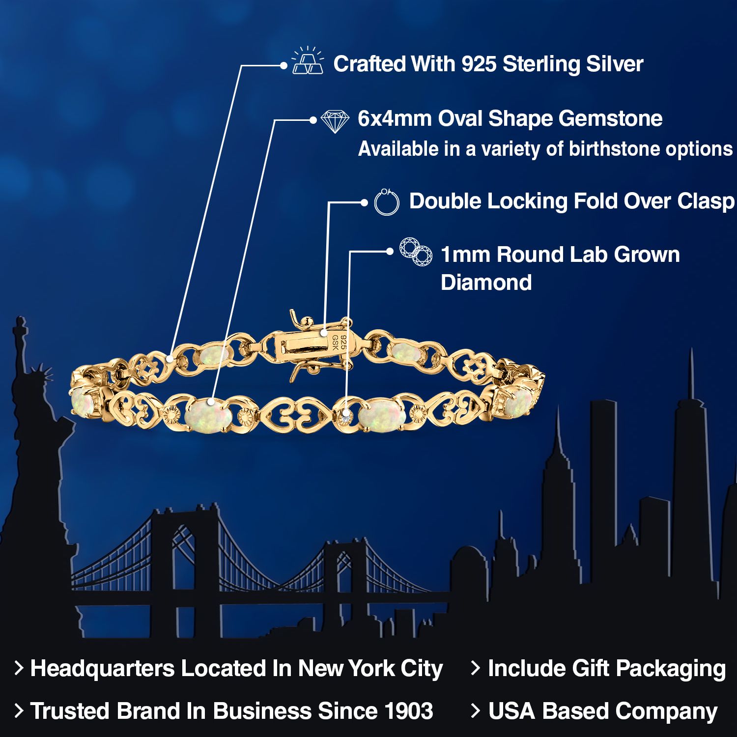 Gemstone Birthstone Heart Link Tennis Bracelet for Women | 18K Yellow Gold Plated Silver | Oval 6X4MM | 7.25 Inch Length | Double Locking Fold Over Clasp | Fine Jewelry for Her Mom Wife