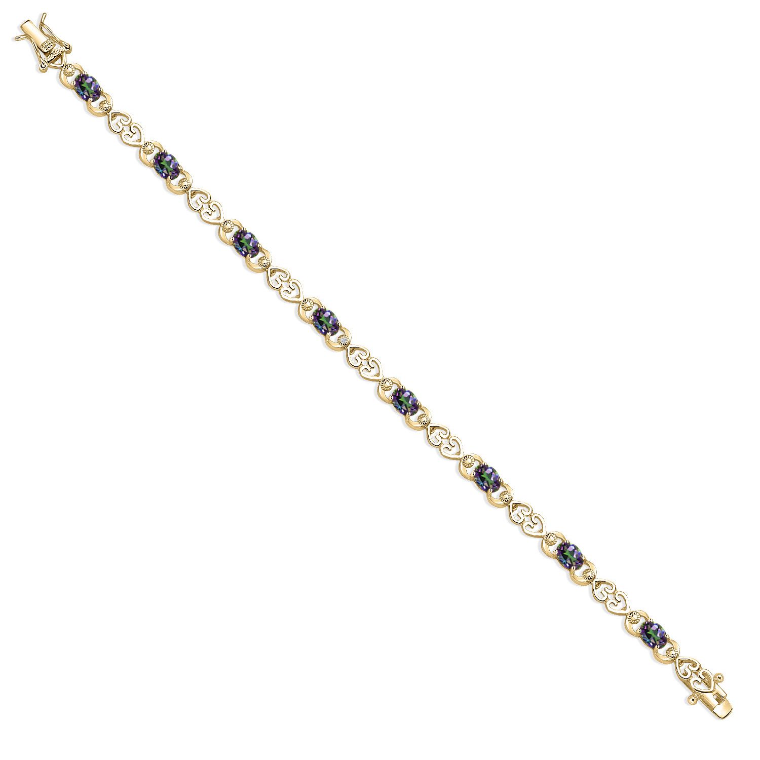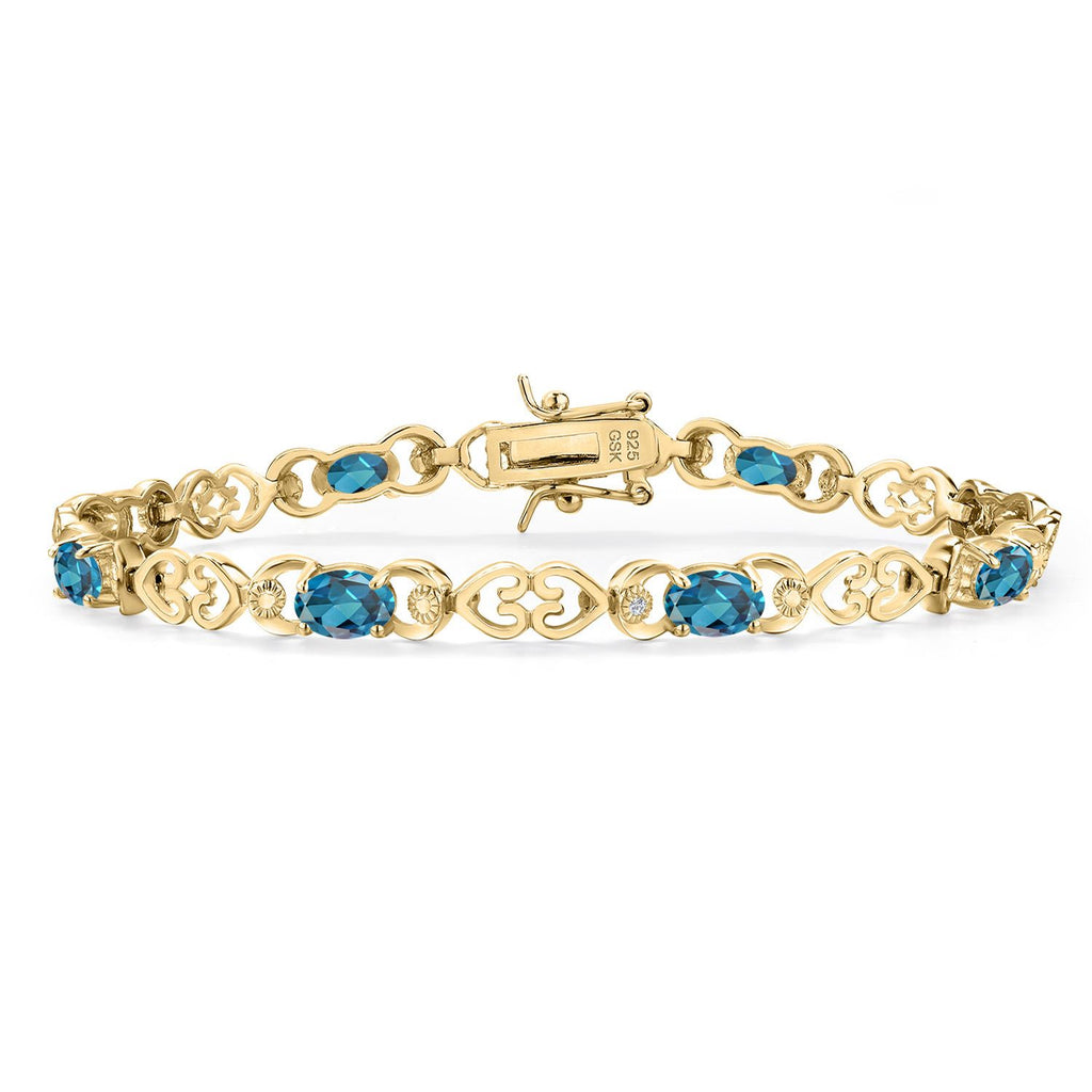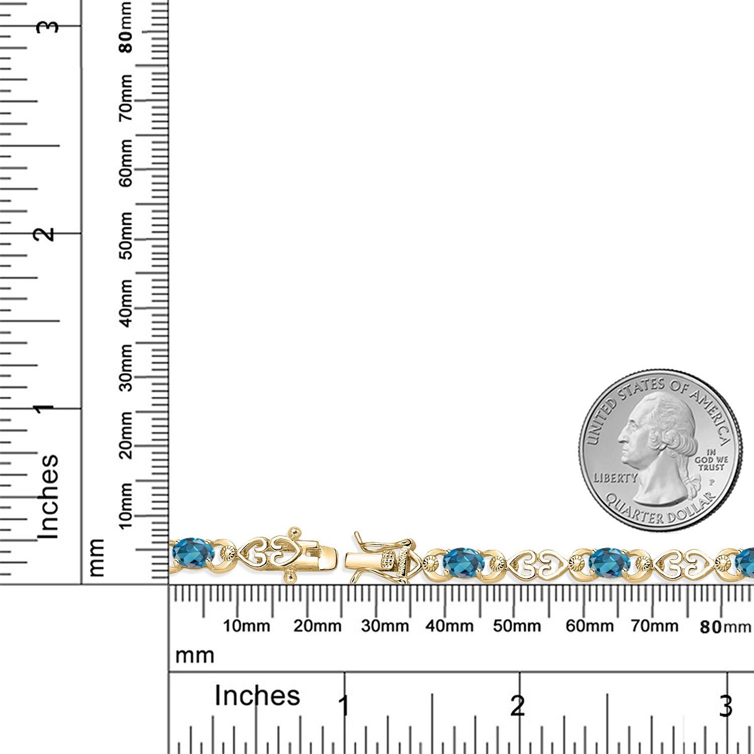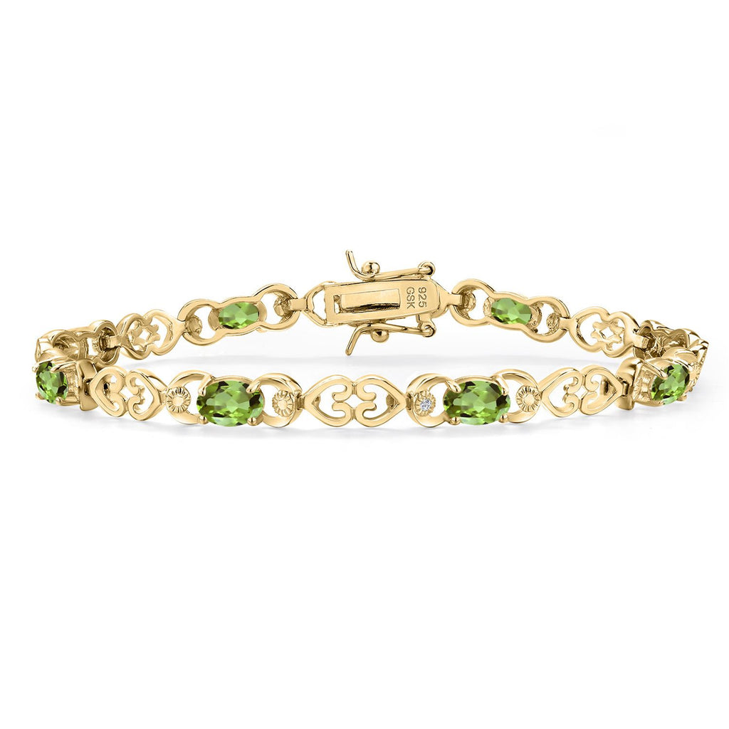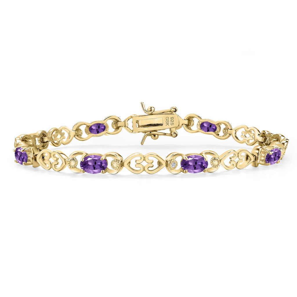 Gemstone Birthstone Heart Link Tennis Bracelet for Women | 18K Yellow Gold Plated Silver | Oval 6X4MM | 7.25 Inch Length | Double Locking Fold Over Clasp | Fine Jewelry for Her Mom Wife