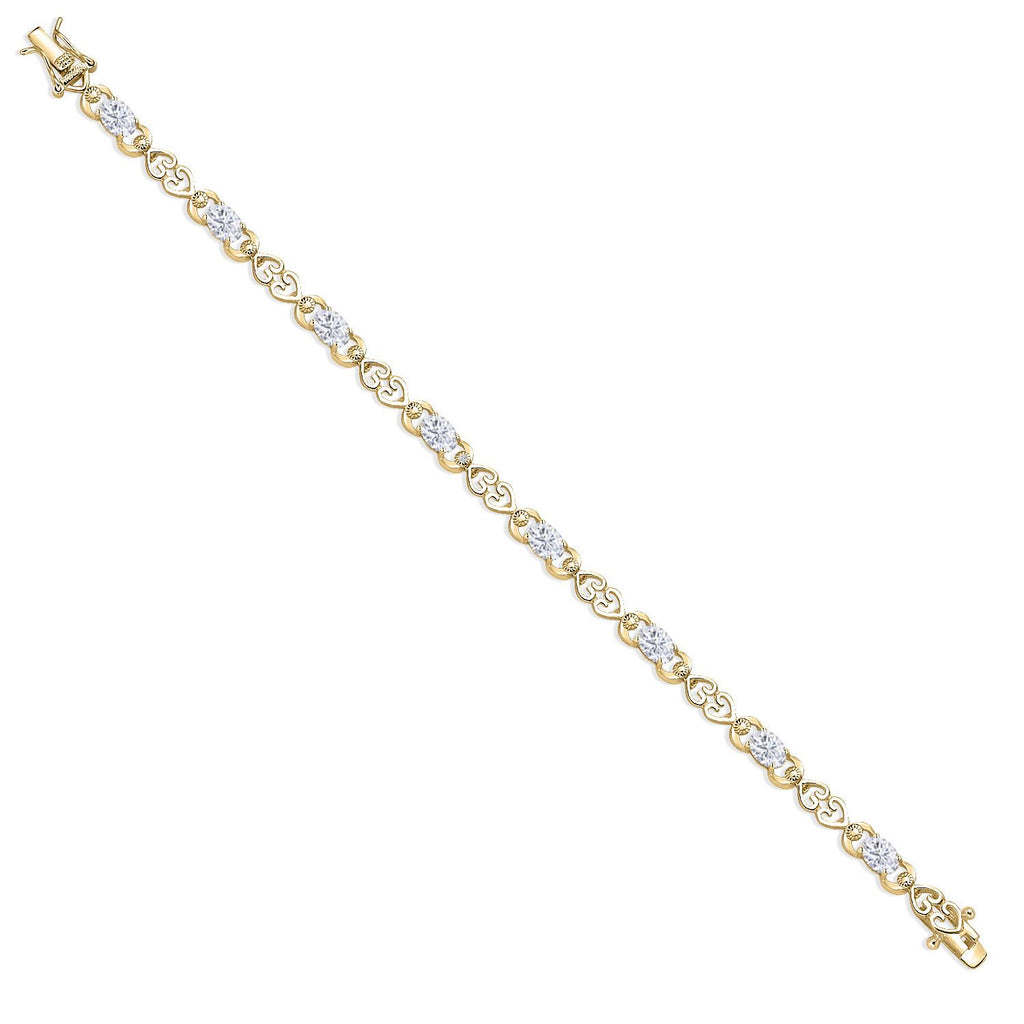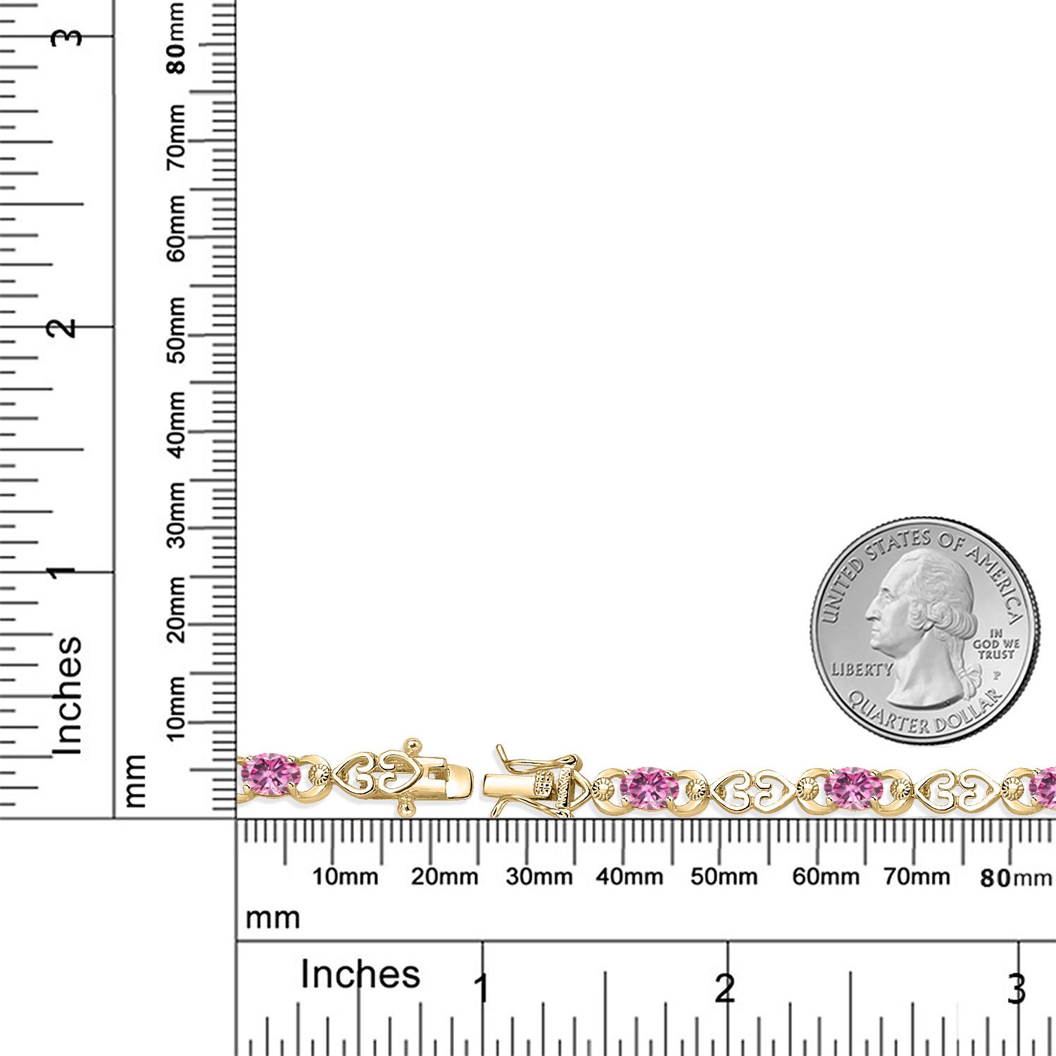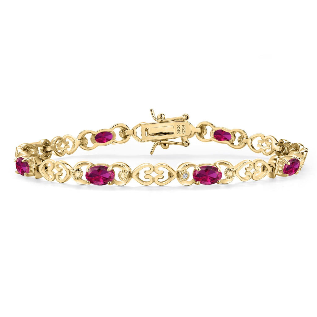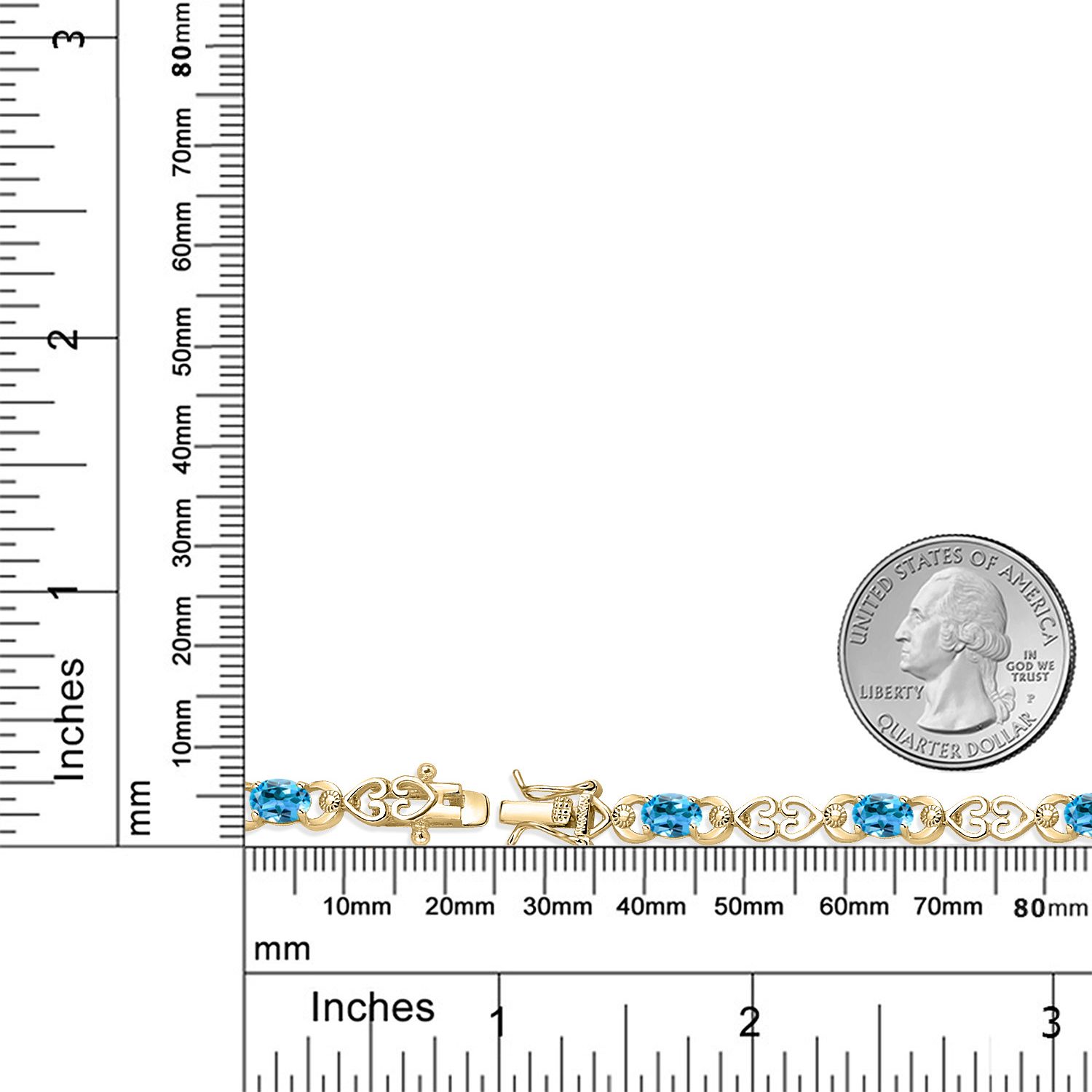 Gemstone Birthstone Heart Link Tennis Bracelet for Women | 18K Yellow Gold Plated Silver | Oval 6X4MM | 7.25 Inch Length | Double Locking Fold Over Clasp | Fine Jewelry for Her Mom Wife
