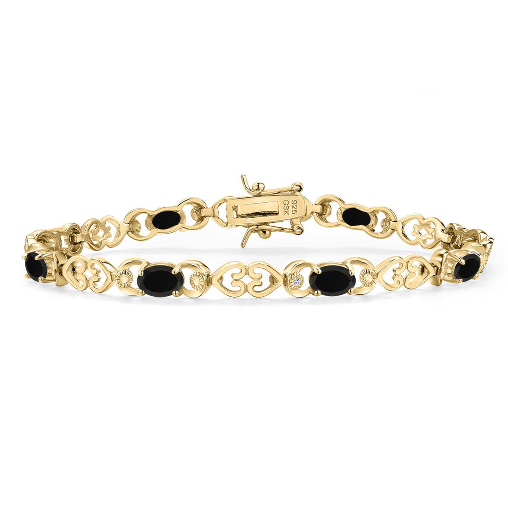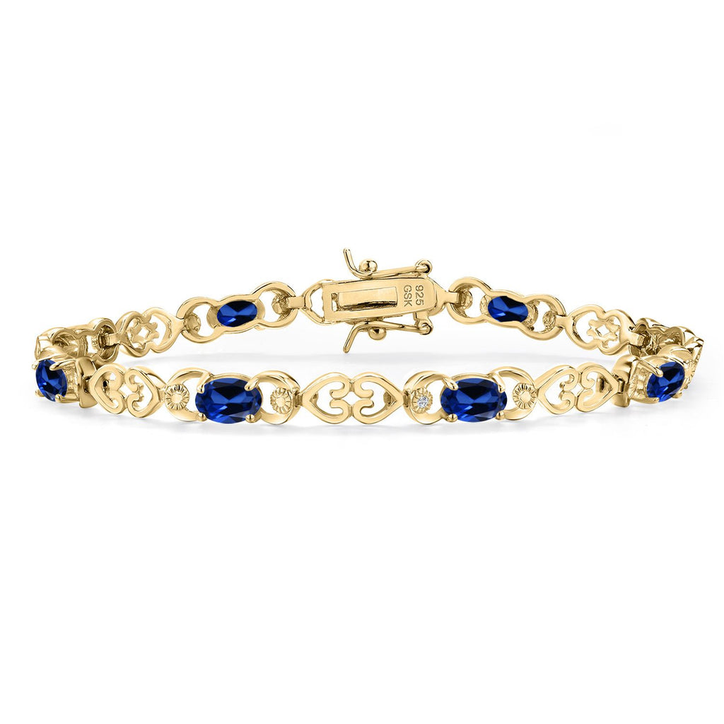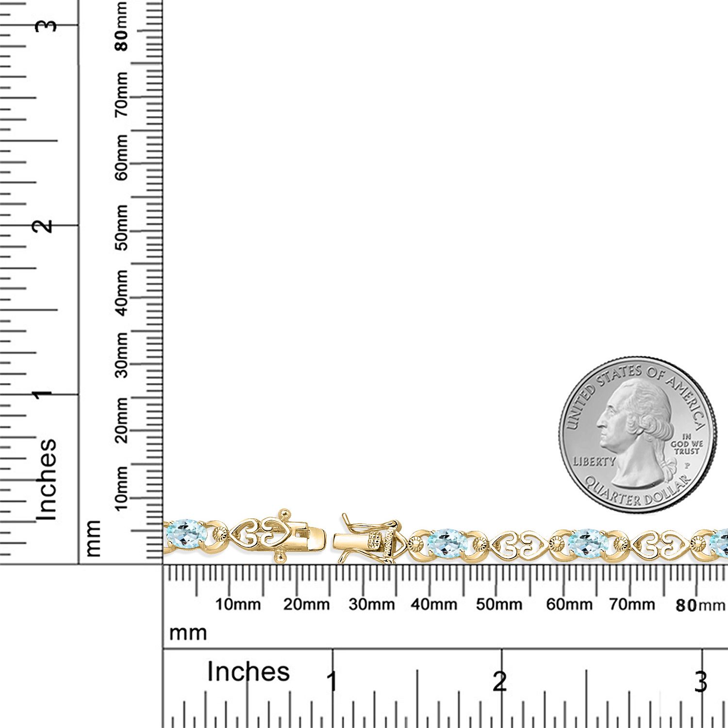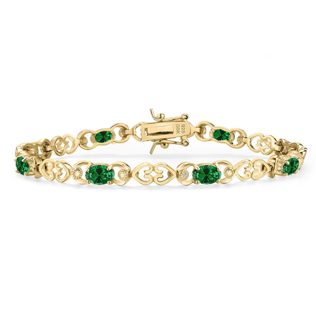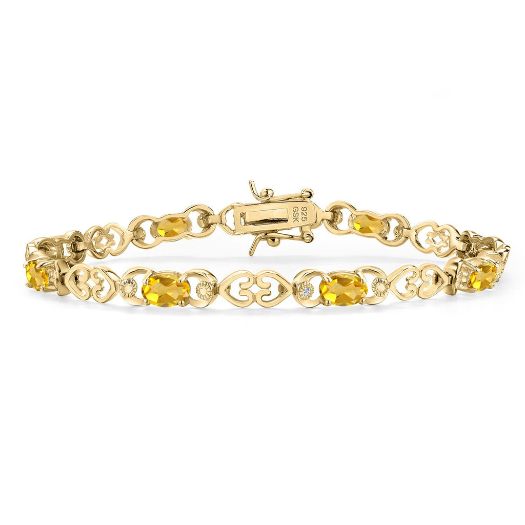 Gemstone Birthstone Heart Link Tennis Bracelet for Women | 18K Yellow Gold Plated Silver | Oval 6X4MM | 7.25 Inch Length | Double Locking Fold Over Clasp | Fine Jewelry for Her Mom Wife
