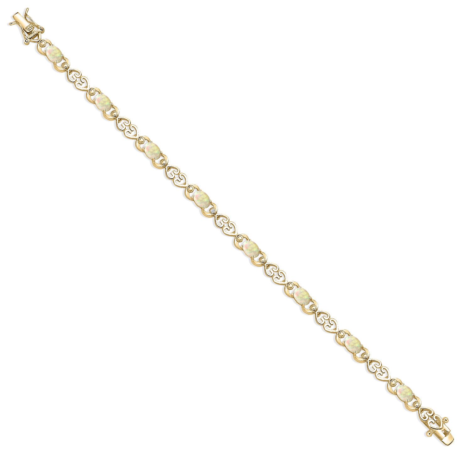 OVAL 6X4MM GEMSTONE ELEGANCE: This heart link tennis bracelet features a continuous row of 6X4MM oval-cut gemstone birthstones, all selected from a range of meaningful options. The consistent gemstone choice throughout the design creates a harmonious look, radiating color and brilliance from every angle. Sparkling 1MM round lab grown diamond accents between each link enhance the overall elegance with refined contrast and sophistication.