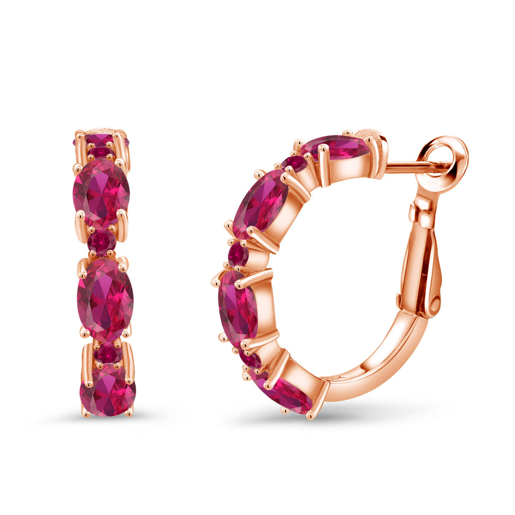 Gemstone Birthstone Hoop Earrings For Women | 18K Rose Gold Plated Silver | Oval 6X4MM and Round 2MM | 20MM = 0.80 Inch | Fine Jewelry for Her Mom Women Wife