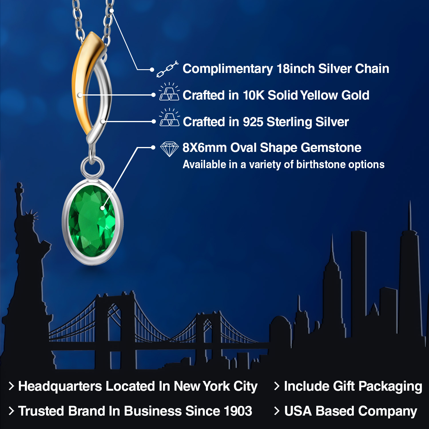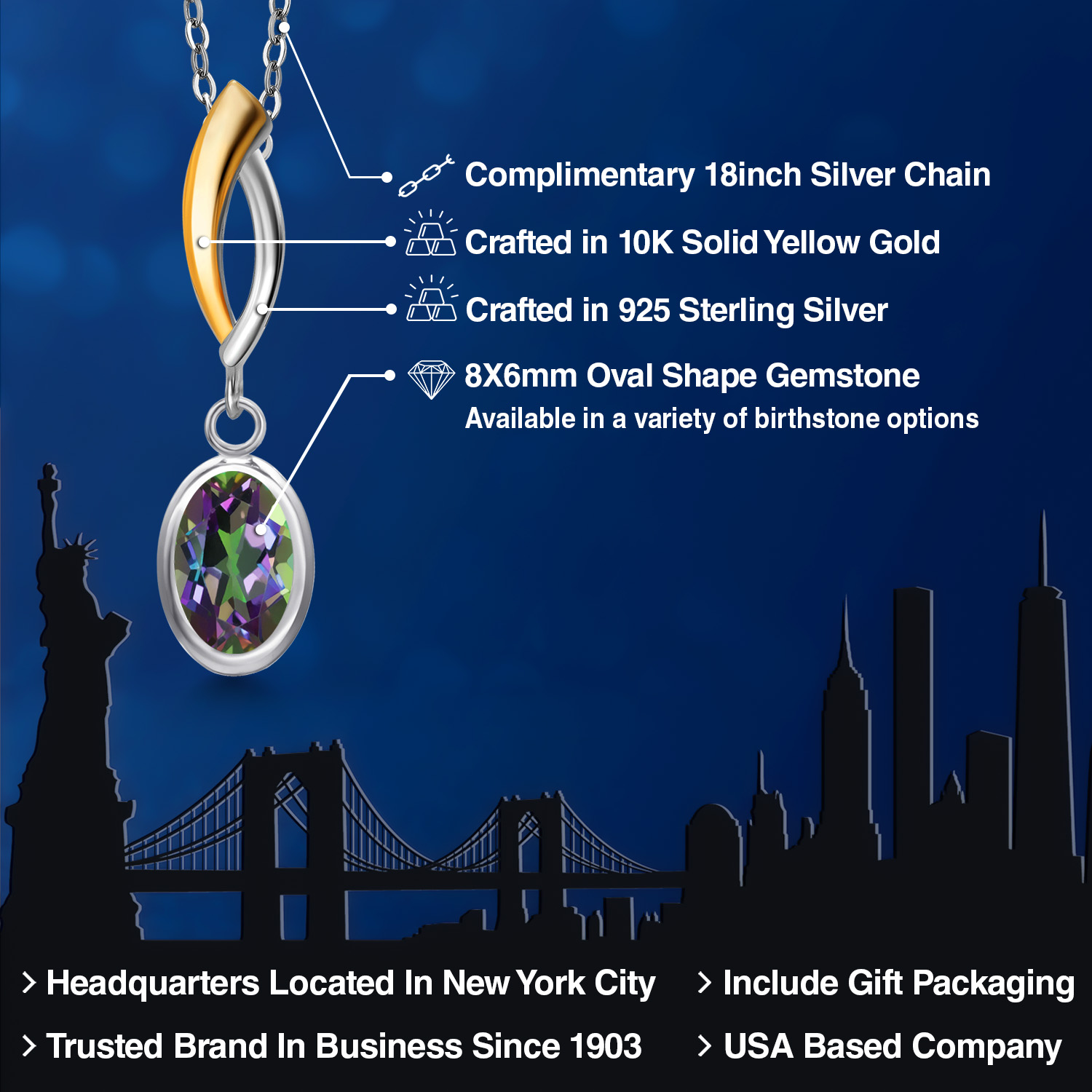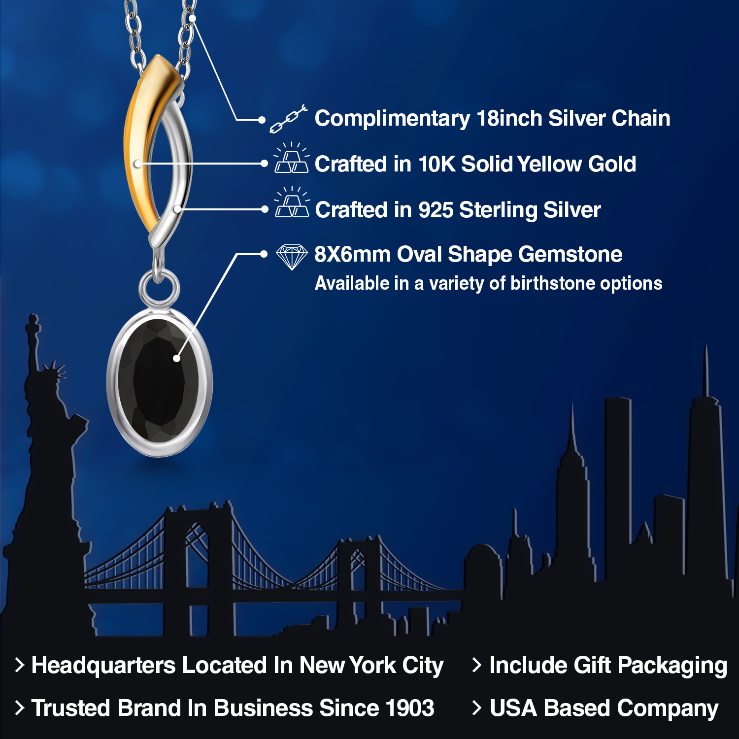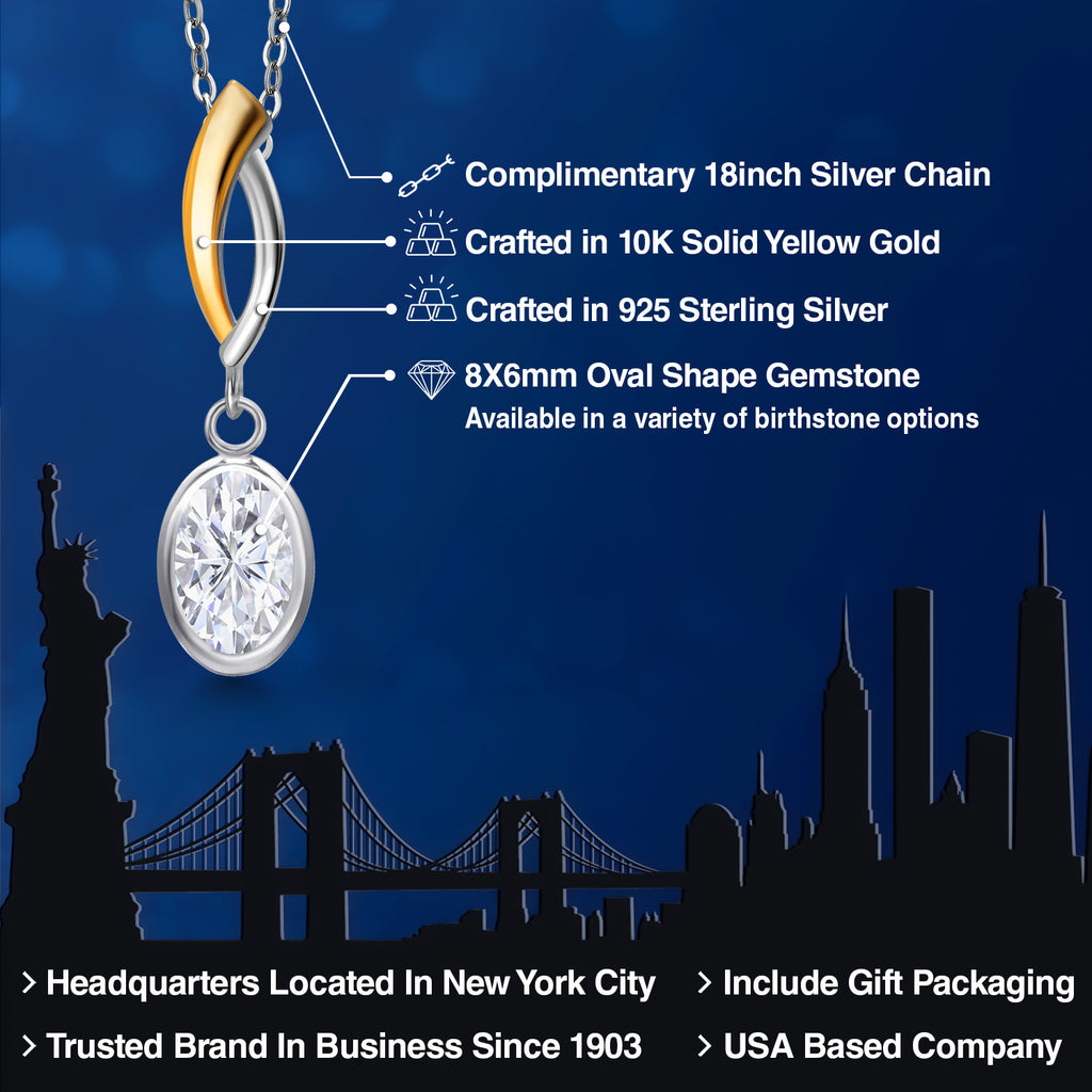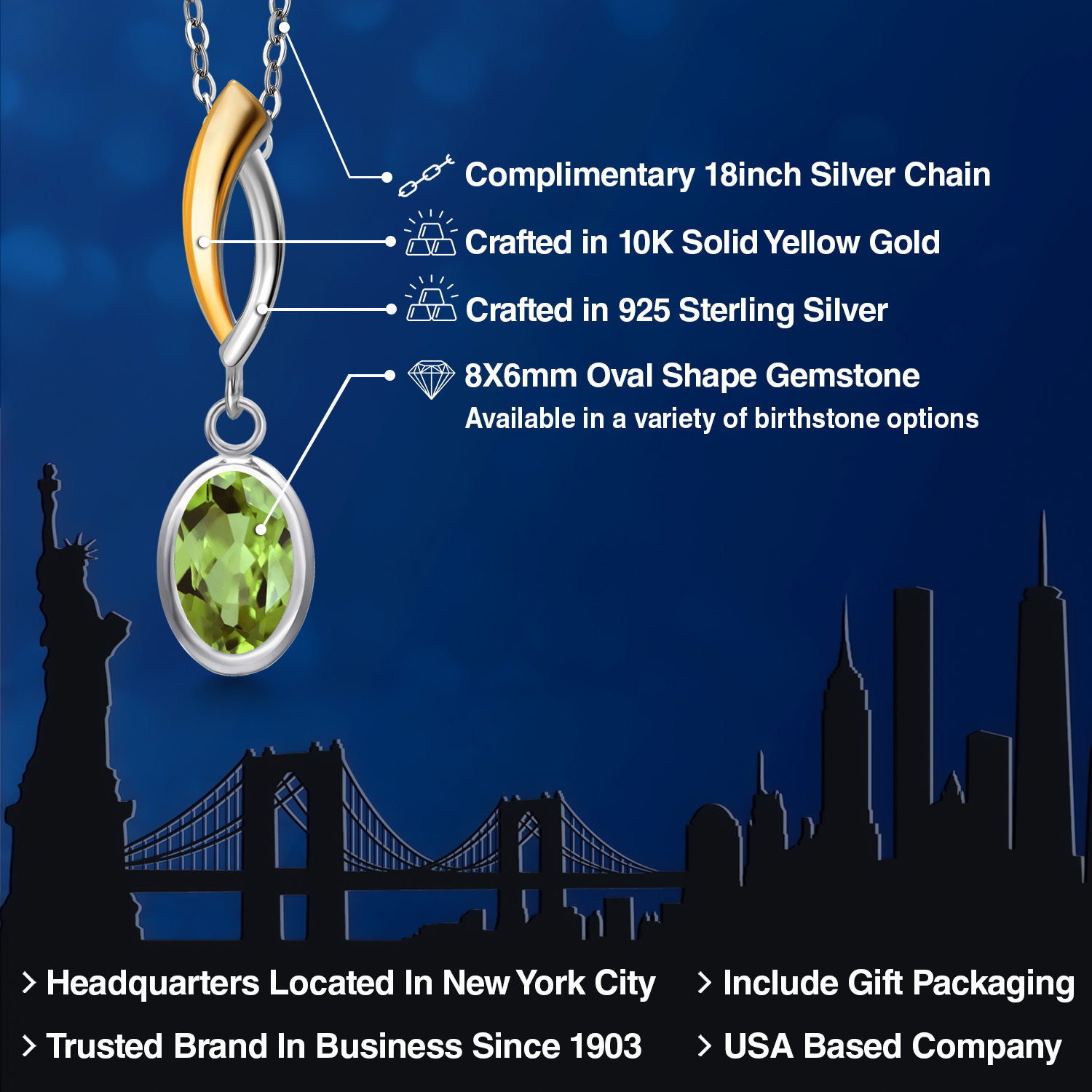 Gemstone Birthstone Infinity Pendant Necklace for Women in 925 Silver and 10K Yellow Gold | Oval 8X6MM and Round 1.2MM Accents | With 18 Inch Chain | Elegant Two-Tone Twisted Drop Necklace