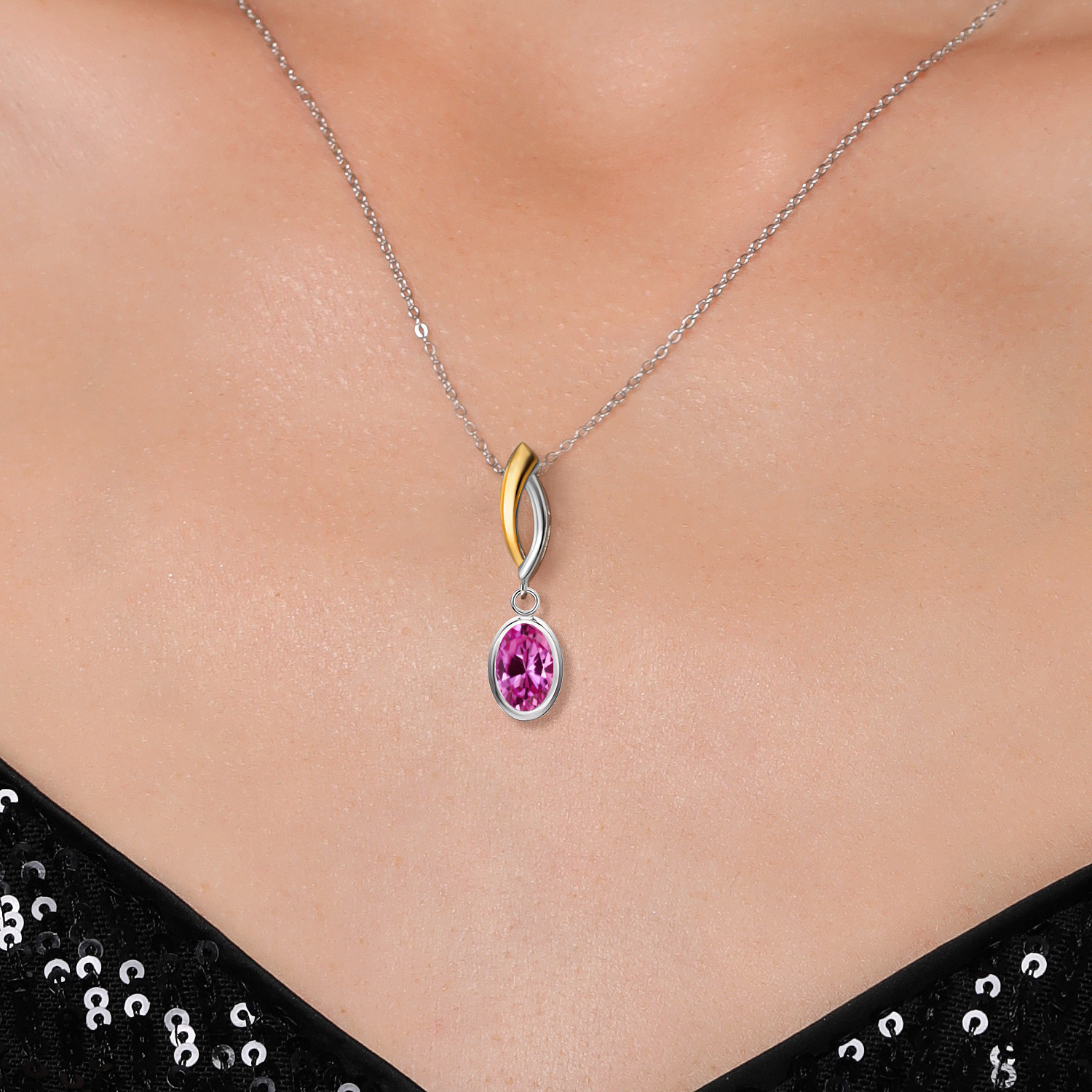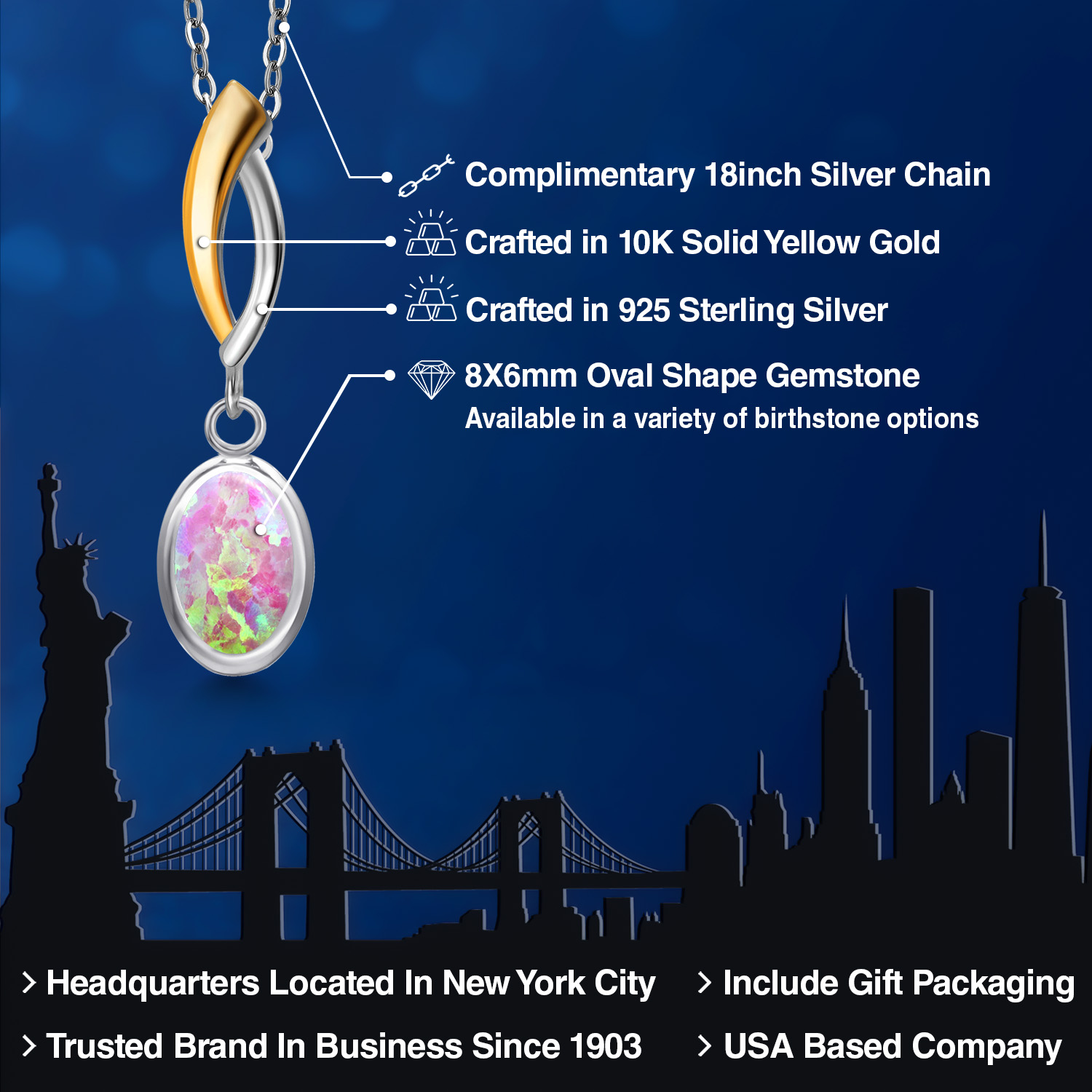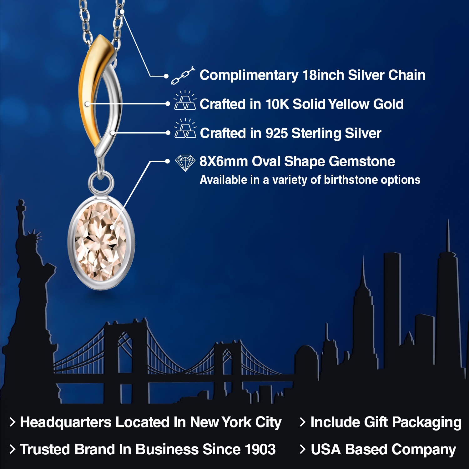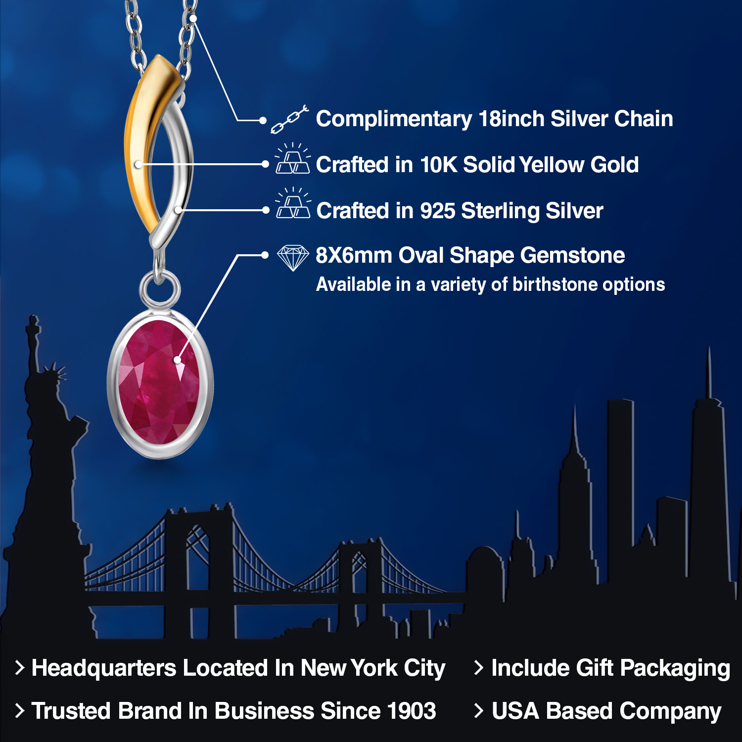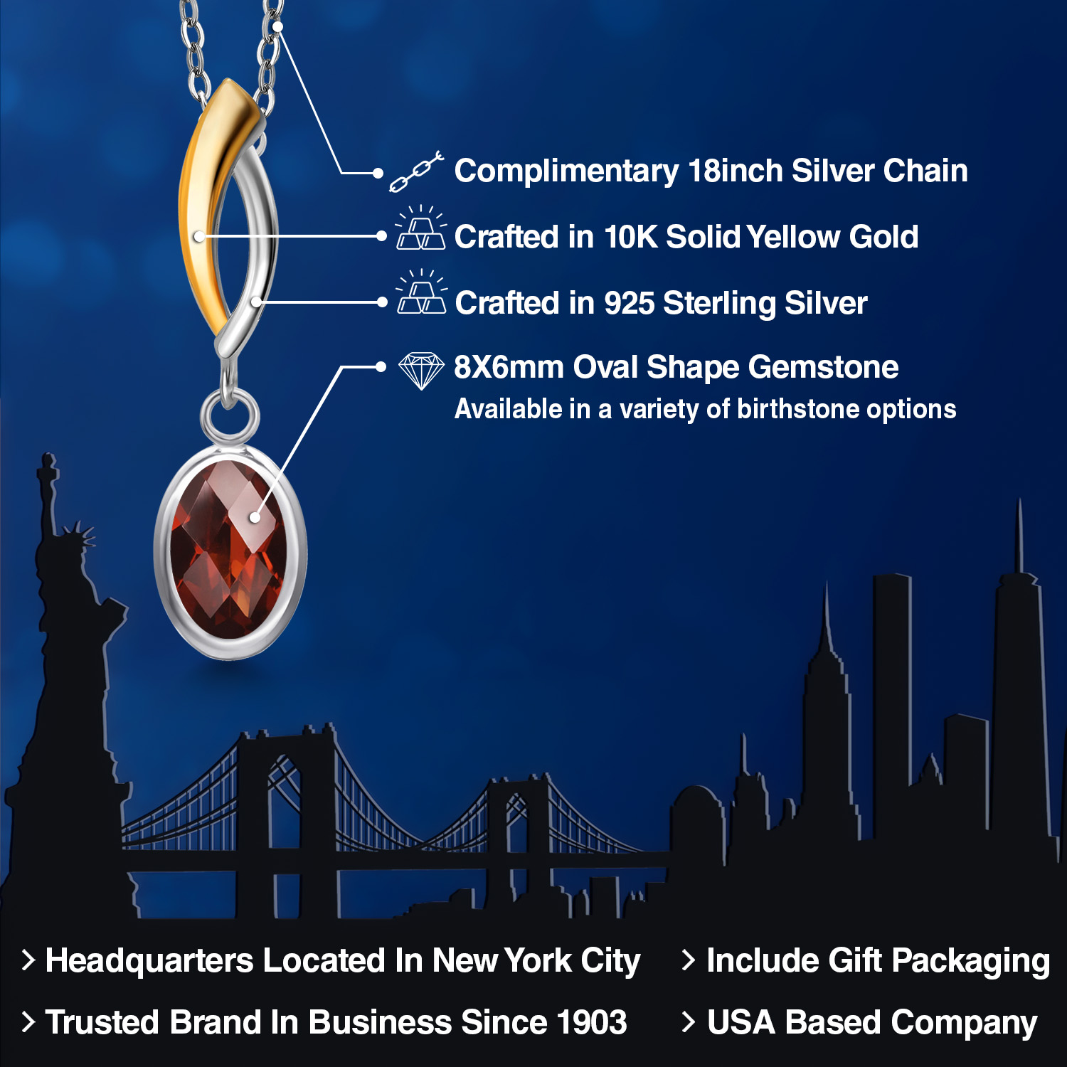 Gemstone Birthstone Infinity Pendant Necklace for Women in 925 Silver and 10K Yellow Gold | Oval 8X6MM and Round 1.2MM Accents | With 18 Inch Chain | Elegant Two-Tone Twisted Drop Necklace