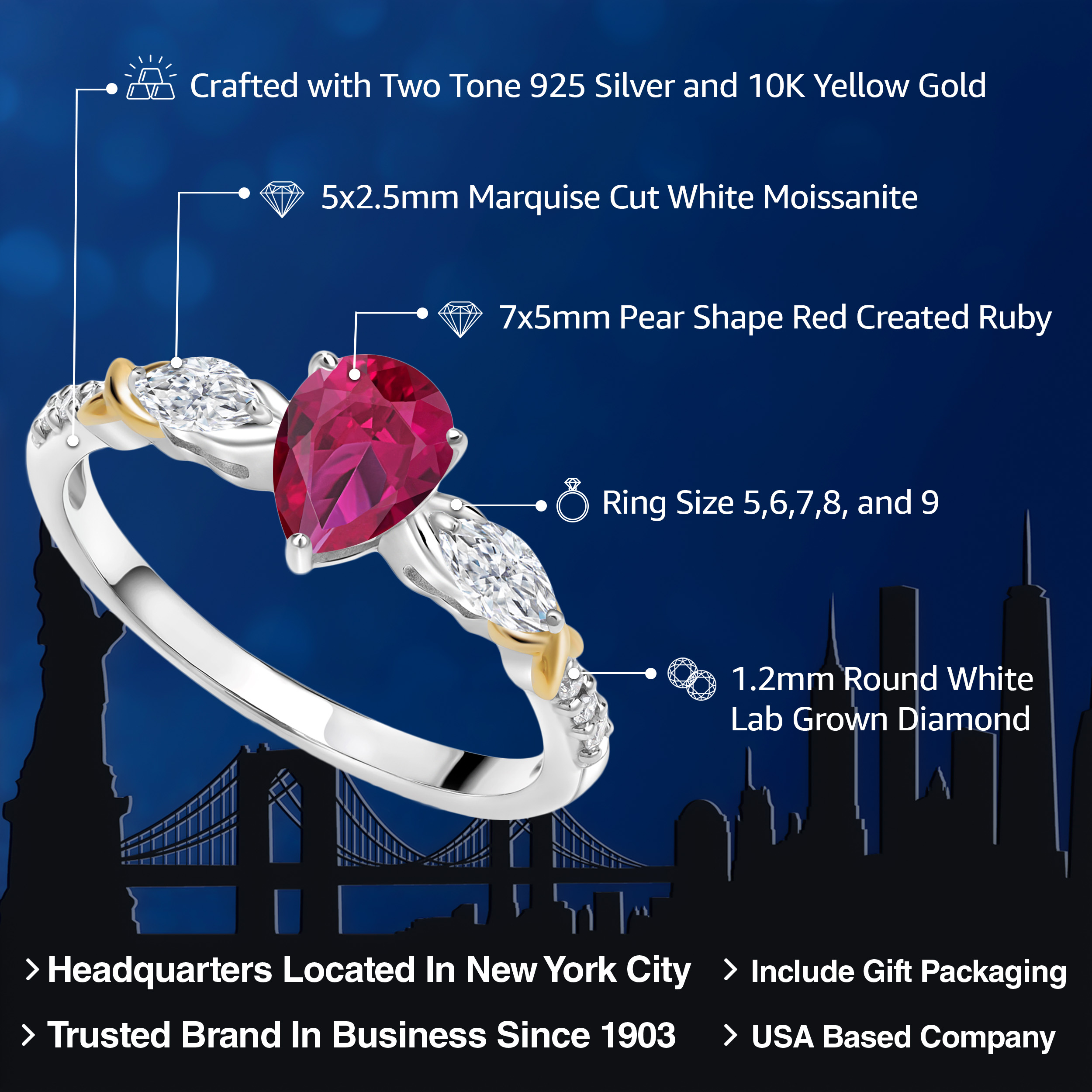 2-Tone Engagement Ring For Women | 925 Silver and 10K Yellow Gold | Gemstone Birthstone | 6MM Cushion Cut | Wedding Anniversary Promise Ring | Available In Size 5, 6, 7, 8, 9