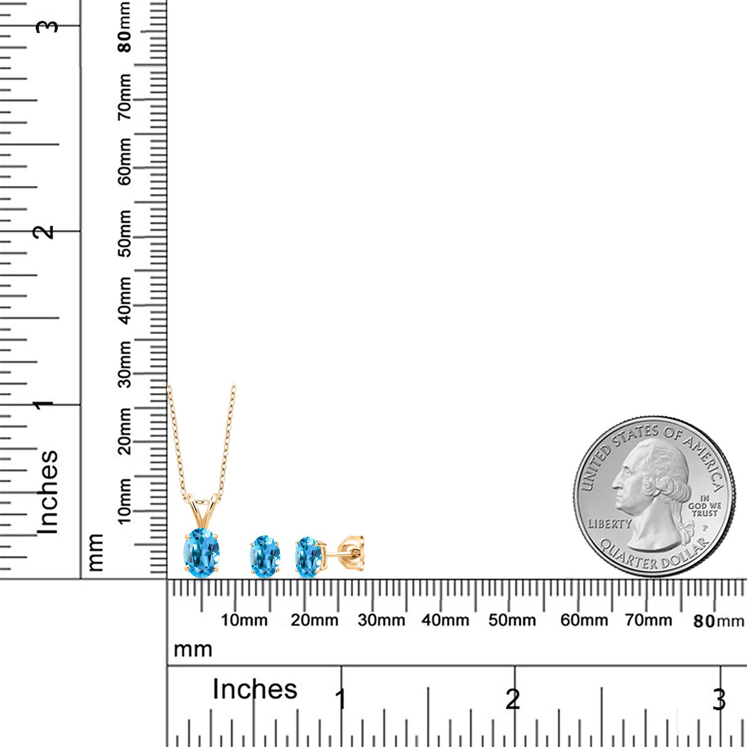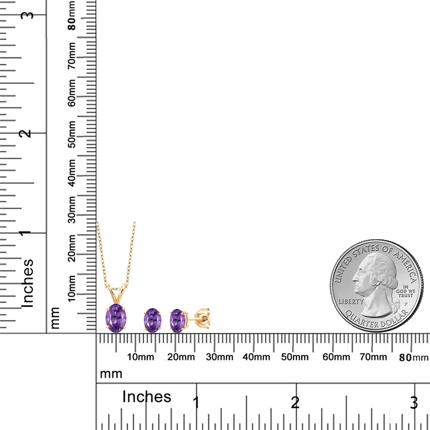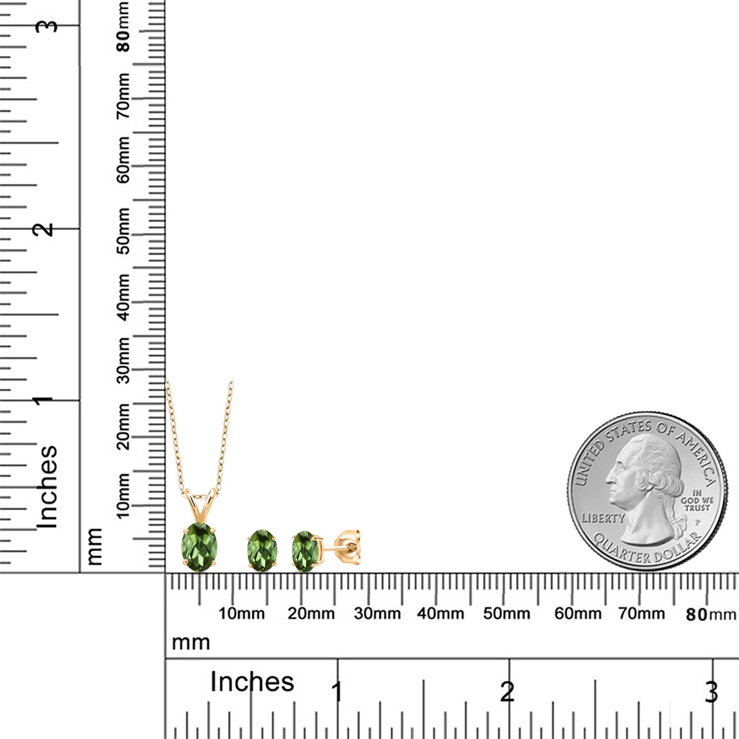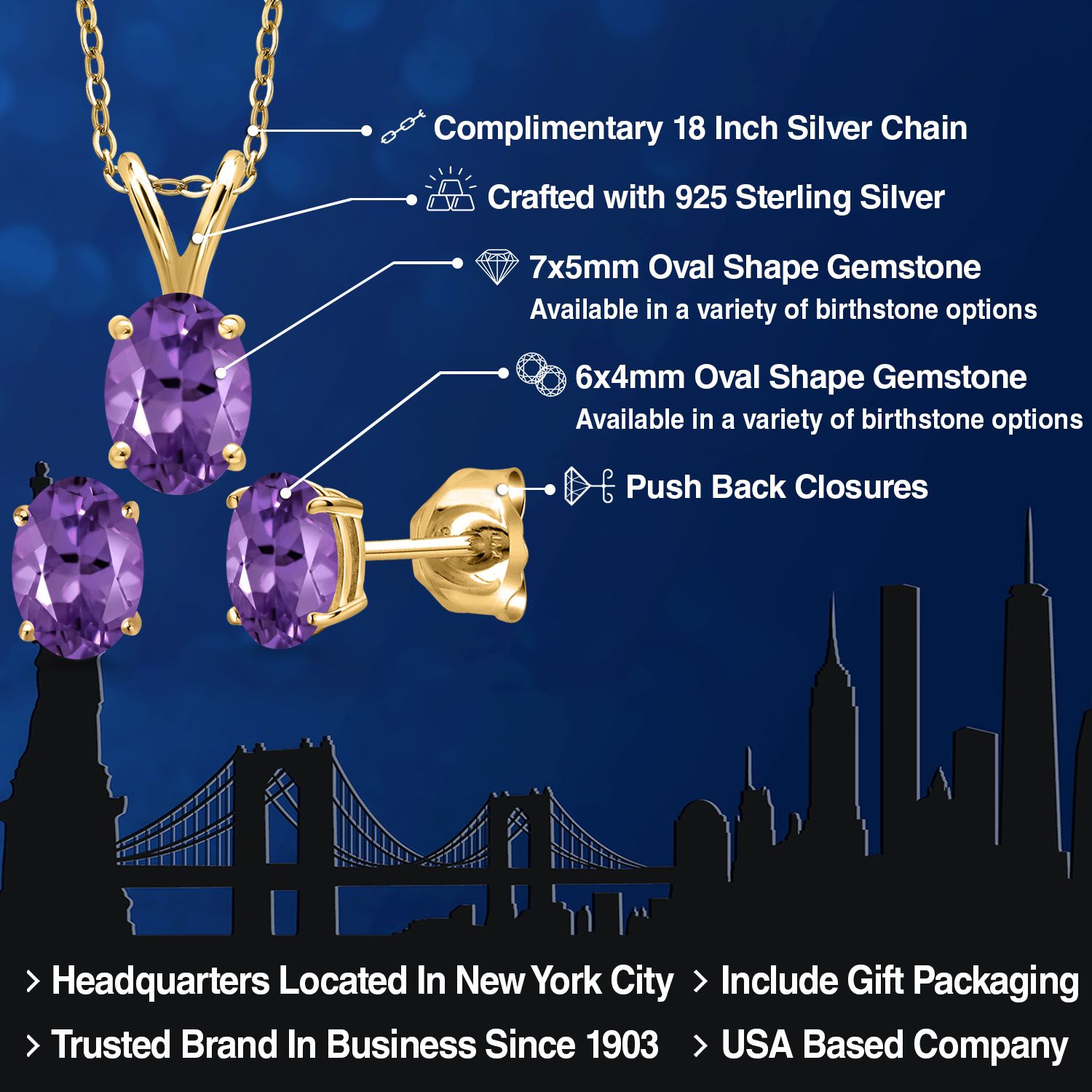 18K Yellow Gold Plated Silver Gemstone Birthstone Pendant Earrings Set for Women | Oval 7X5MM and 6X4MM | 18 Inch Chain | Jewelry Gift for Her Mom Wife