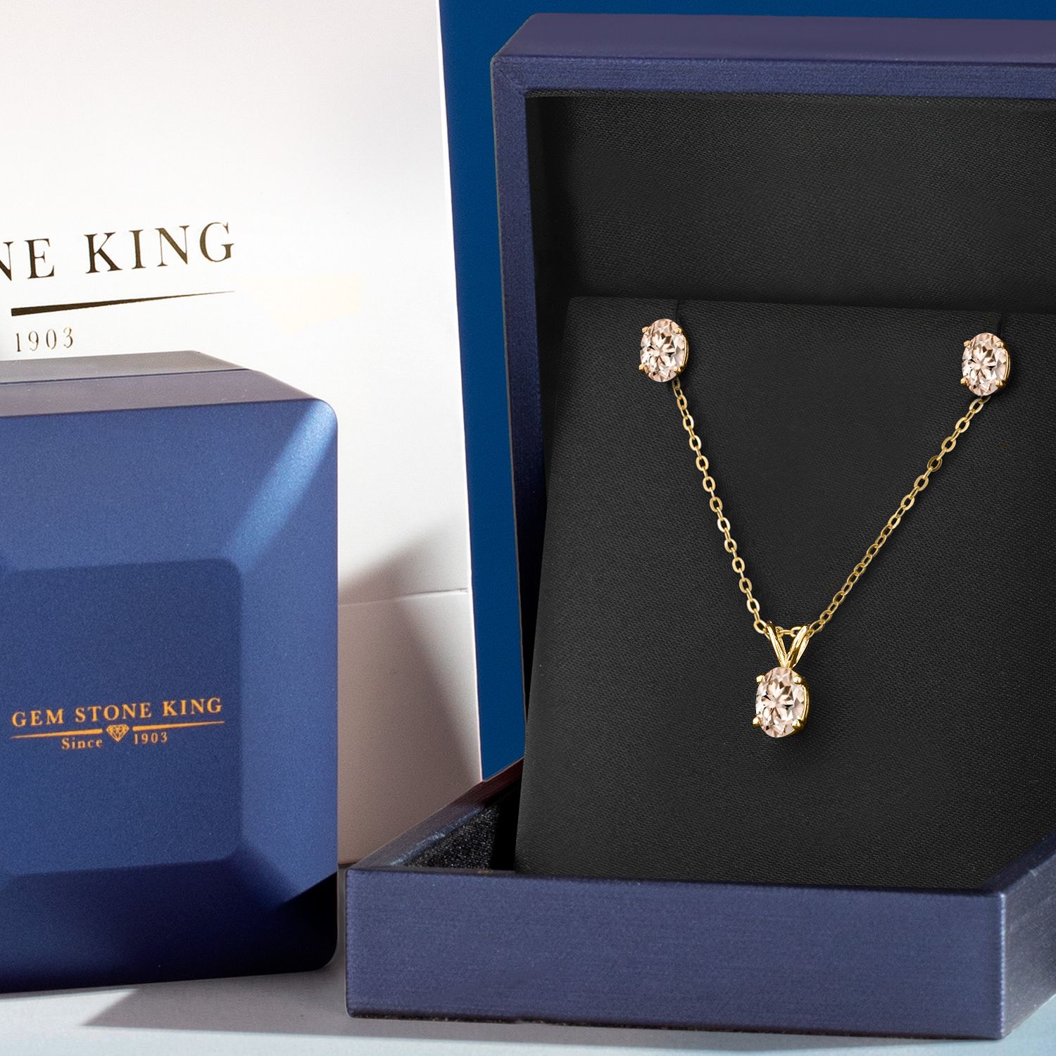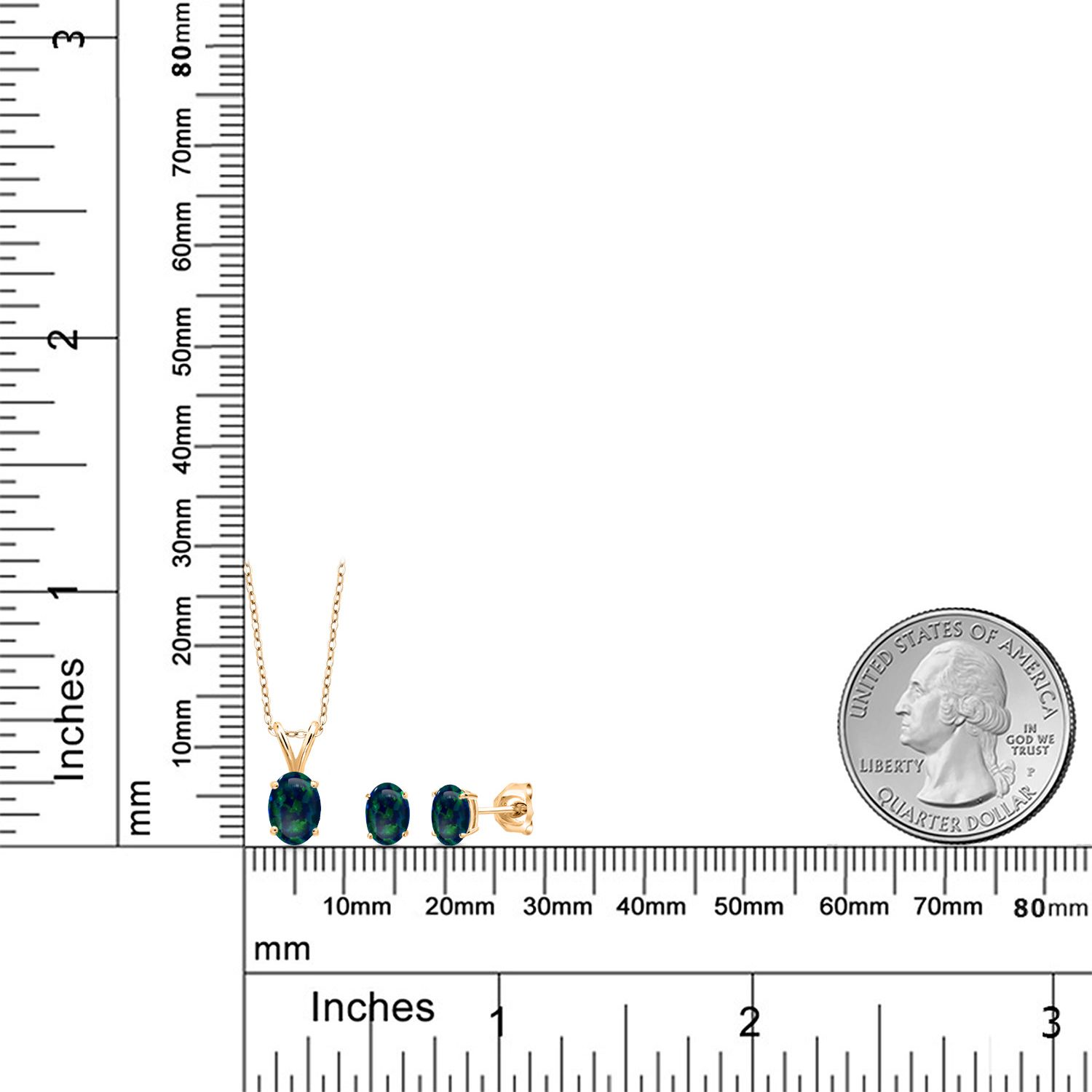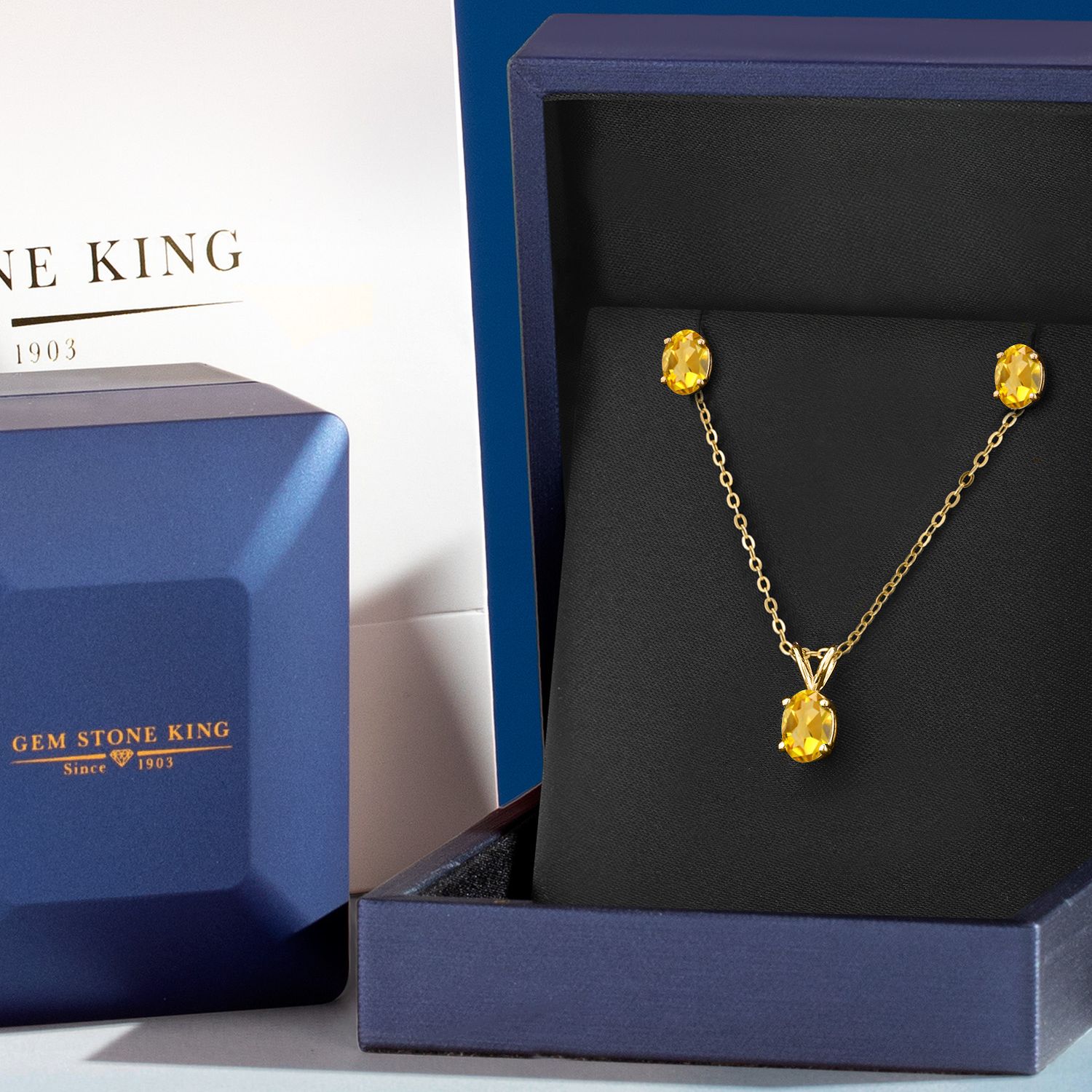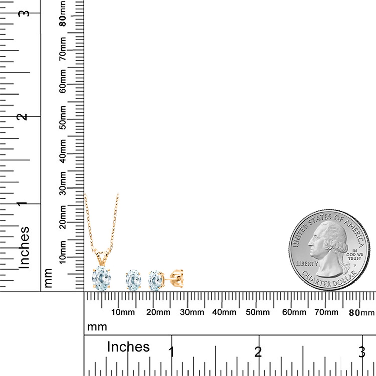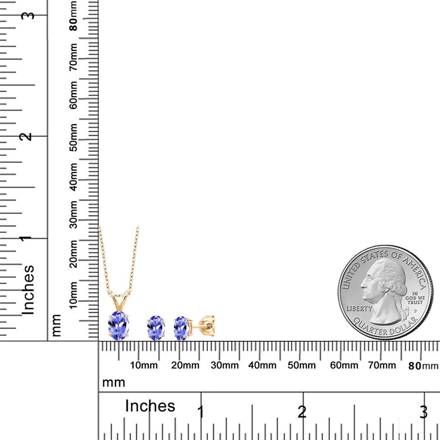 18K Yellow Gold Plated Silver Gemstone Birthstone Pendant Earrings Set for Women | Oval 7X5MM and 6X4MM | 18 Inch Chain | Jewelry Gift for Her Mom Wife