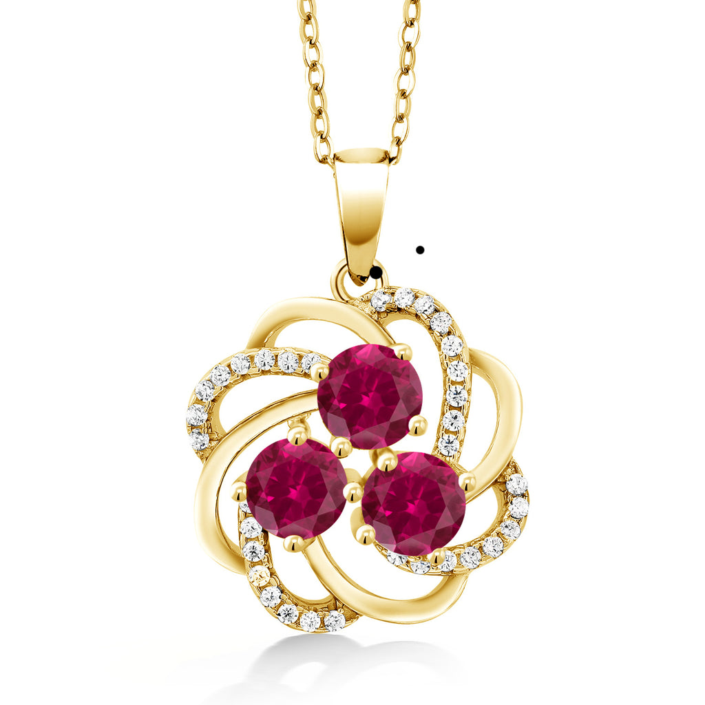 Gemstone Birthstone Pendant Necklace for Women in 18K Yellow Gold Plated Silver | Triple Round 5MM Gemstones with 1MM Accents | Floral Swirl Halo Design | Fine Jewelry for Her Mom Wife | 18 Inch Chain