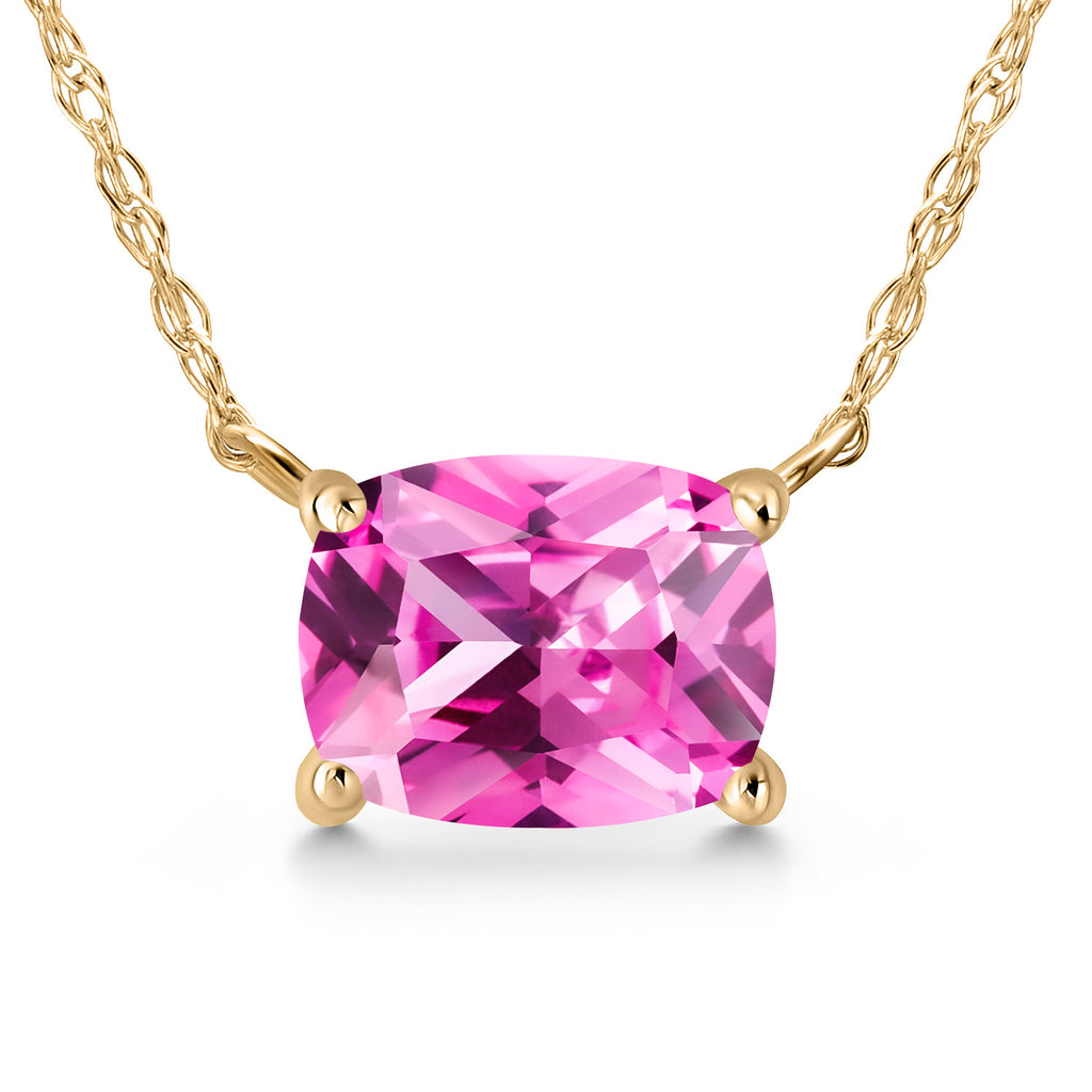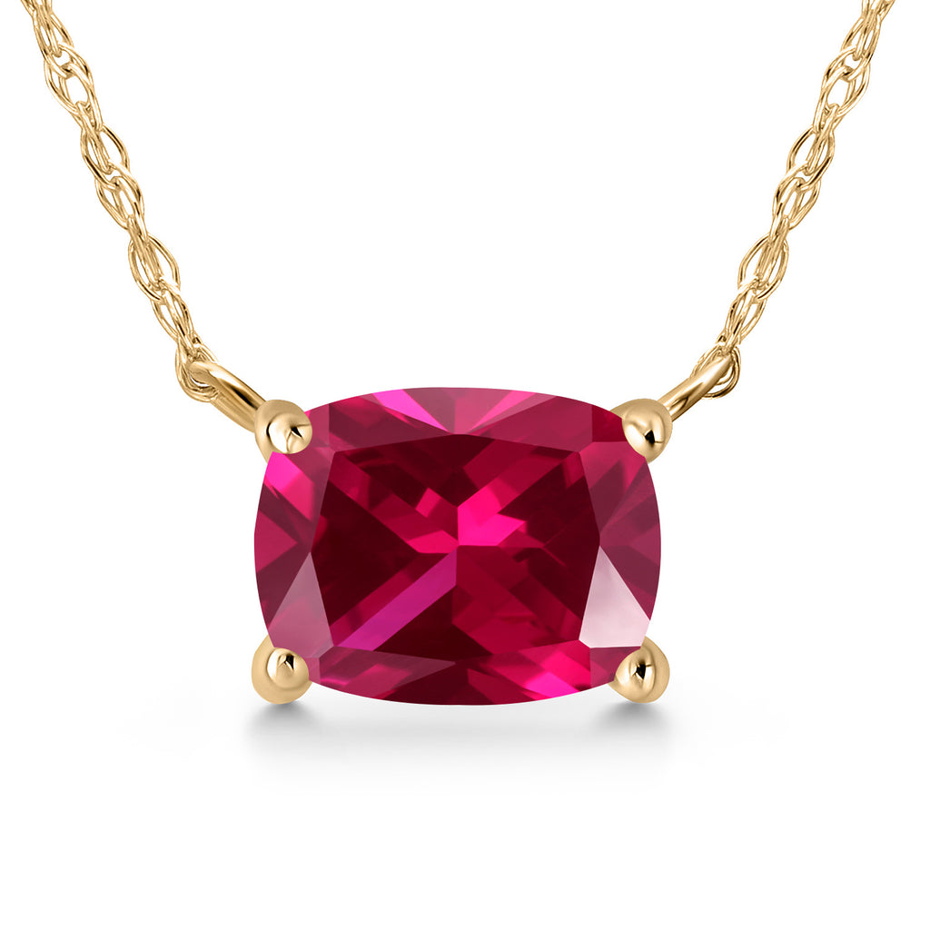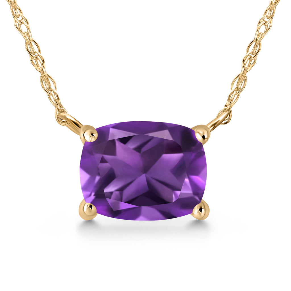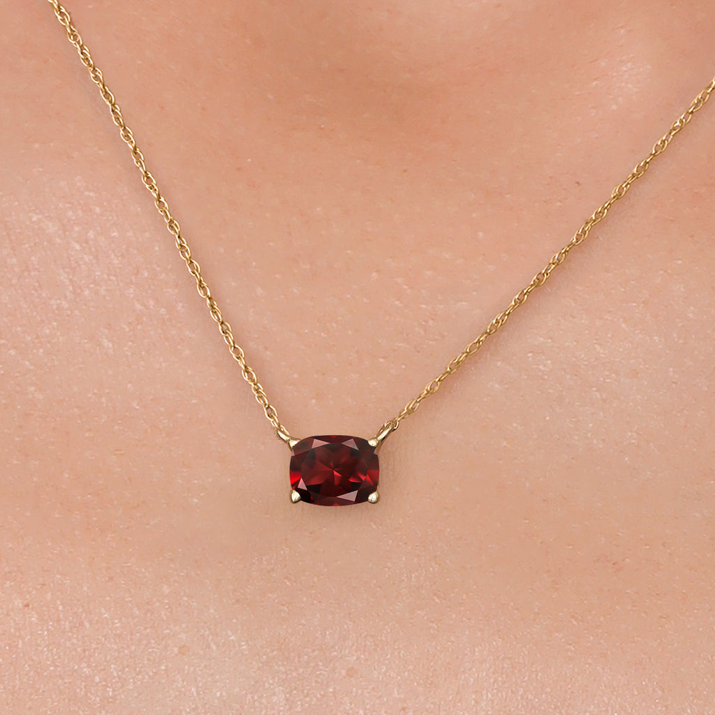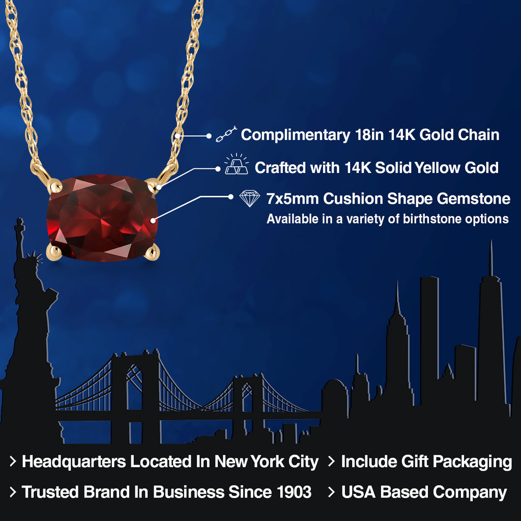 Gemstone Birthstone Pendant Necklace in 14K Yellow Gold | Cushion 7X5MM | Gold Necklace for Women | With 18 Inch Chain | Fine Jewelry Gifts for Her Mom Women Wife