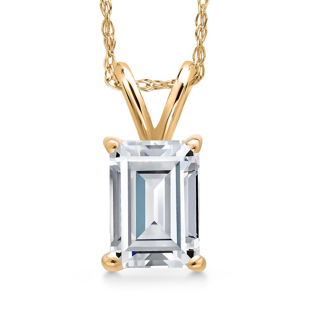 Gemstone Birthstone Pendant Necklace in 14K Yellow Gold | Emerald Cut 7X5MM | Gold Necklace for Women | With 18 Inch Chain | Fine Jewelry Gifts for Her Mom Women Wife