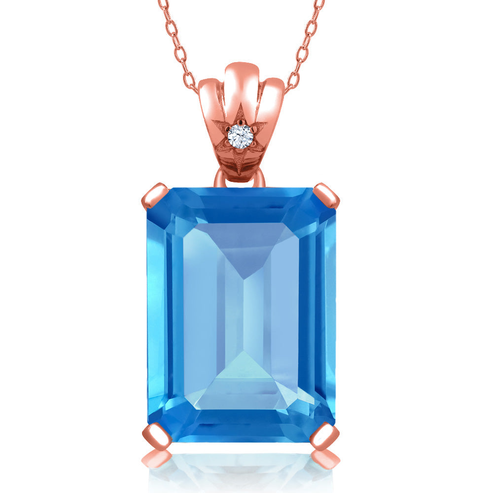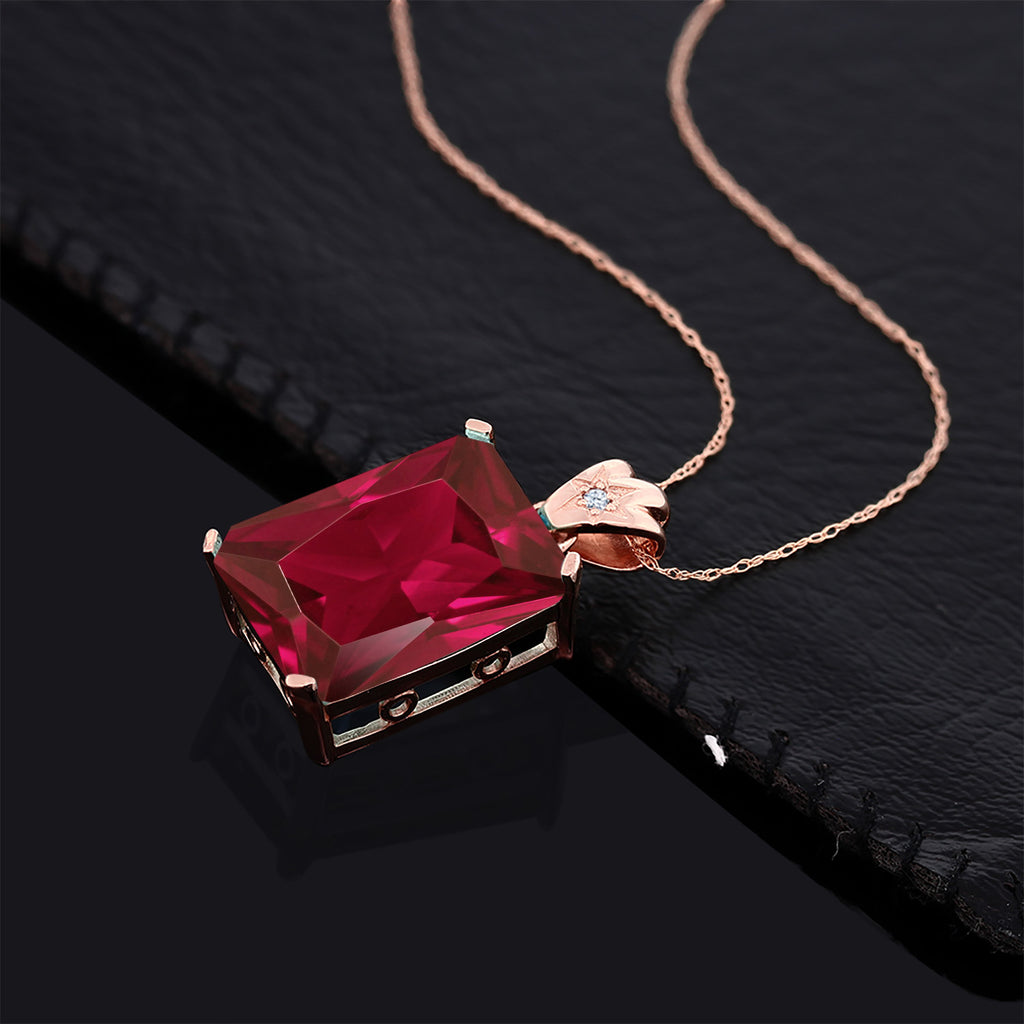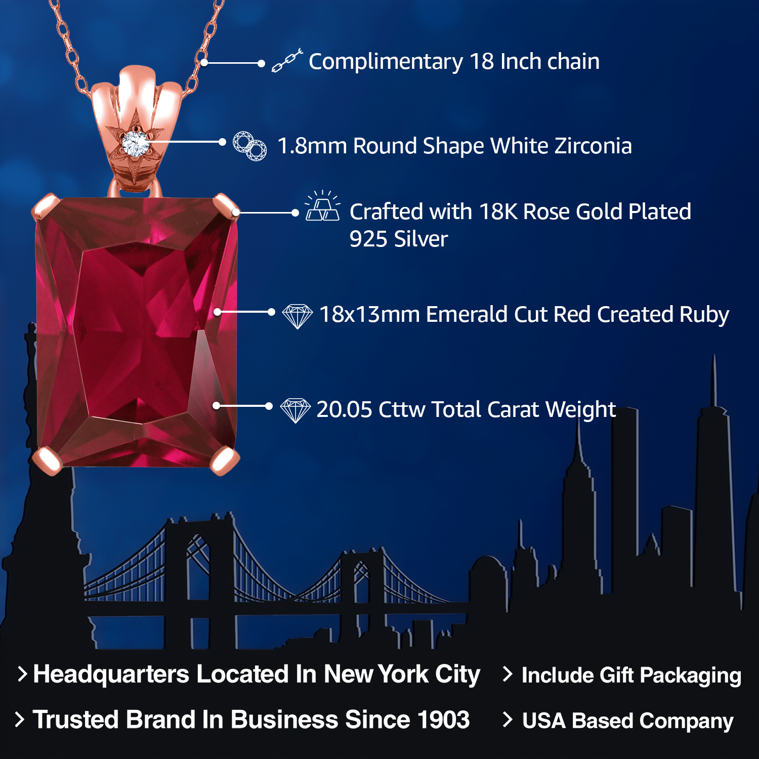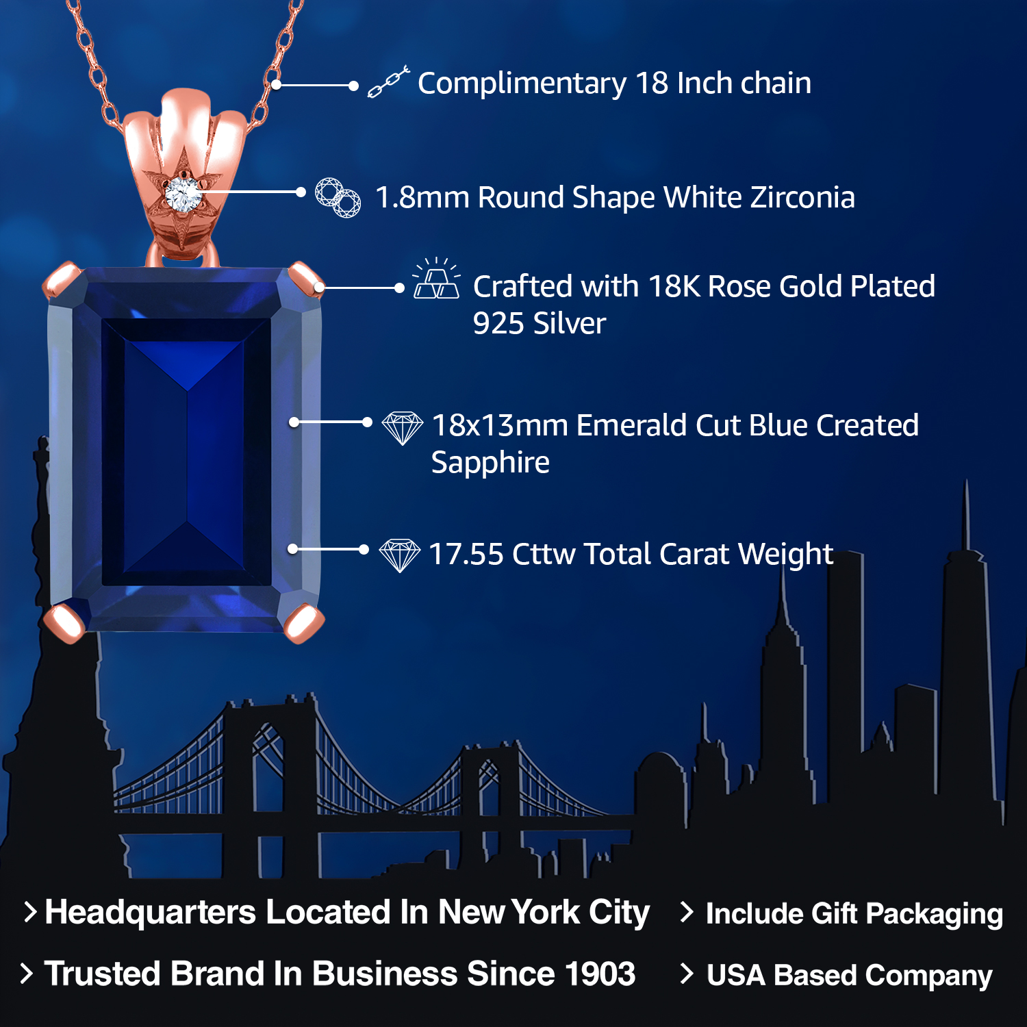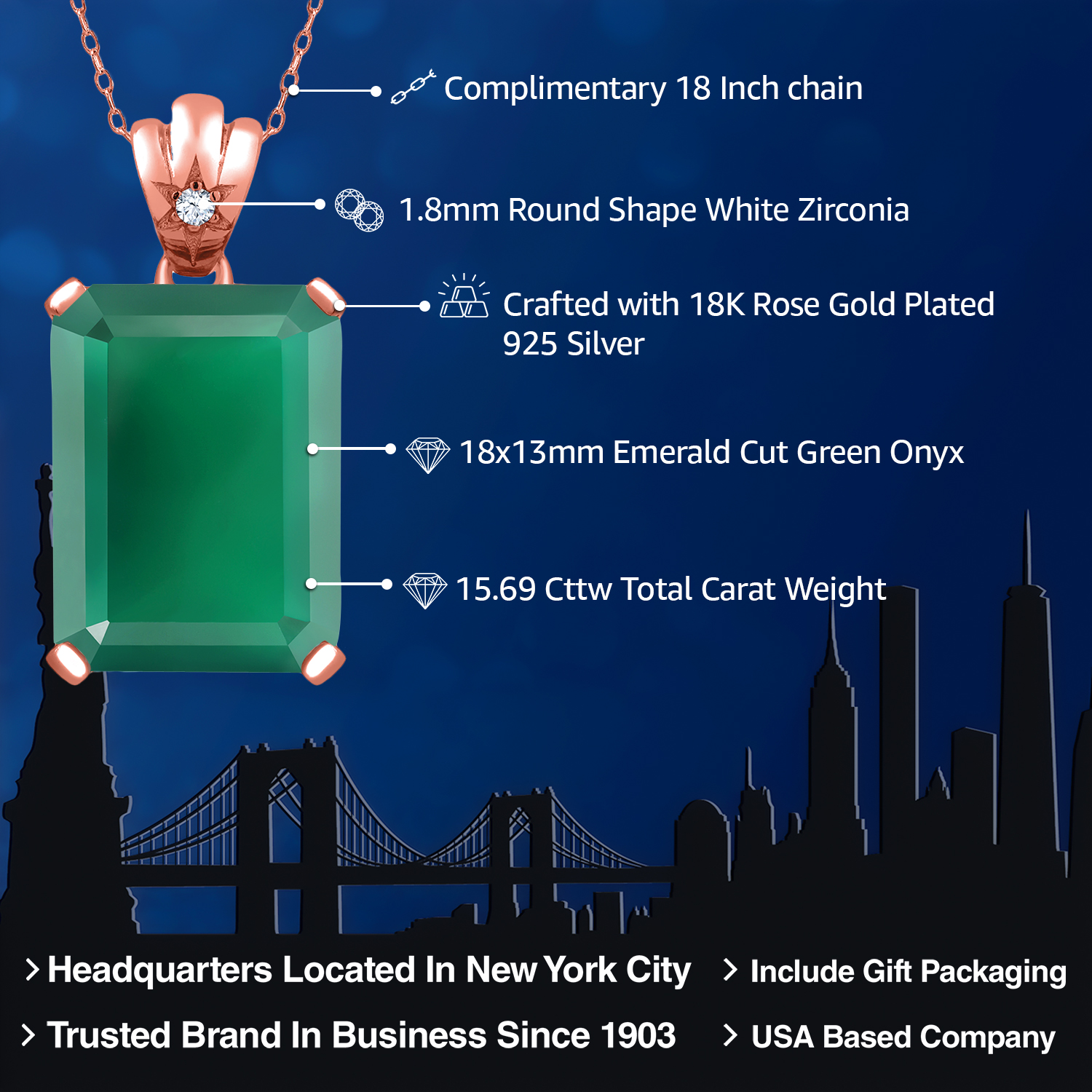 Gemstone Birthstone Pendant Necklace in 18K Rose Gold Plated Silver | Emerald Cut 18X13MM Center Stone & Round 1.8MM Accent | Fine Jewelry Gifts for Her Mom Women Wife | Includes 18 Inch Chain