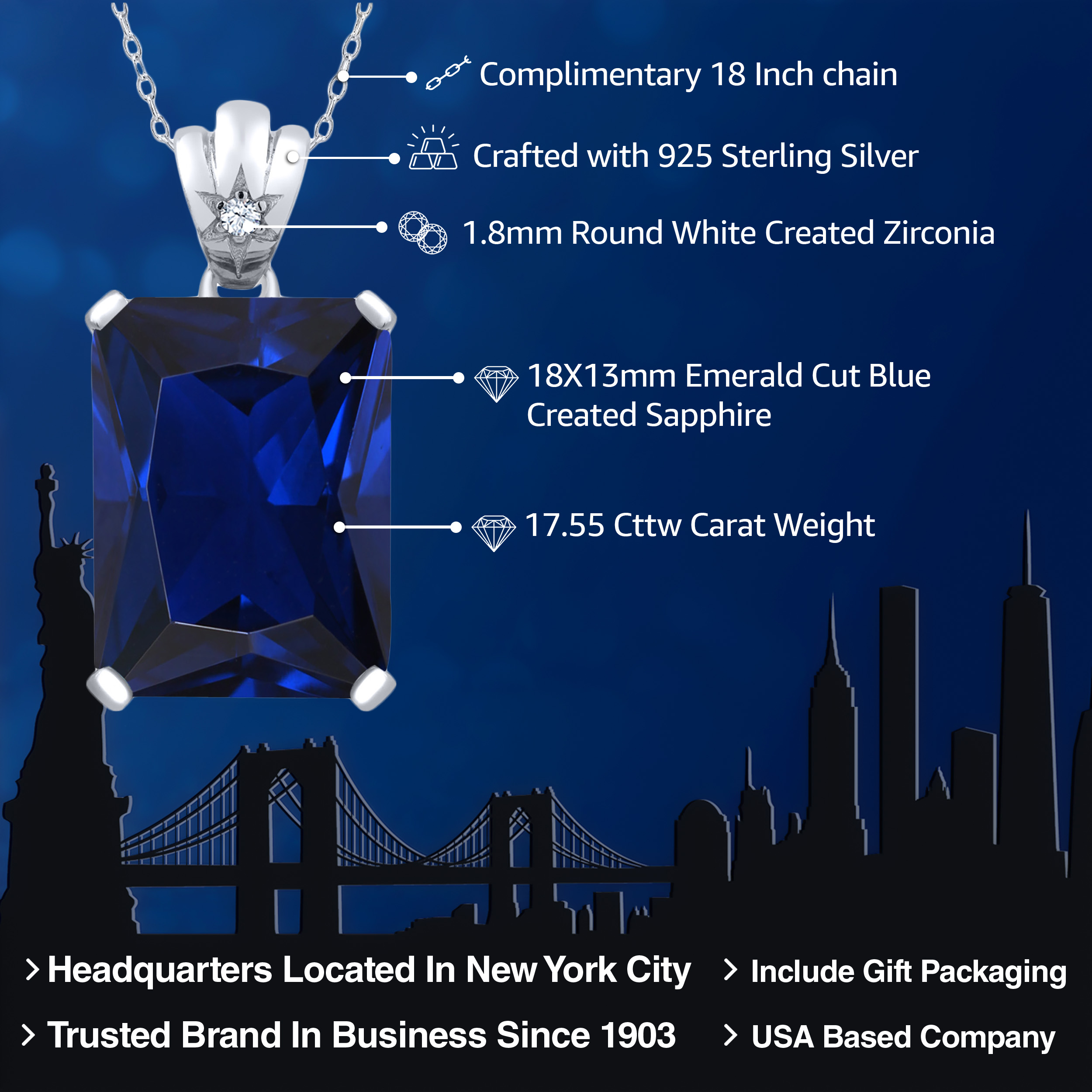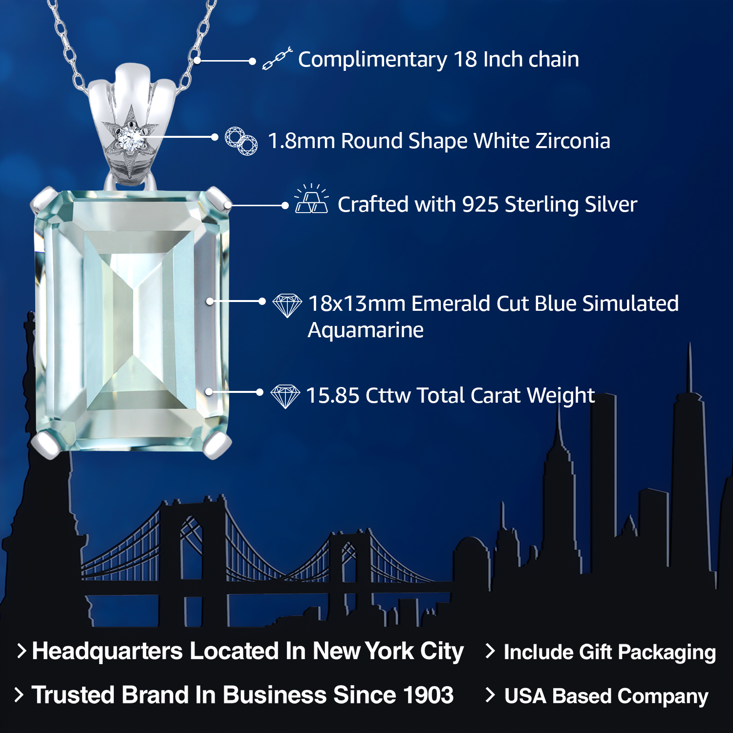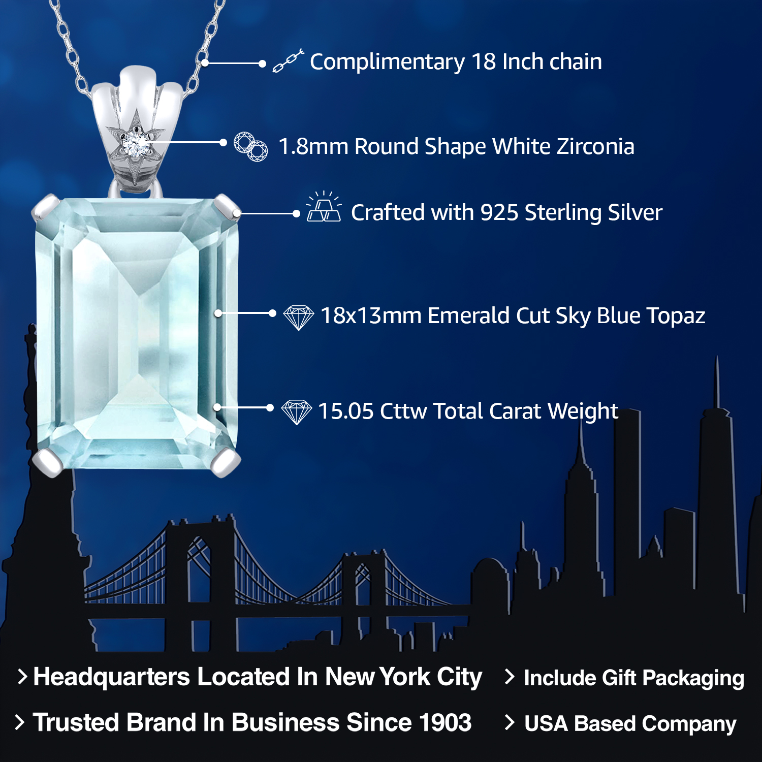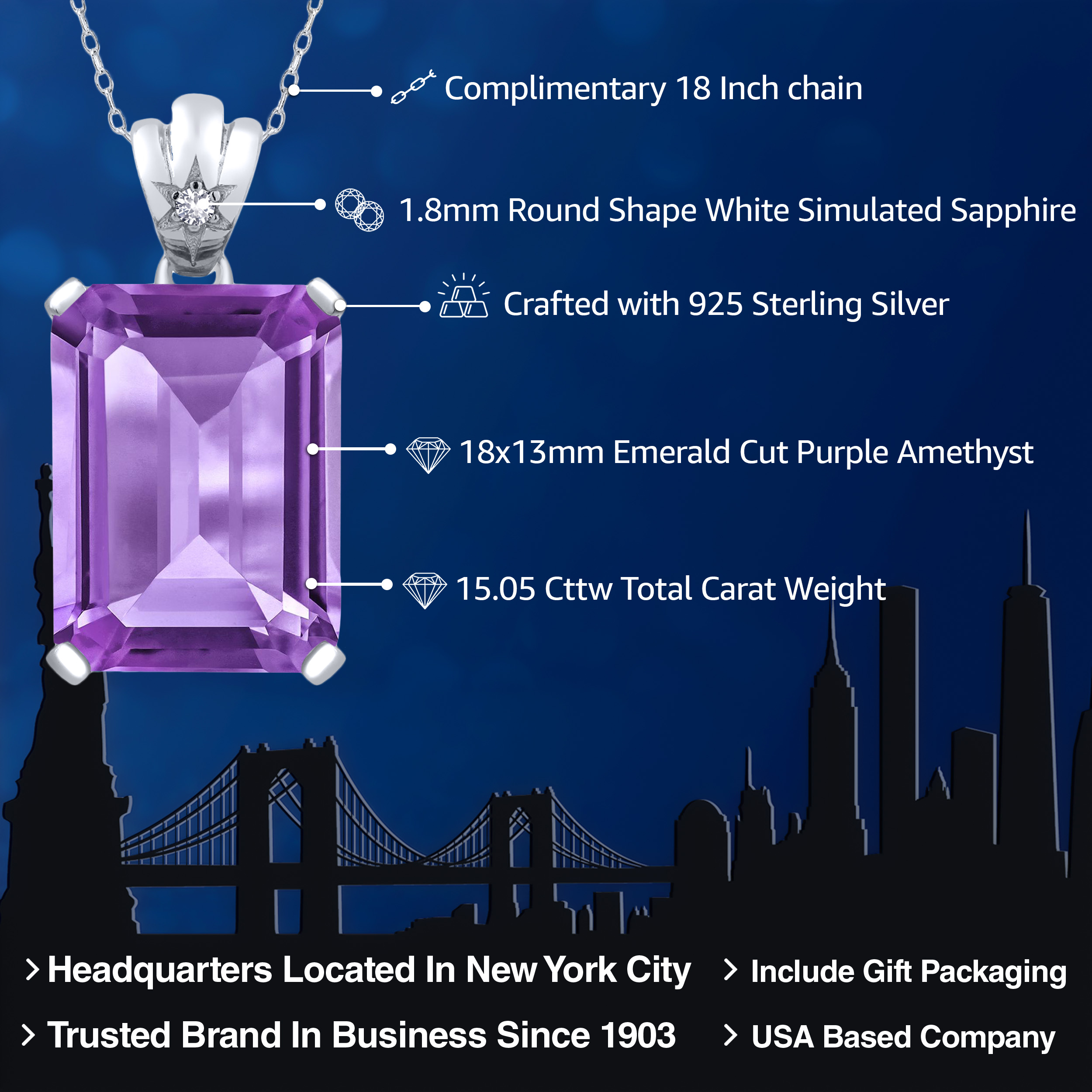 Gemstone Birthstone Pendant Necklace in 925 Sterling Silver | Emerald Cut 18X13MM Center Stone & Round 1.8MM Accent | Fine Jewelry Gifts for Her Mom Women Wife | Includes 18 Inch Chain
