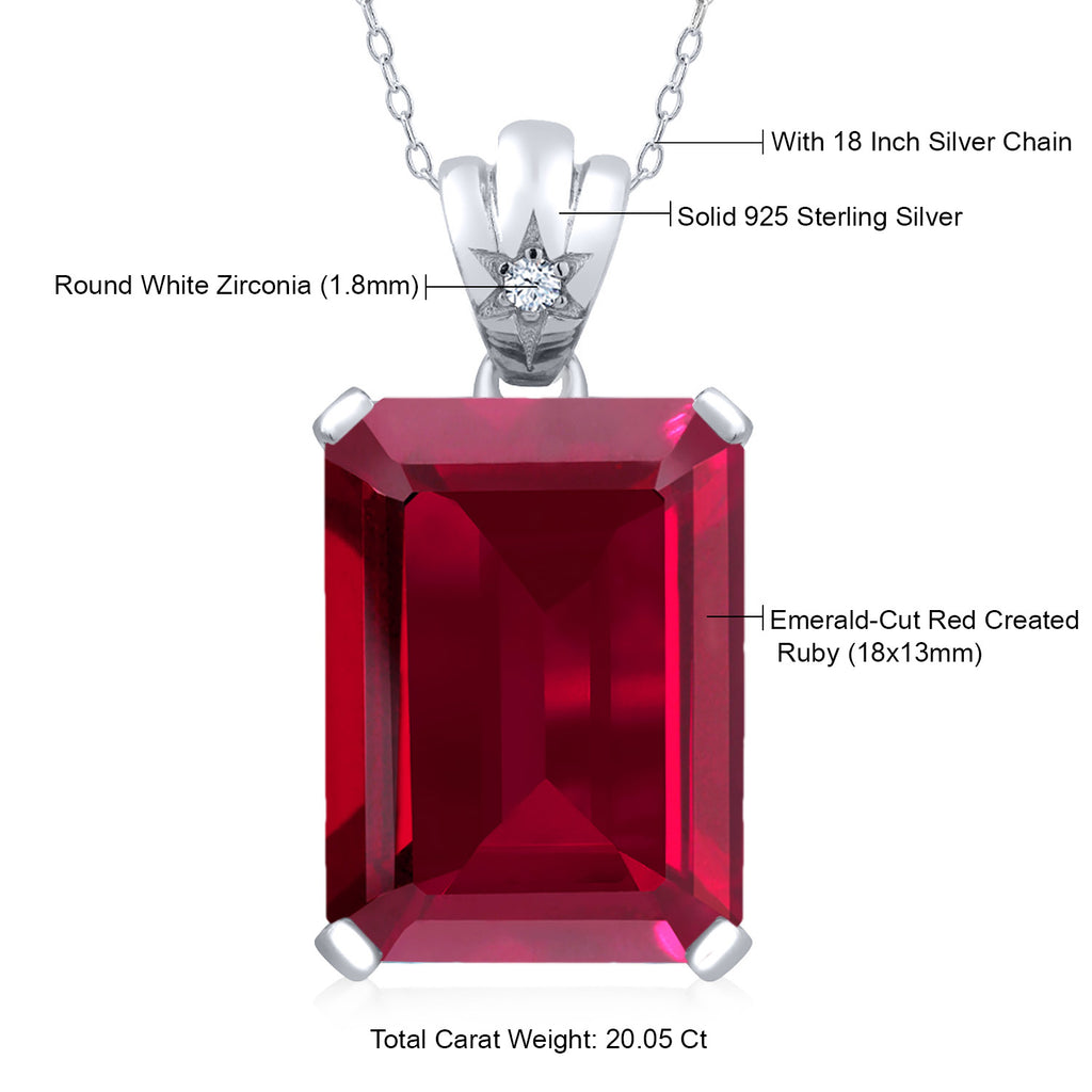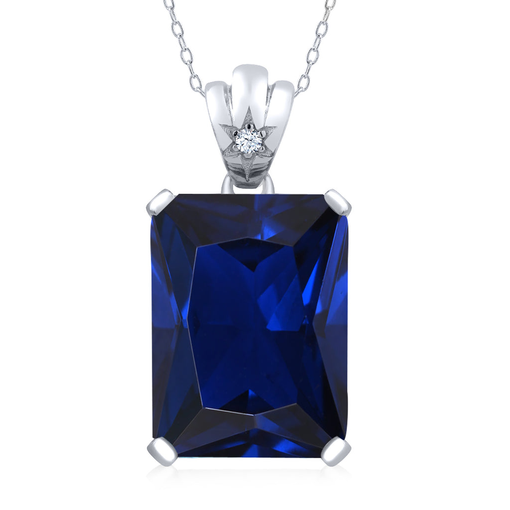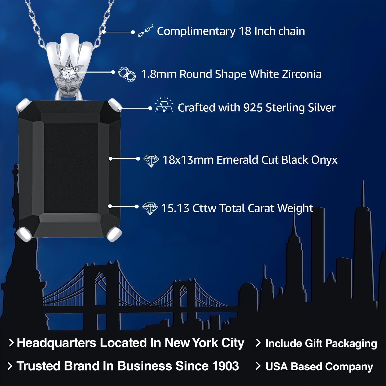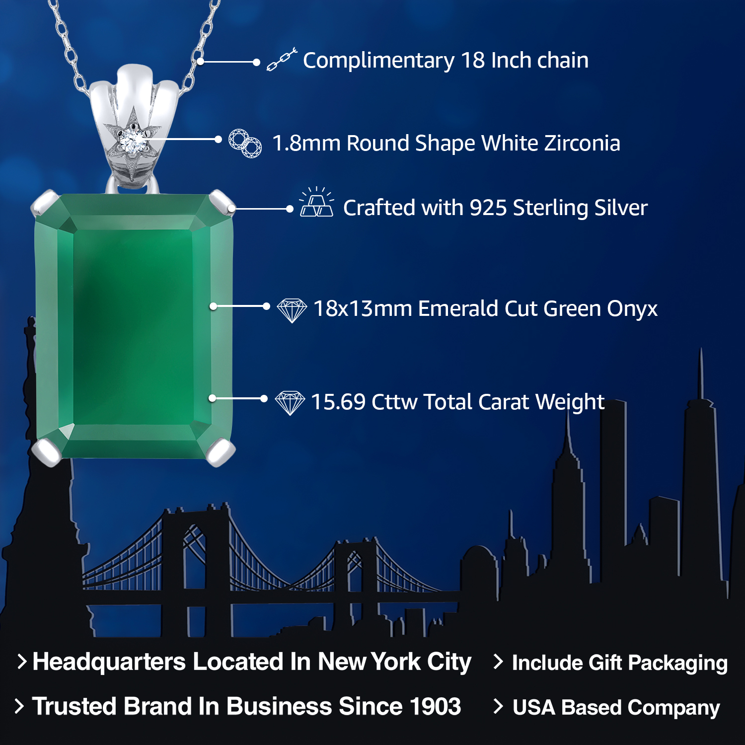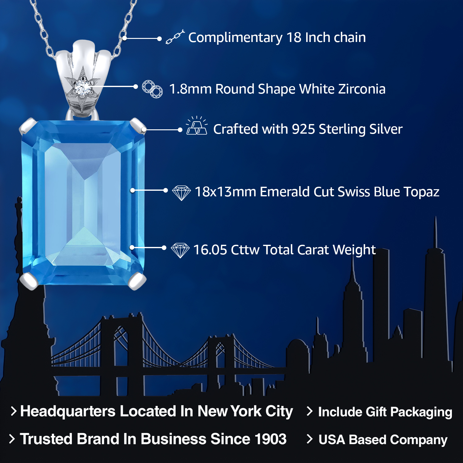 Gemstone Birthstone Pendant Necklace in 925 Sterling Silver | Emerald Cut 18X13MM Center Stone & Round 1.8MM Accent | Fine Jewelry Gifts for Her Mom Women Wife | Includes 18 Inch Chain
