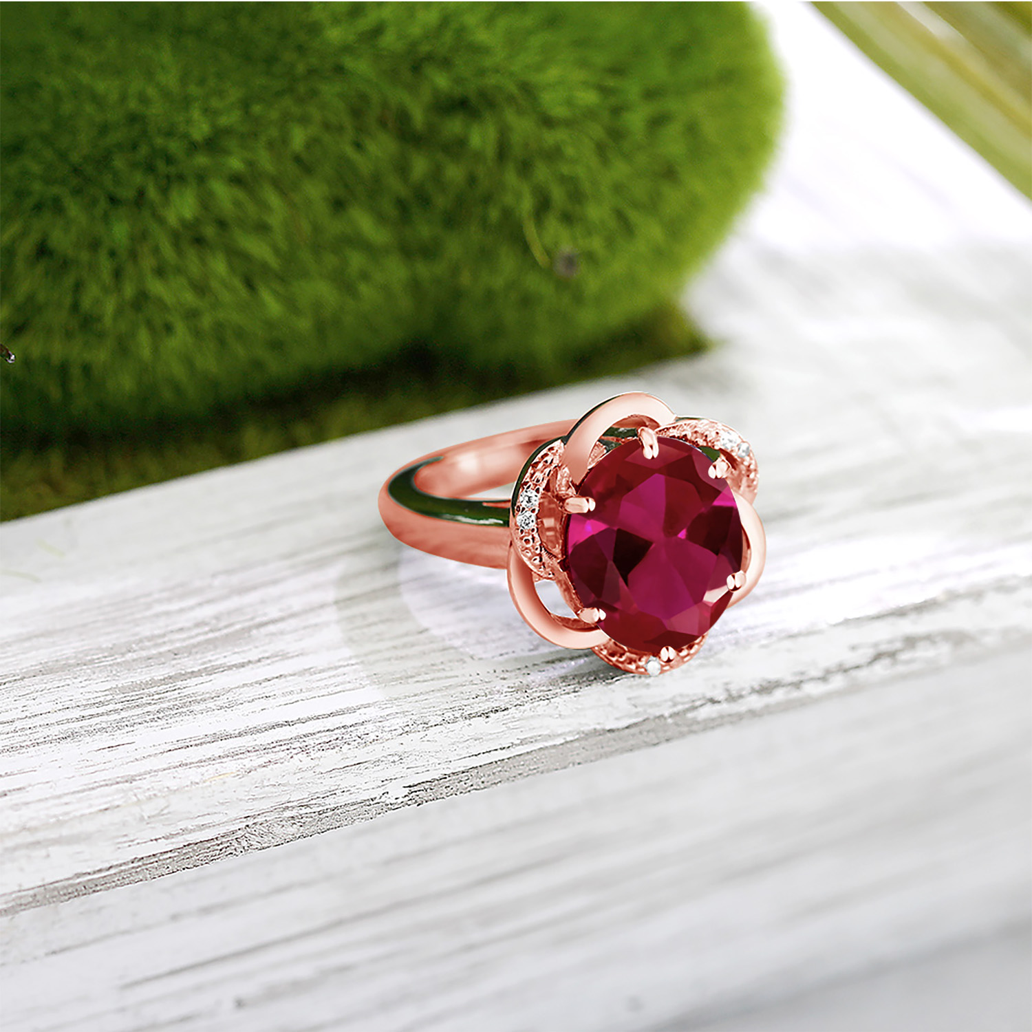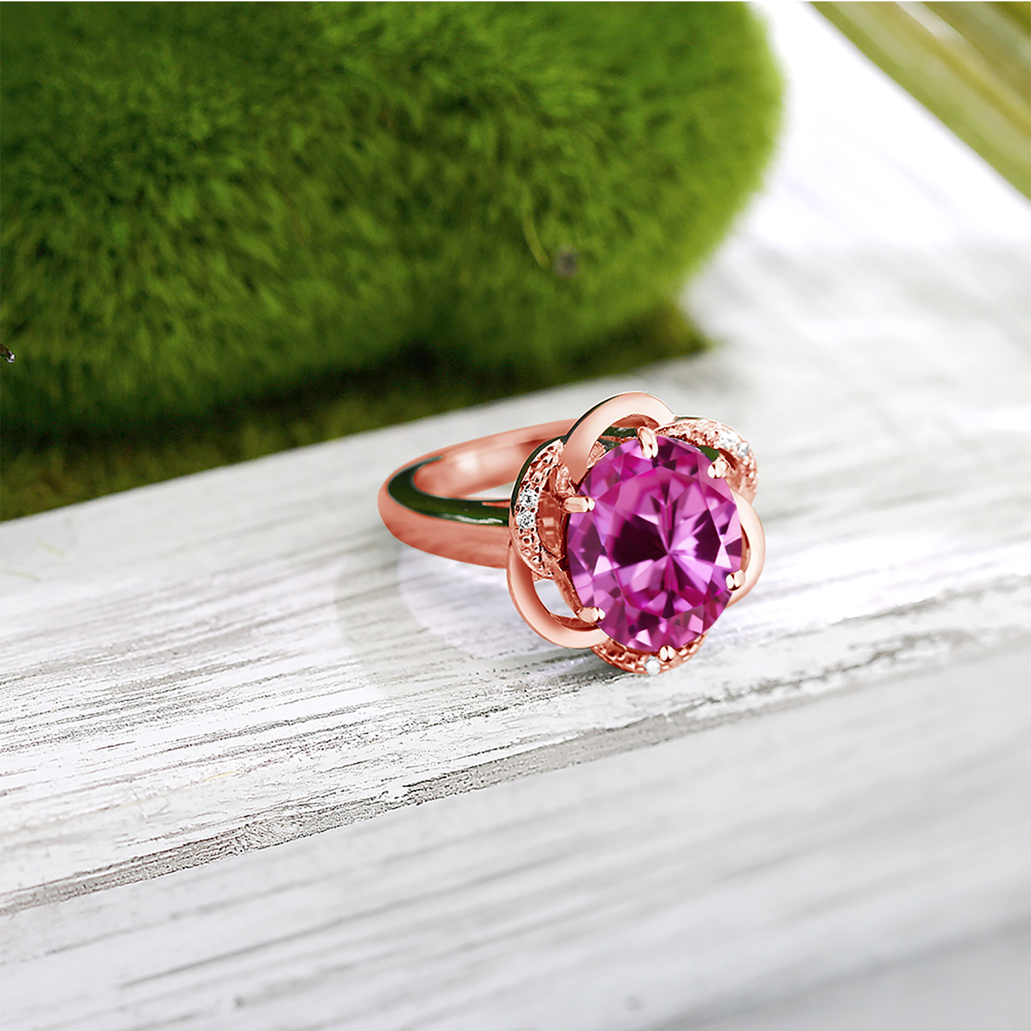 Gemstone Birthstone Solitaire Engagement Ring for Women in 18K Rose Gold Plated Silver | Oval 12X10MM with Twisting Shank Detail | Wedding Anniversary Promise Ring | Sizes 5, 6, 7, 8, 9