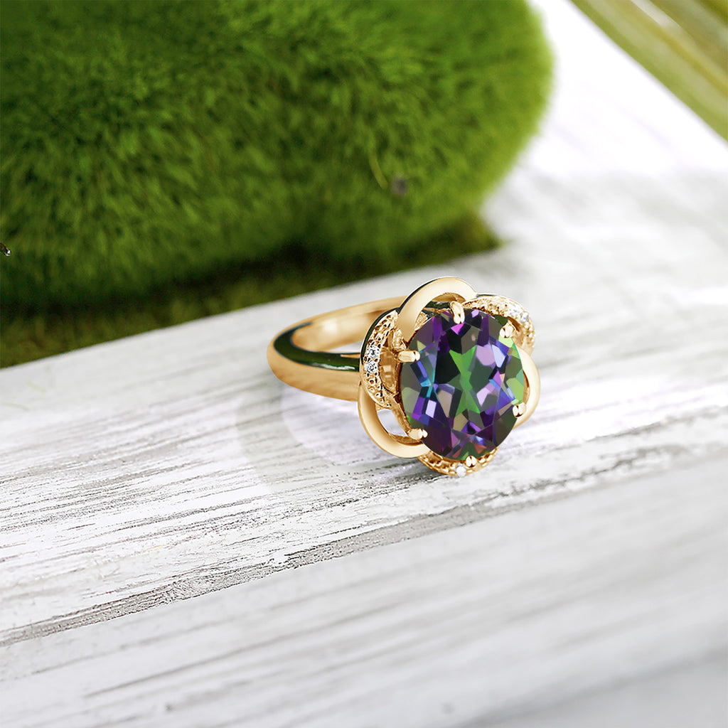 2-Tone Engagement Ring For Women | 925 Silver and 10K Yellow Gold | Gemstone Birthstone | 6MM Cushion Cut | Wedding Anniversary Promise Ring | Available In Size 5, 6, 7, 8, 9