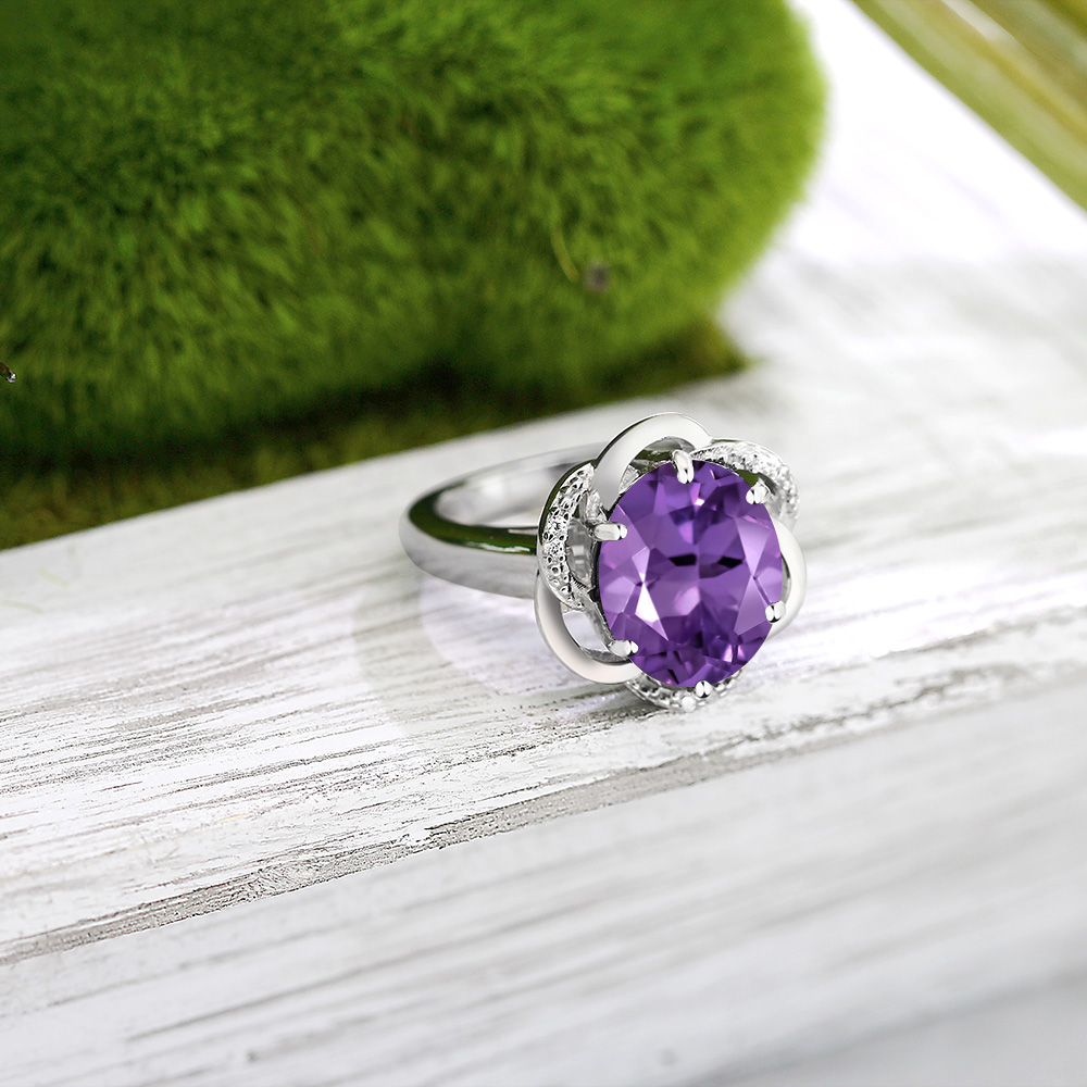 Gemstone Birthstone Solitaire Engagement Ring for Women in 925 Sterling Silver | Oval 12X10MM with Twisting Shank Detail | Wedding Anniversary Promise Ring | Sizes 5, 6, 7, 8, 9