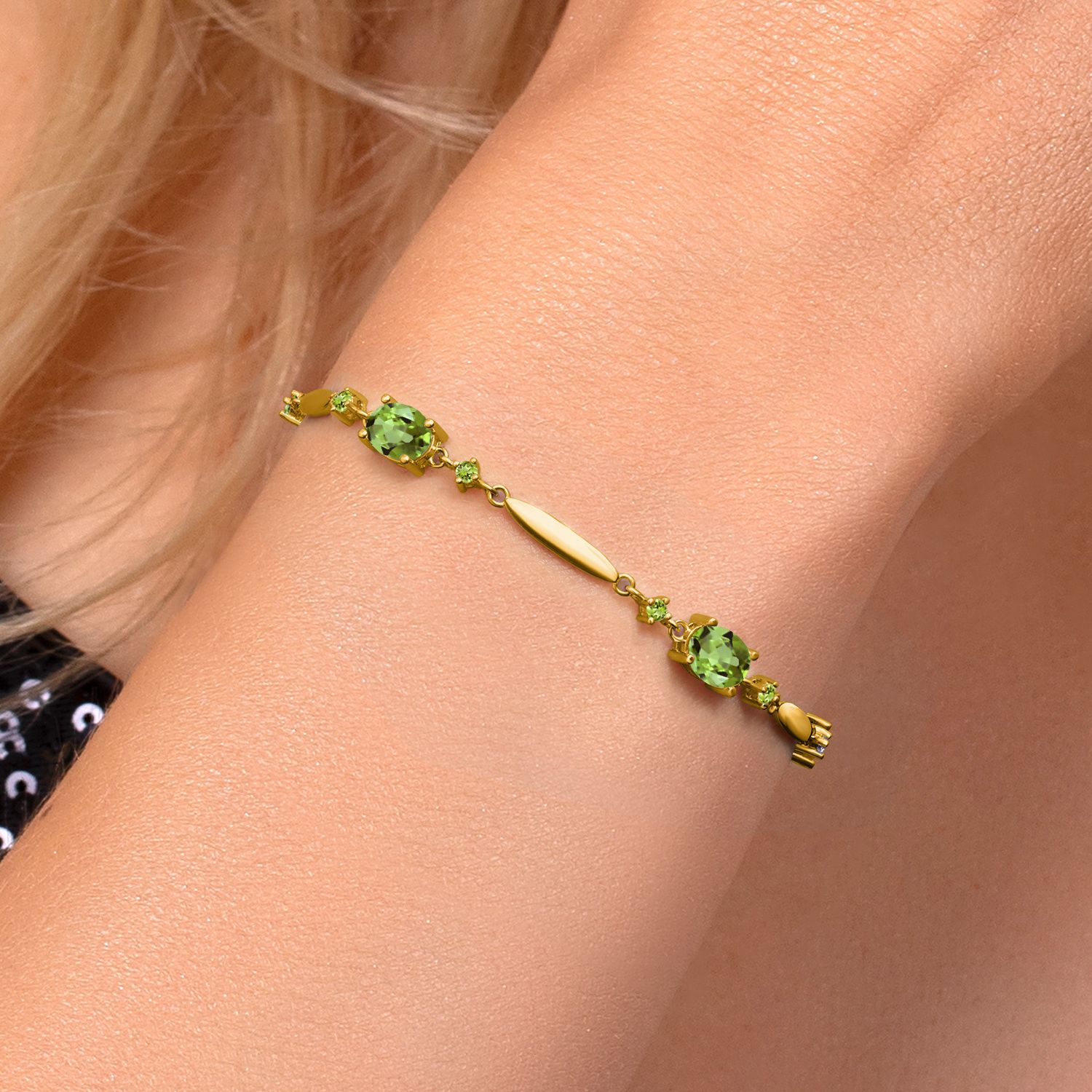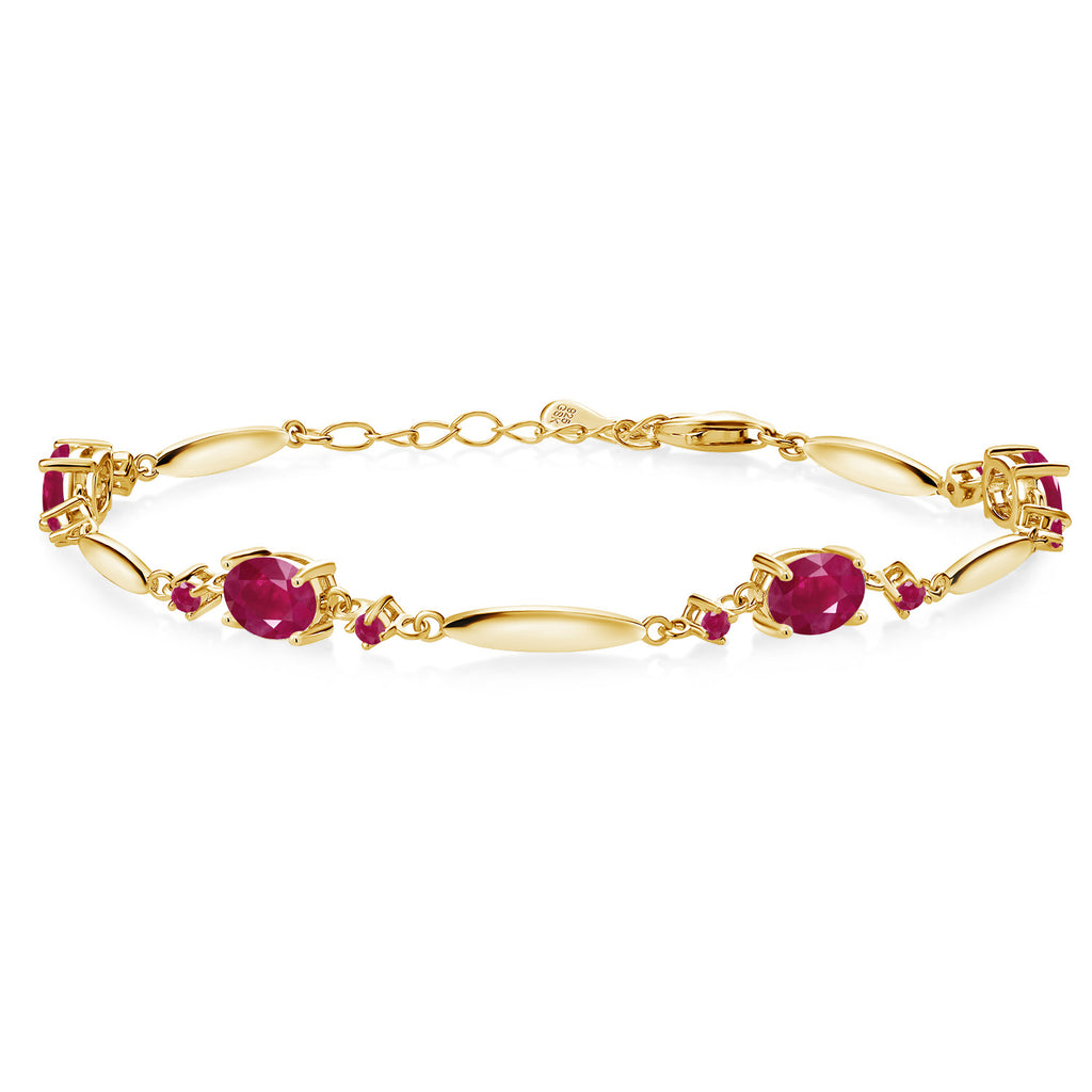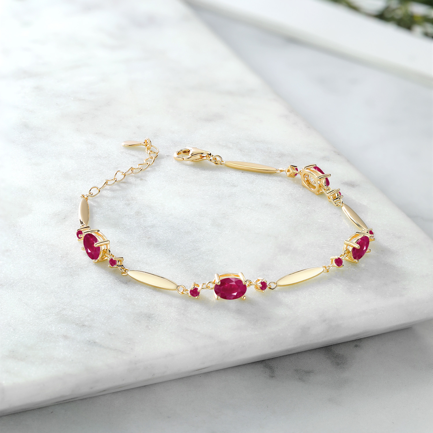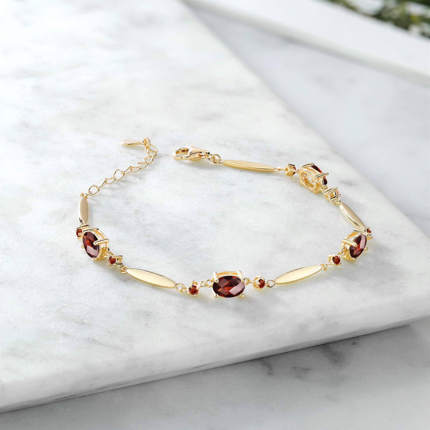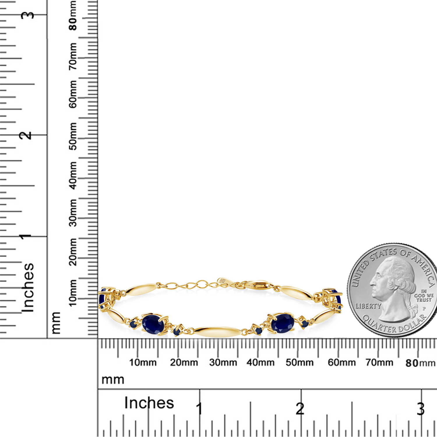 18K Yellow Gold Plated Silver Gemstone Birthstone Tennis Bracelet For Women | Oval 7X5MM and Round 2MM | 6 Inch + 1 Inch Extender | Fine Jewelry for Her Mom Wife