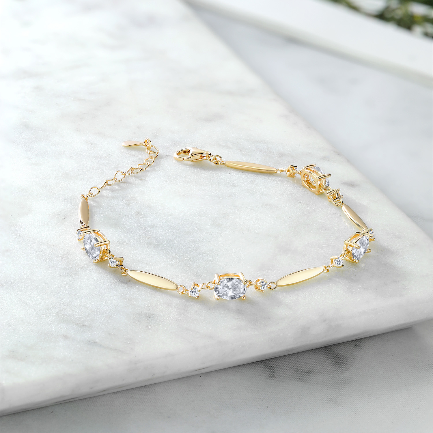 18K YELLOW GOLD PLATED SILVER ELEGANCE: Crafted with precision, this bracelet is enveloped in a luxurious 18K yellow gold plating over sterling silver, ensuring a radiant finish that is both timeless and sophisticated. The gold plating adds a layer of elegance, enhancing the gemstones' natural beauty while providing a durable and hypoallergenic surface, perfect for those with sensitive skin. This piece promises both style and comfort, making it ideal for everyday wear.
