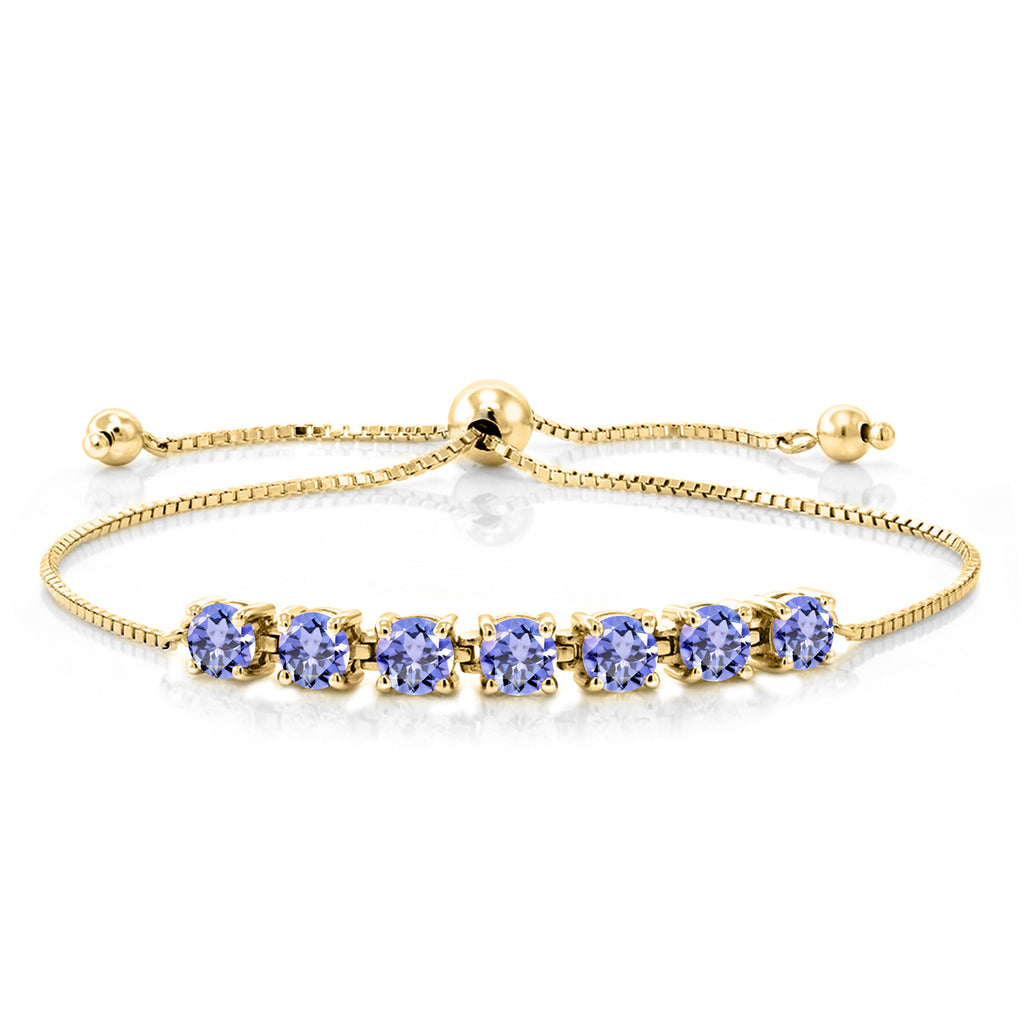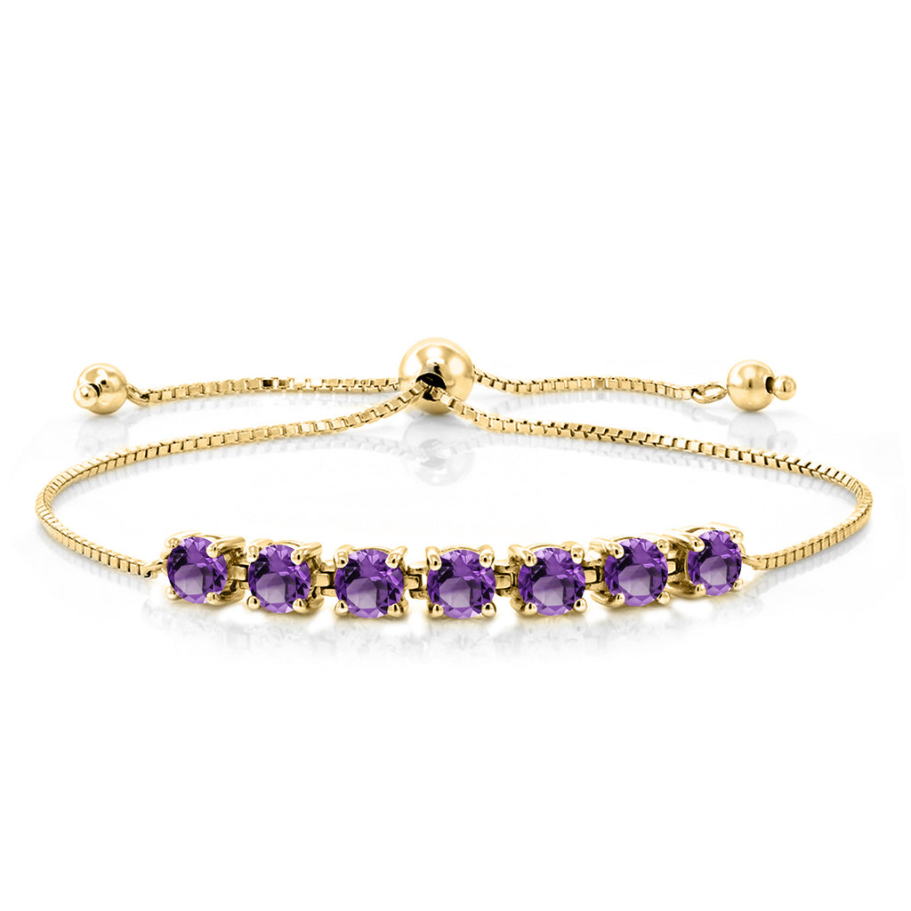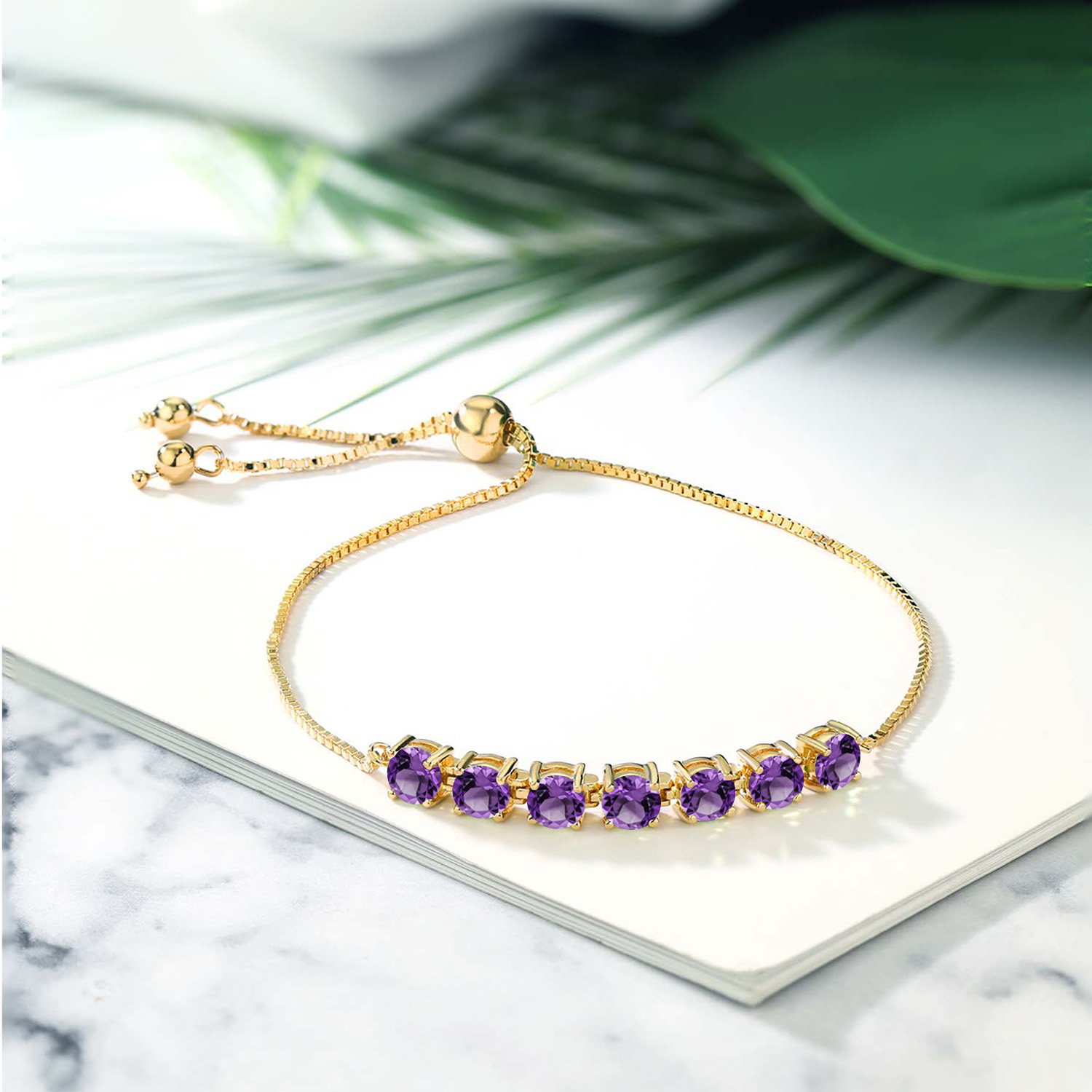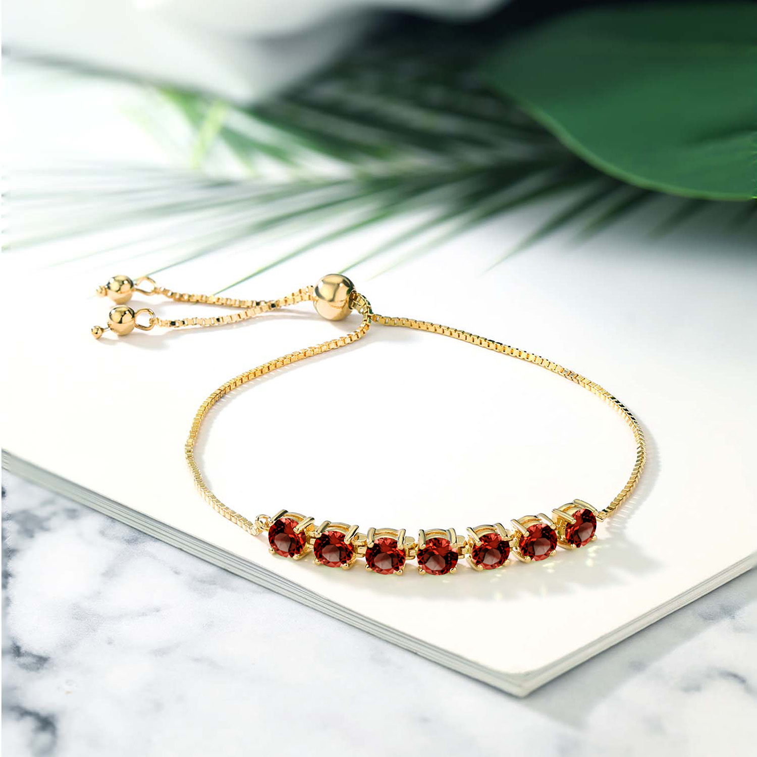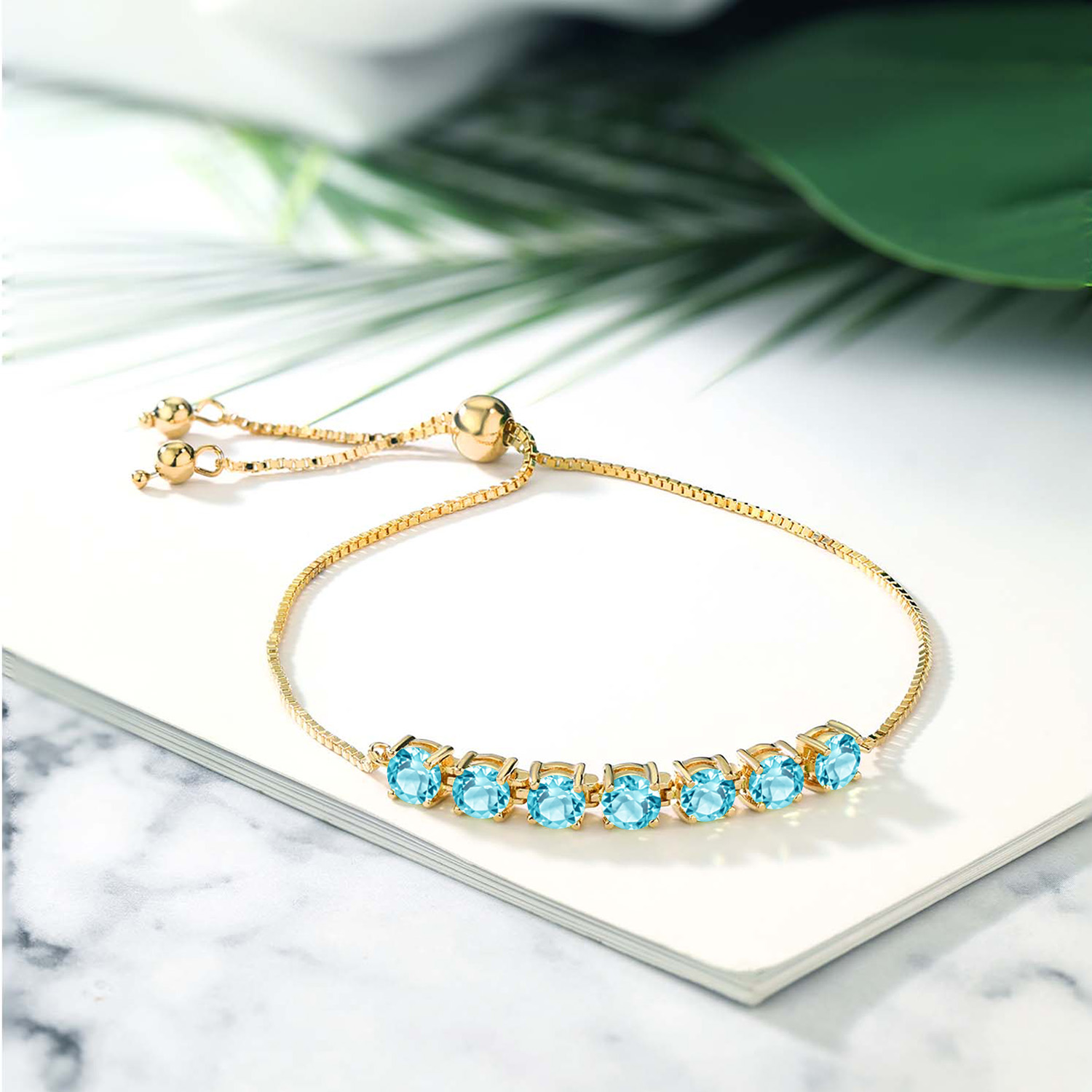 Gemstone Birthstone Tennis Bracelet For Women | 18K Yellow Gold Plated Silver | Round Cut 4.5MM | Adjustable Bolo Bracelet For Women | Easy-On Easy-Off