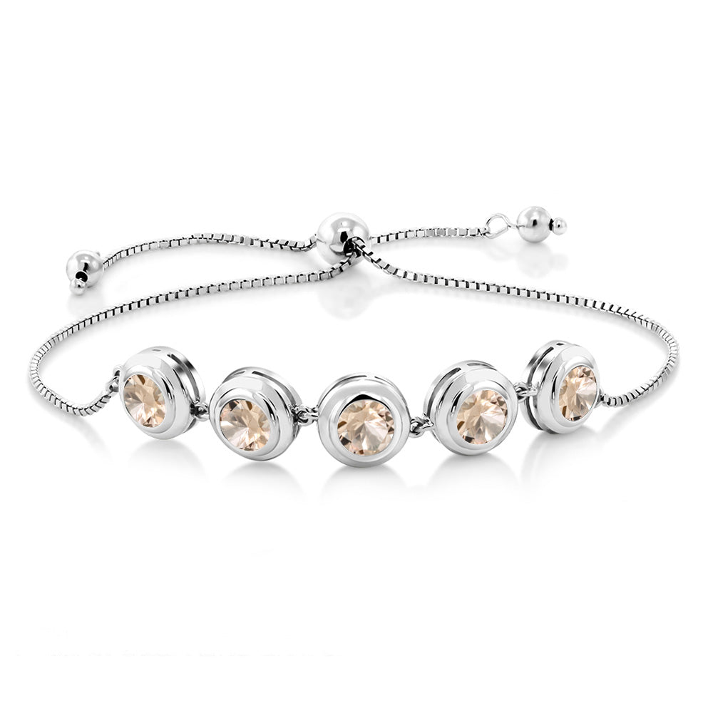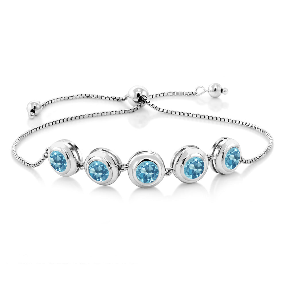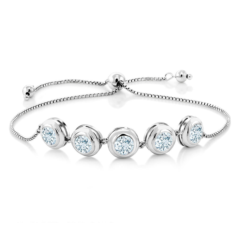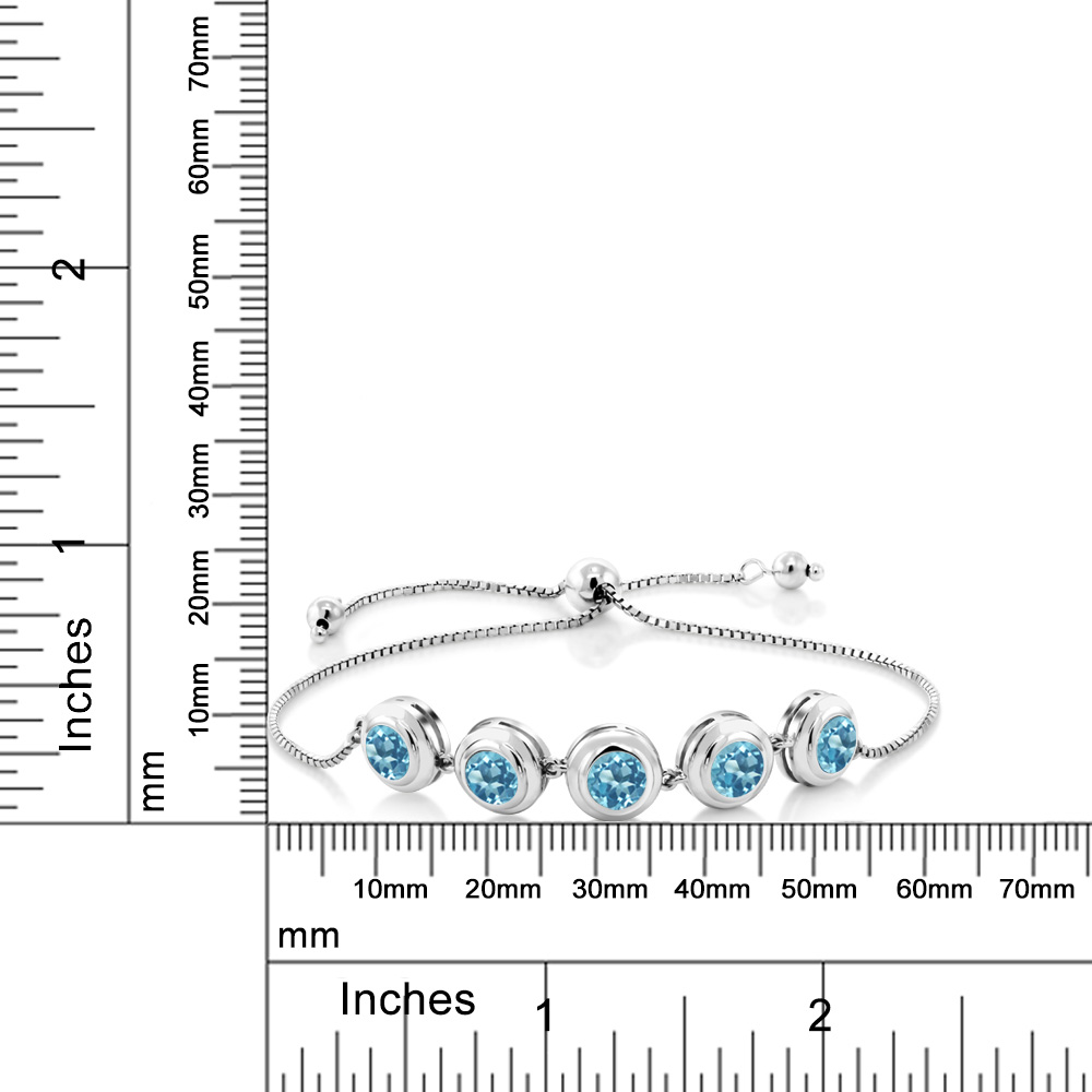 Gemstone Birthstone Tennis Bracelet for Women in 925 Sterling Silver | Round 6MM Bezel Set Stones | Adjustable Slider Clasp Fits Up to 9 Inch | Elegant Fine Jewelry for Her Mom Wife