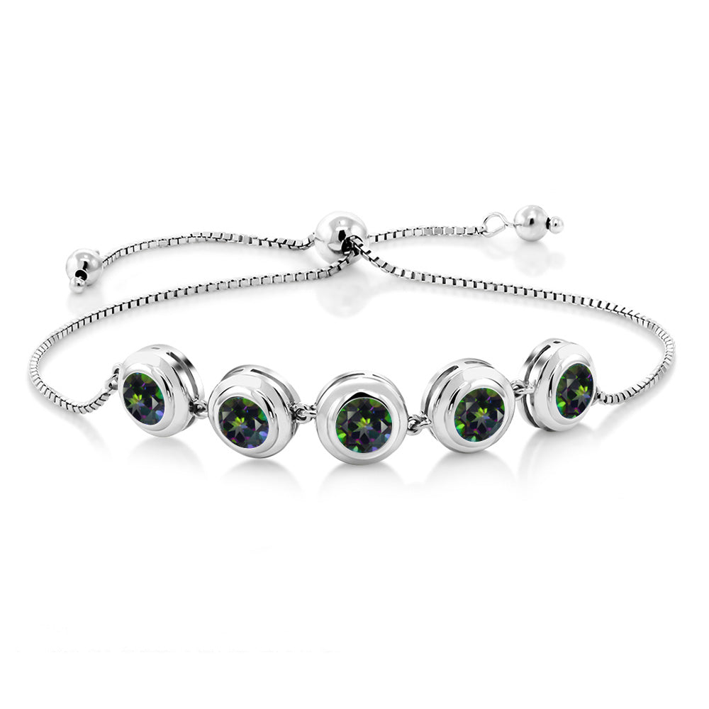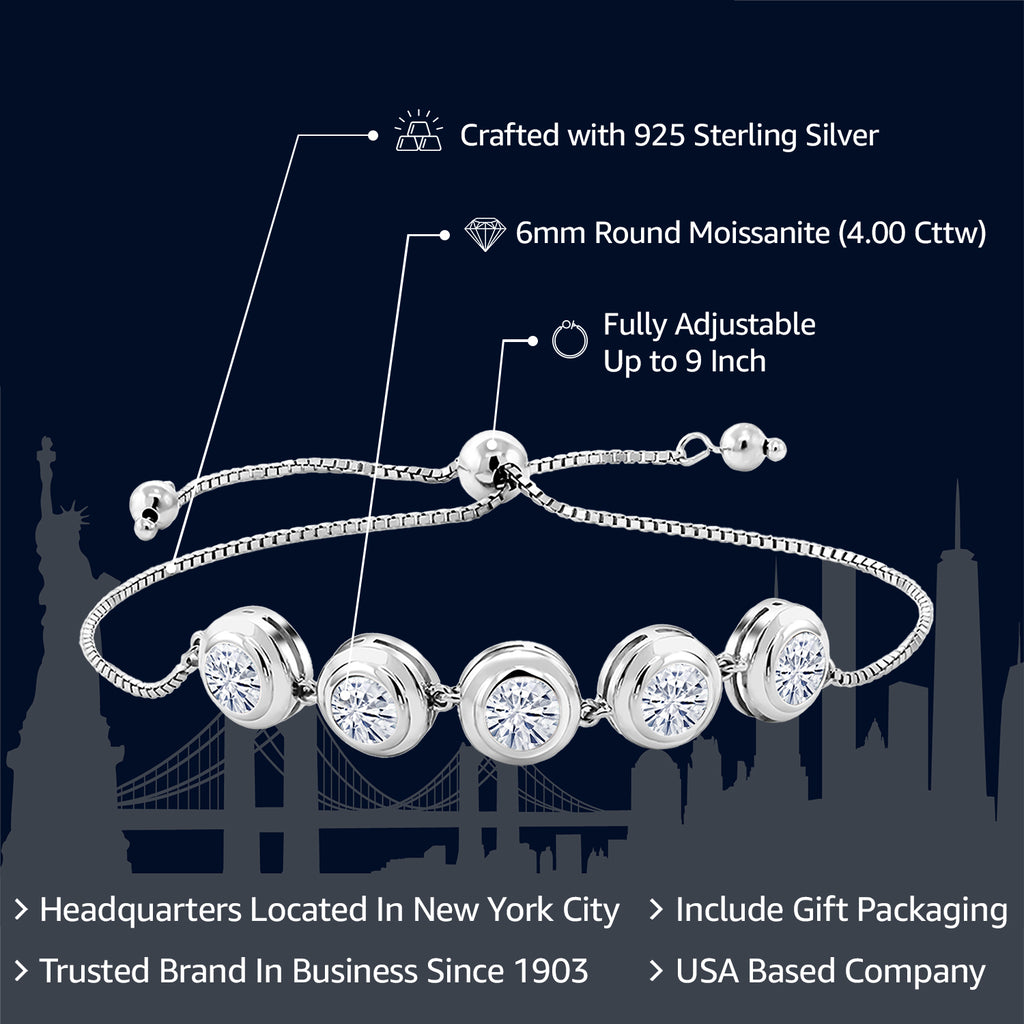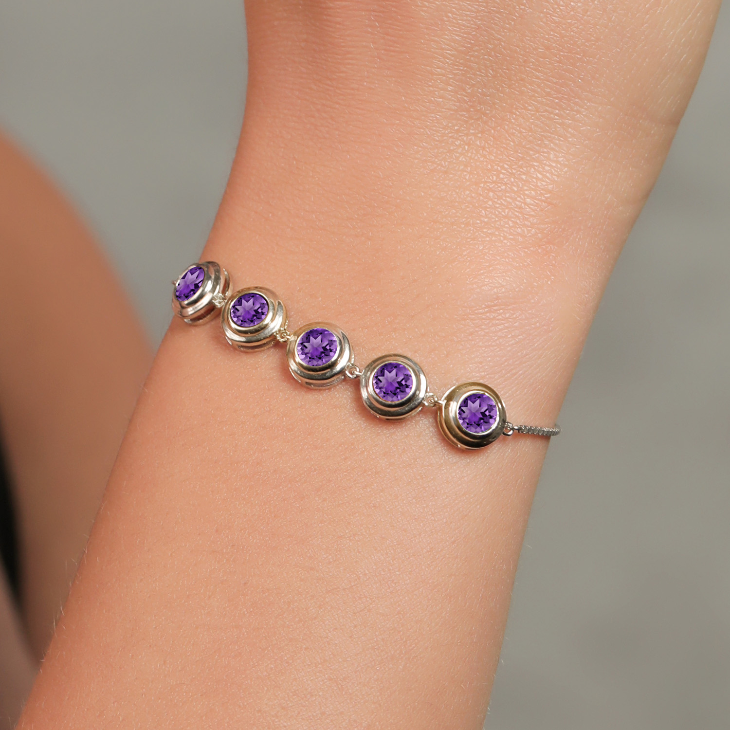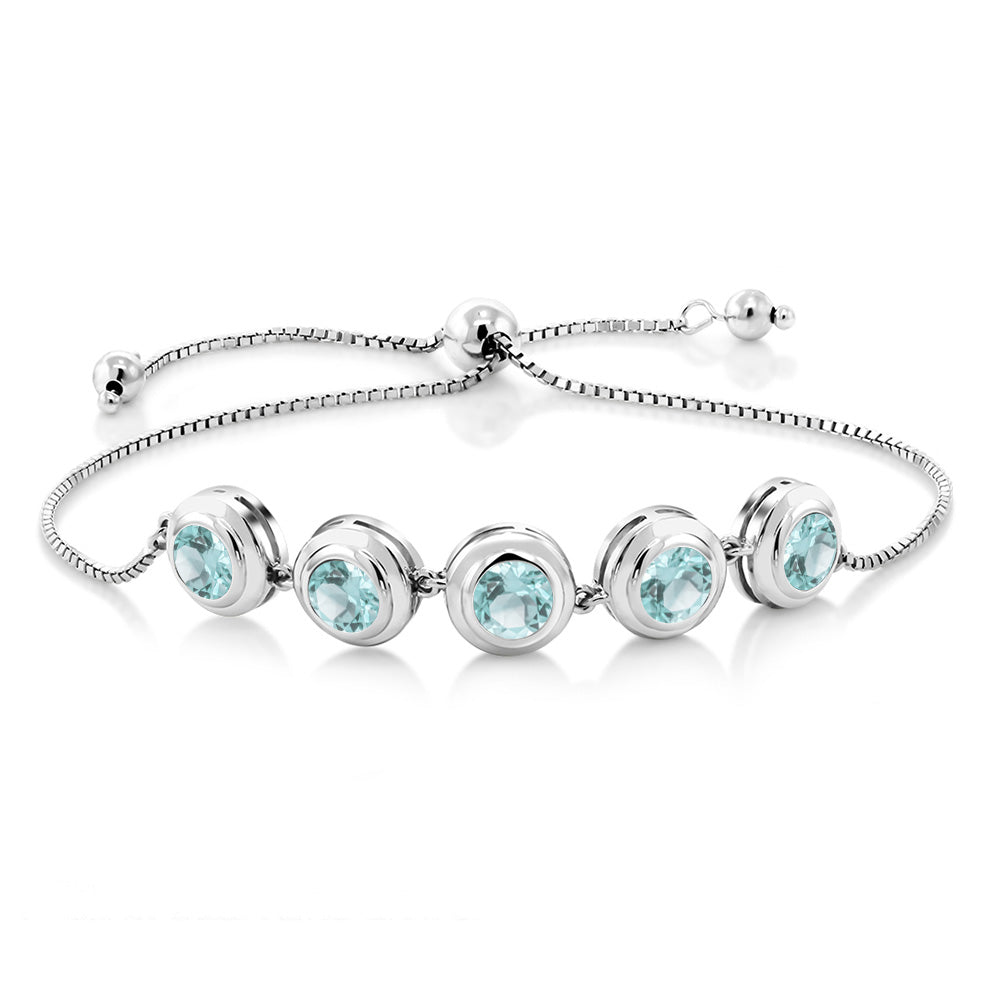 Gemstone Birthstone Tennis Bracelet for Women in 925 Sterling Silver | Round 6MM Bezel Set Stones | Adjustable Slider Clasp Fits Up to 9 Inch | Elegant Fine Jewelry for Her Mom Wife