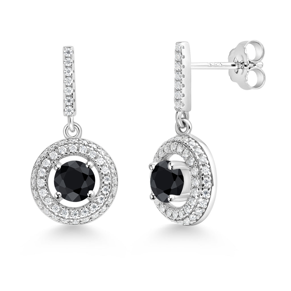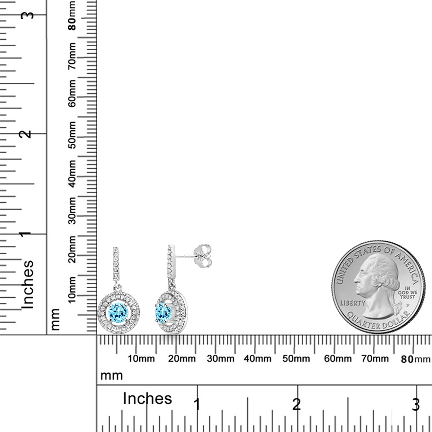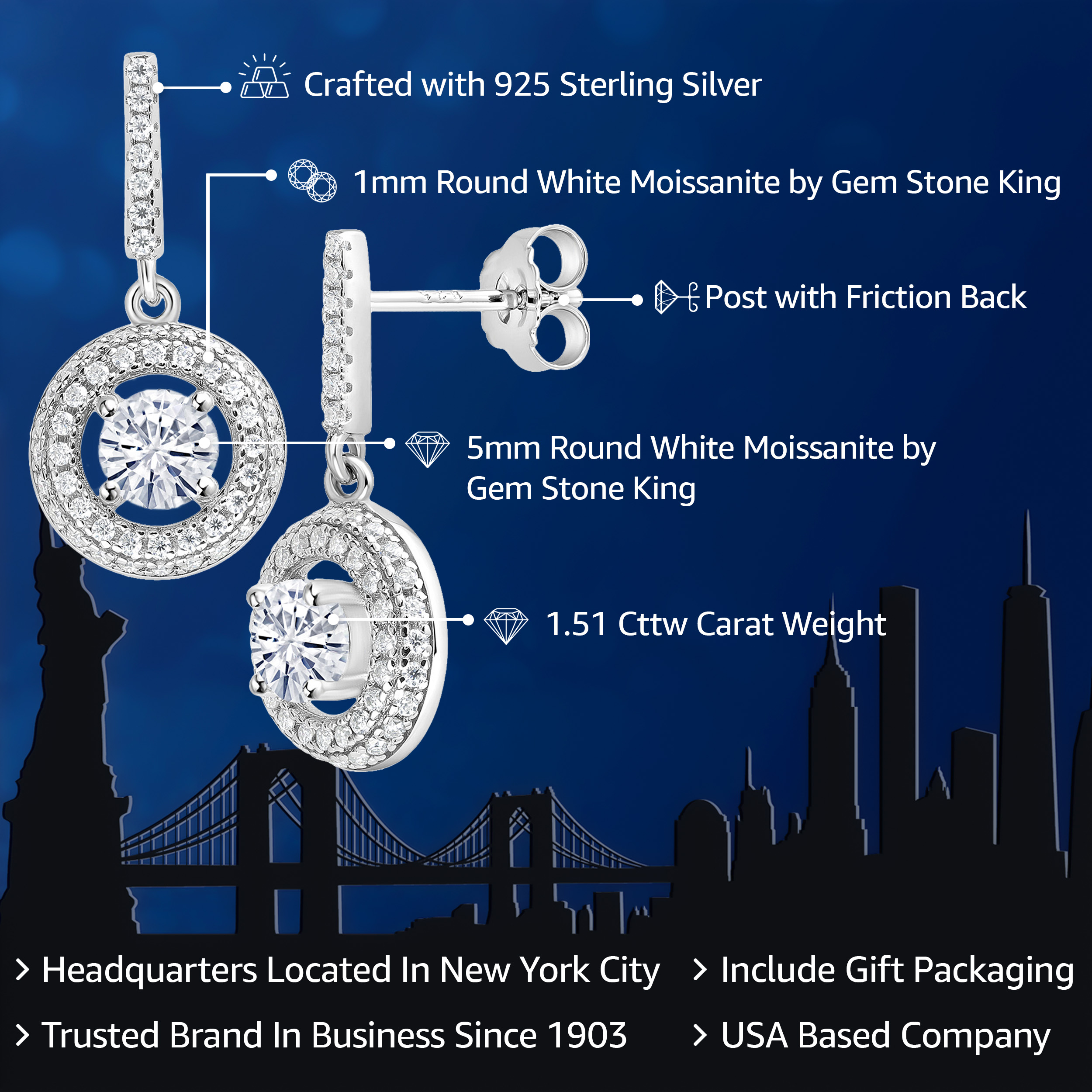 SPARKLING WHITE MOISSANITE ACCENTS: Framed with a double halo of 1MM round white moissanite stones and a moissanite-lined drop bar, each earring is expertly crafted for optimal brilliance. The hinged dangle design offers gentle sway and captures light with every movement, combining timeless glamour with modern elegance. Each earring is designed with precision to ensure a secure and graceful fit, perfect for any occasion.