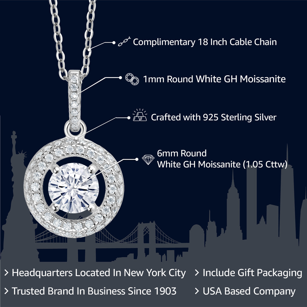 ELEGANT COMBINATION: This pendant necklace elegantly combines a 6MM round gemstone birthstone with sparkling White Moissanite stones, set in high-quality 925 Sterling Silver for a sophisticated and dazzling look.