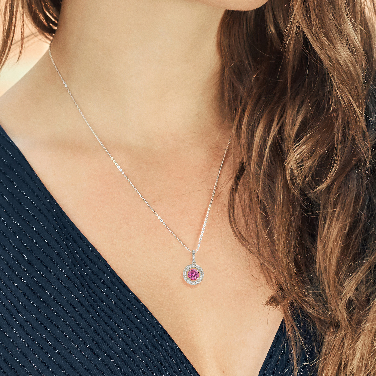 HALO DESIGN: The halo setting surrounding the gemstone and White Moissanite stones creates a mesmerizing halo effect, adding depth, sparkle, and a touch of luxury to the necklace.