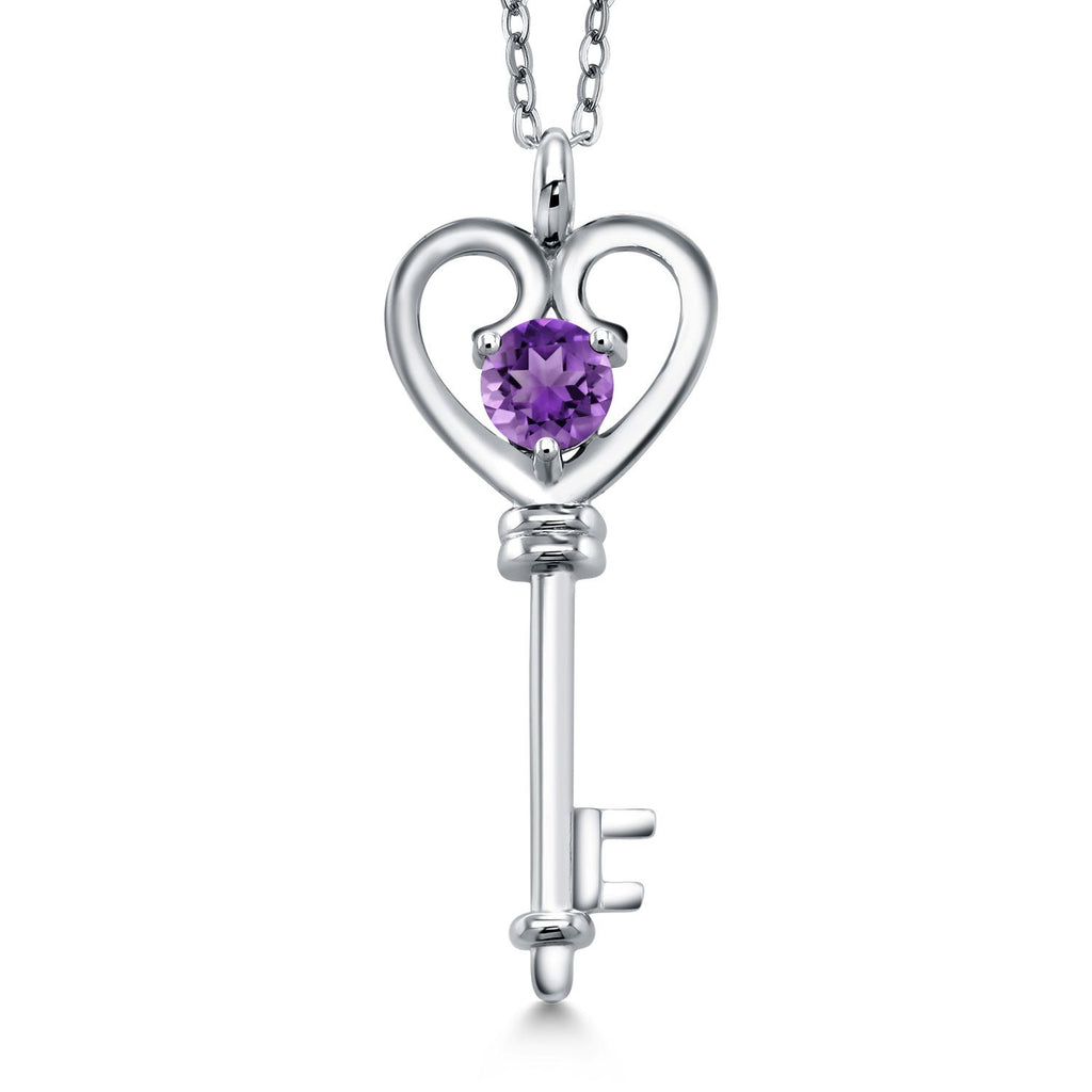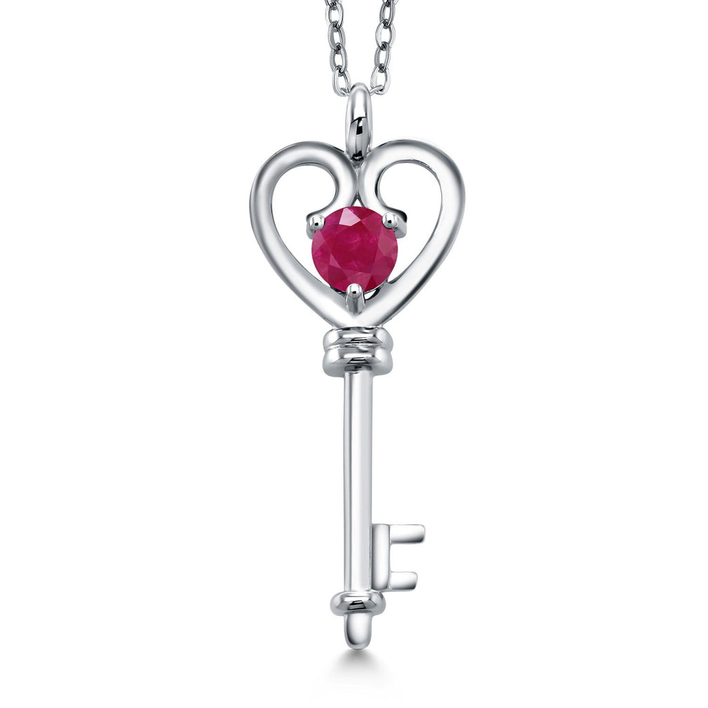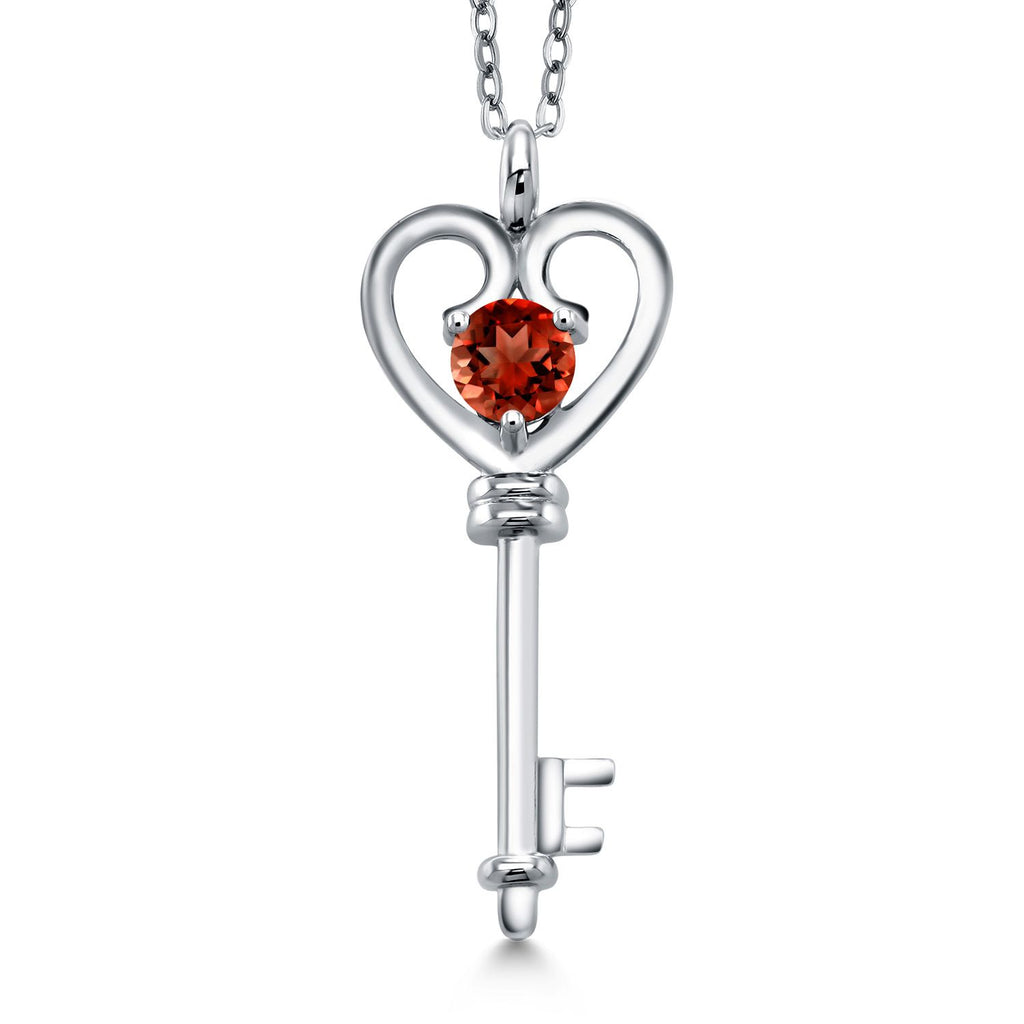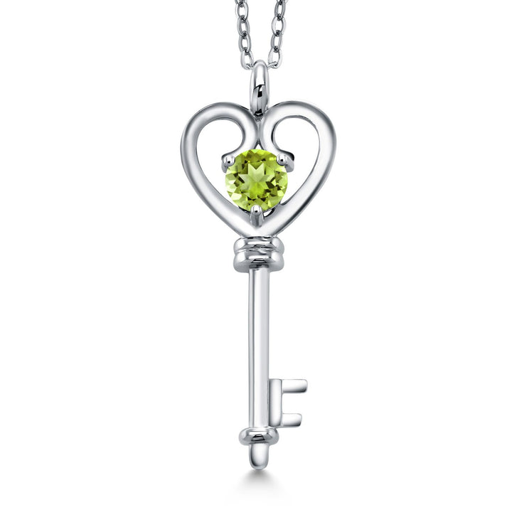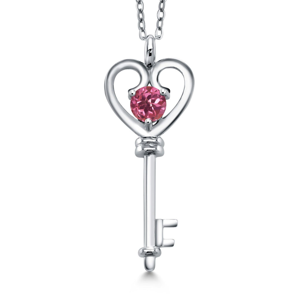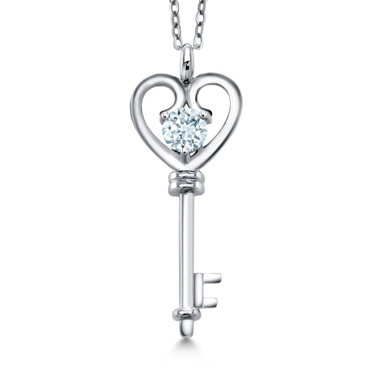 Heart Key Pendant Necklace For Women In 925 Sterling Silver | Round 5MM | Gemstone Birthstone | Mom Wife Birthday Anniversary Graduation Gifts | With 18 Inch Silver Chain