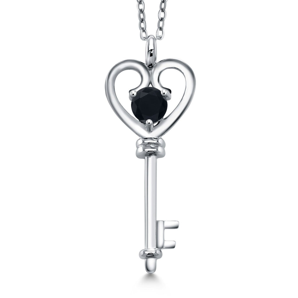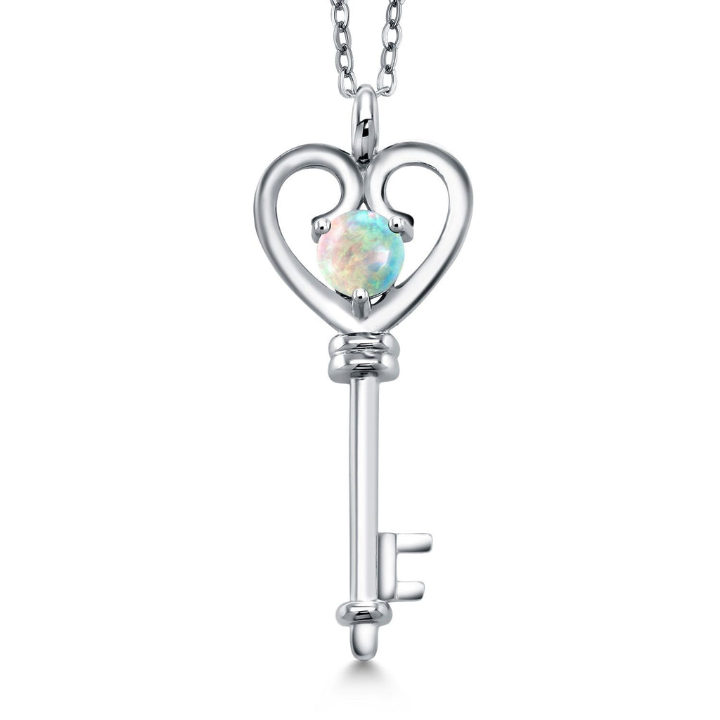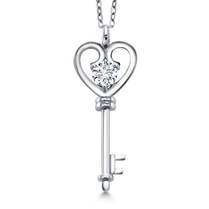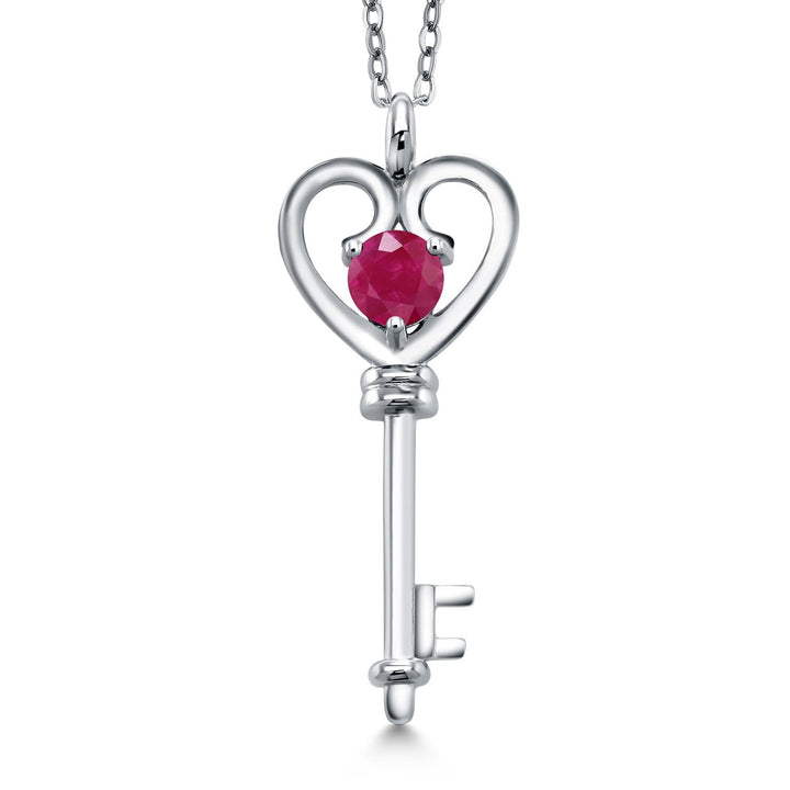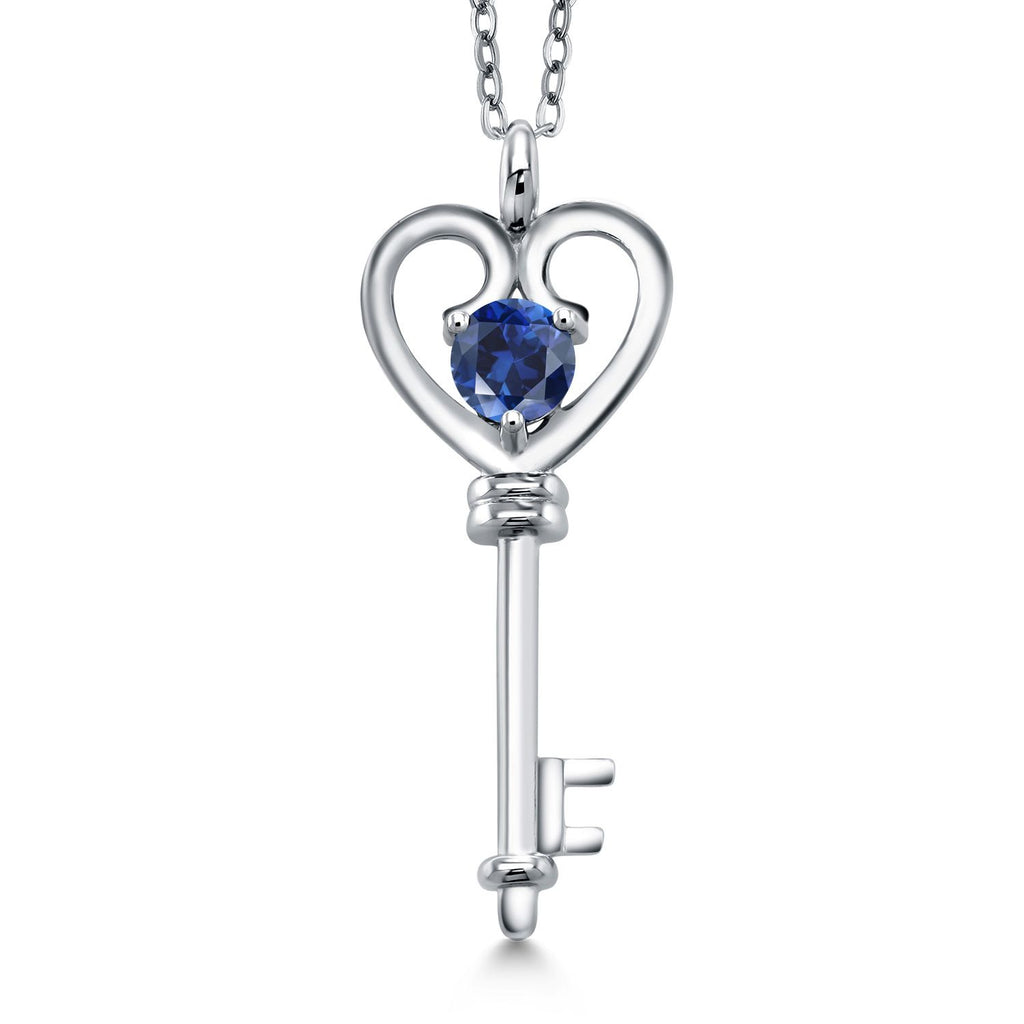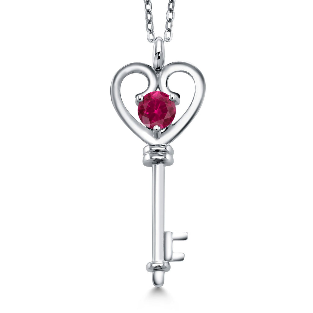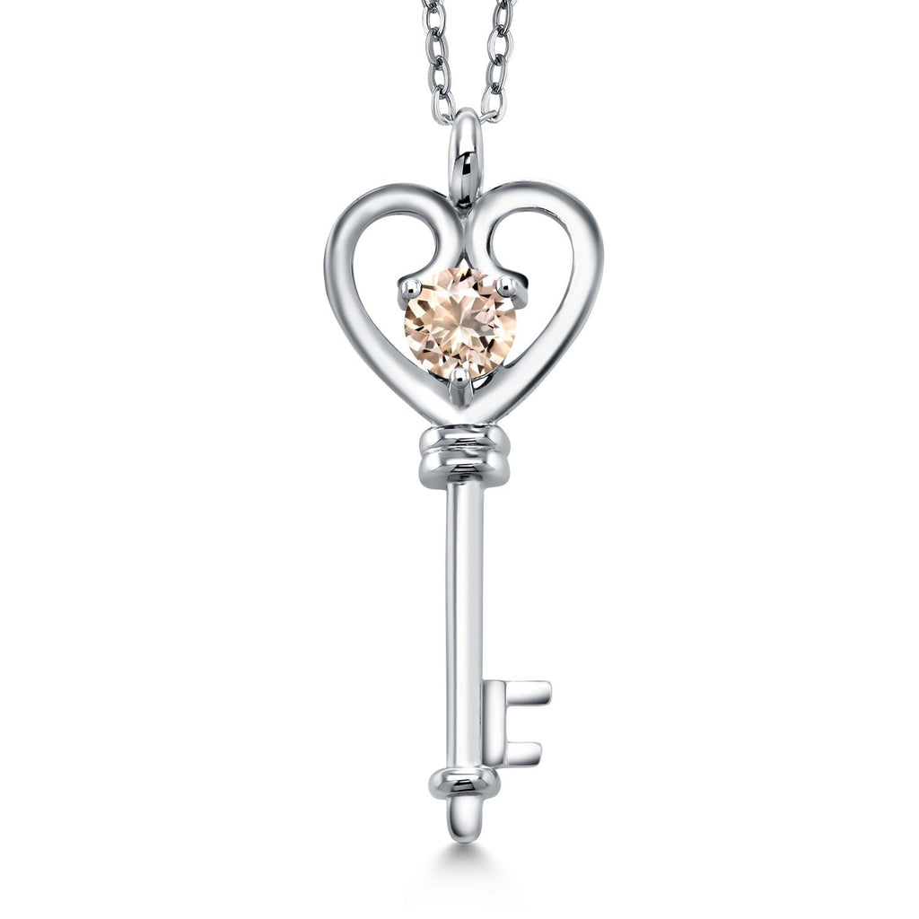 Heart Key Pendant Necklace For Women In 925 Sterling Silver | Round 5MM | Gemstone Birthstone | Mom Wife Birthday Anniversary Graduation Gifts | With 18 Inch Silver Chain
