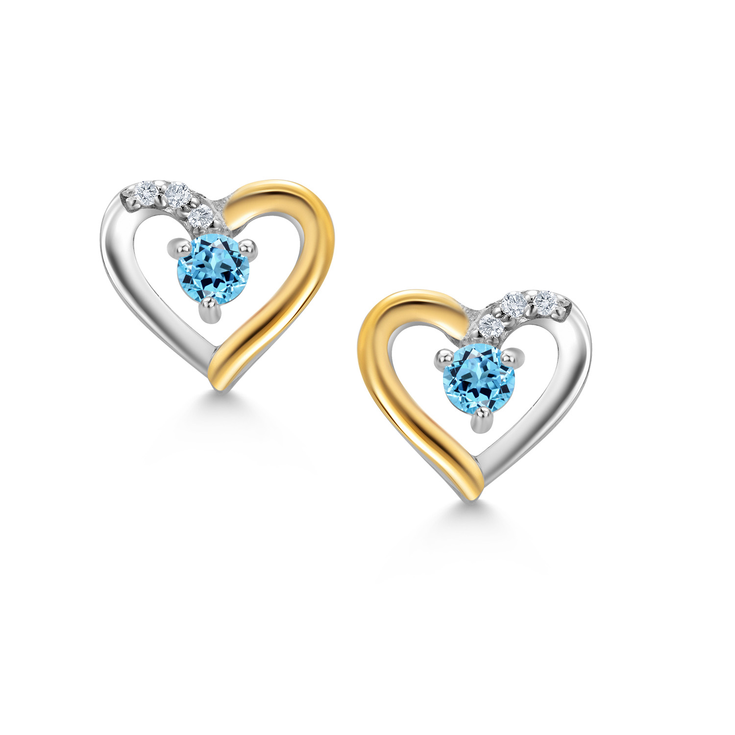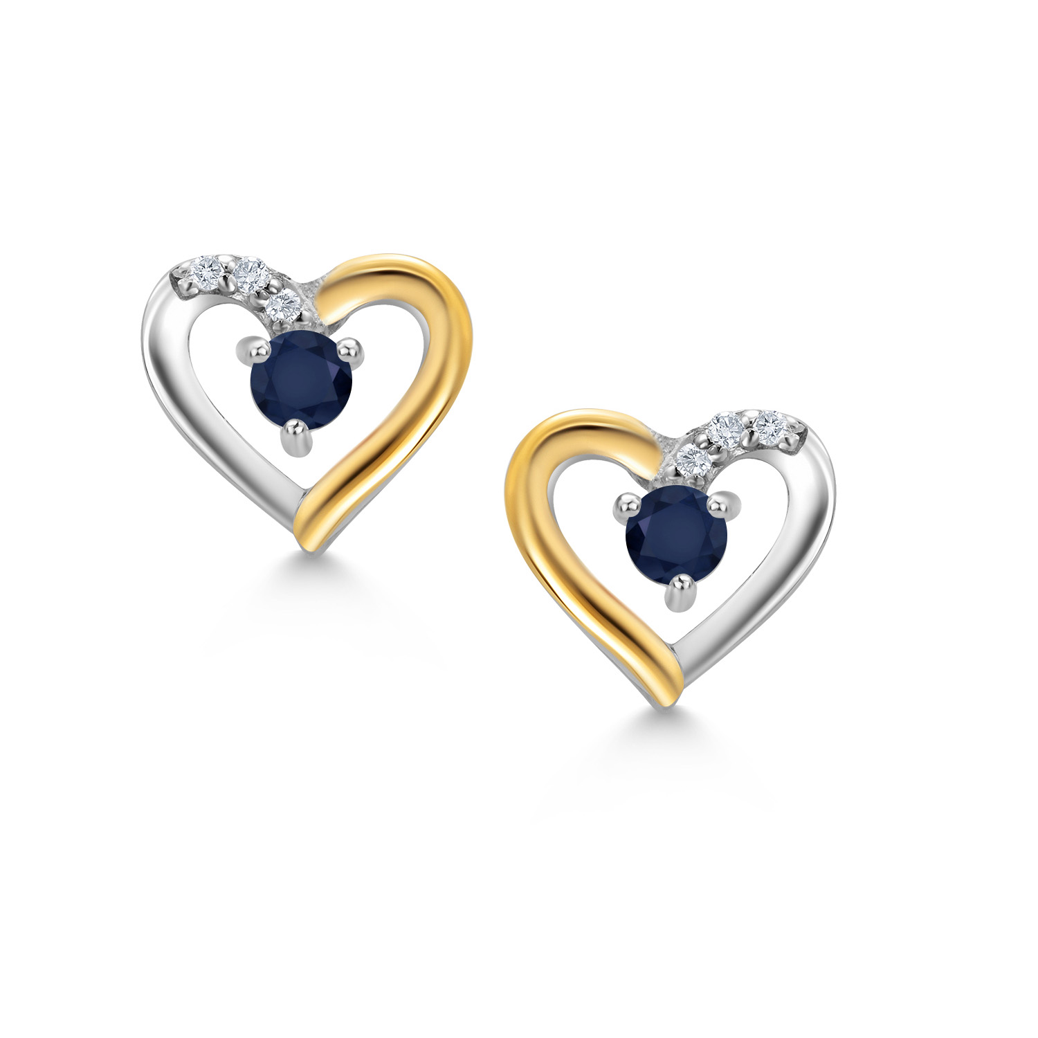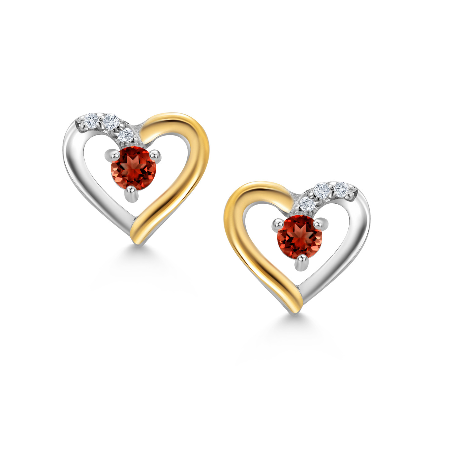 Heart Shape Earrings For Women | Round Gemstone Birthstone and White Lab Grown Diamond | 925 Sterling Silver and 10K Yellow Gold | Fine Jewelry Gifts for Her Mom Women Wife