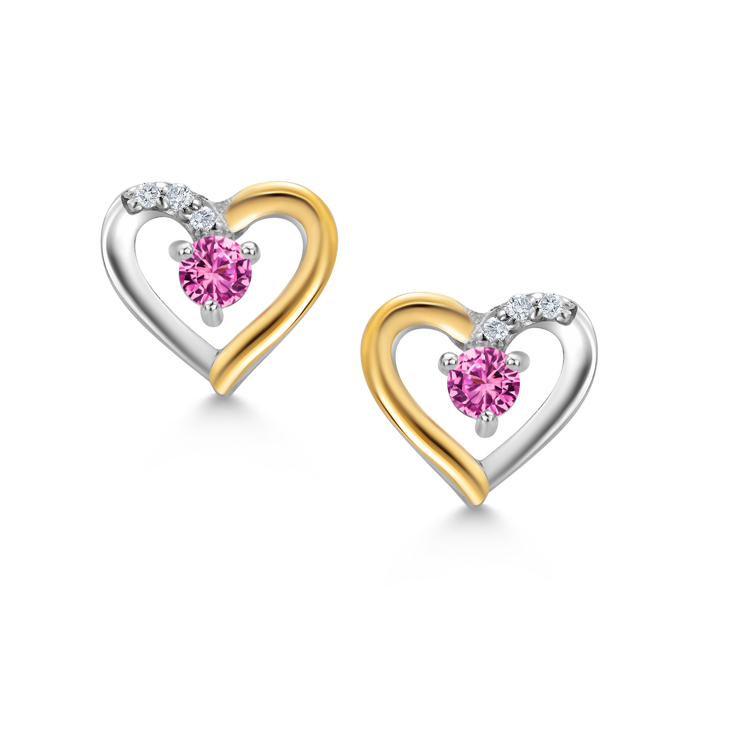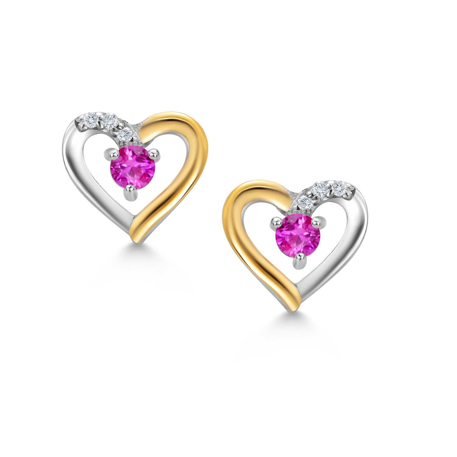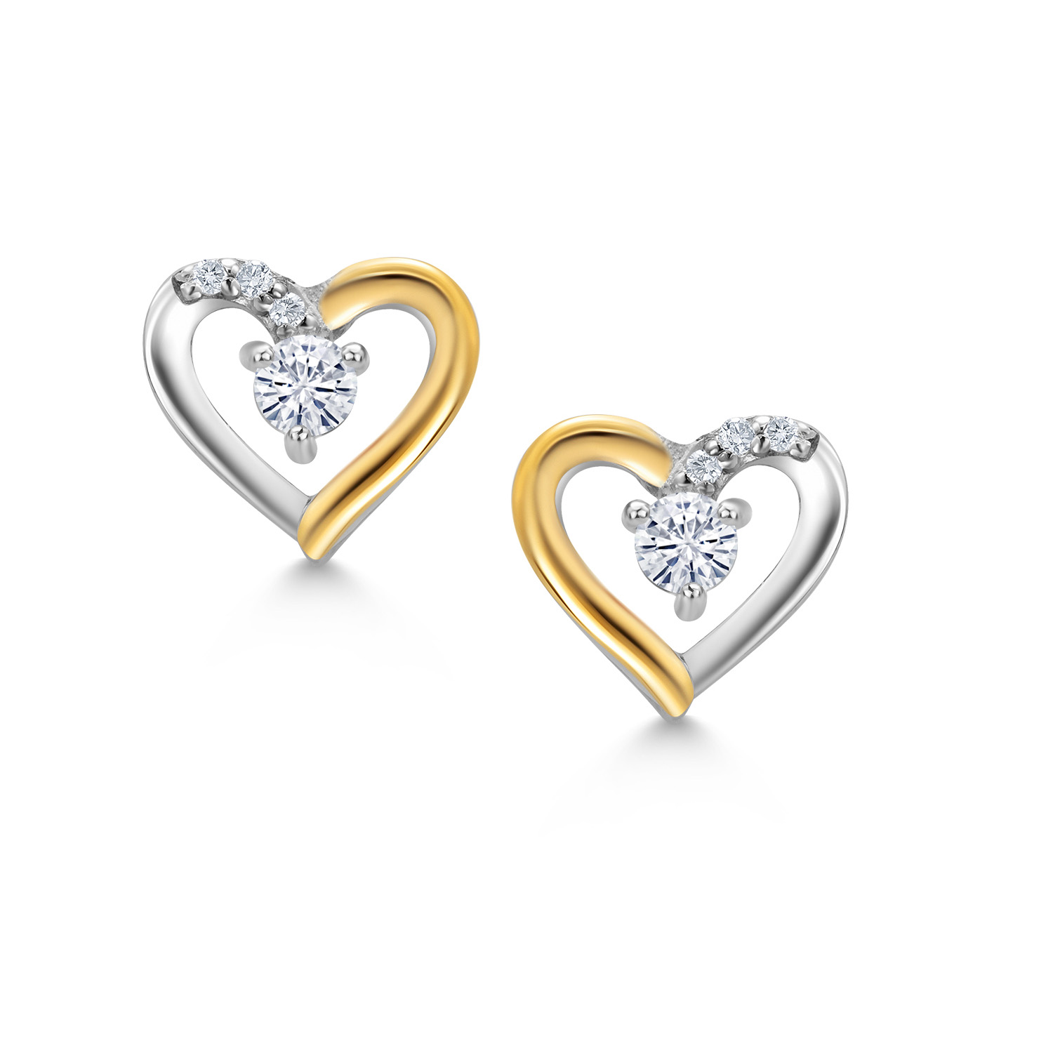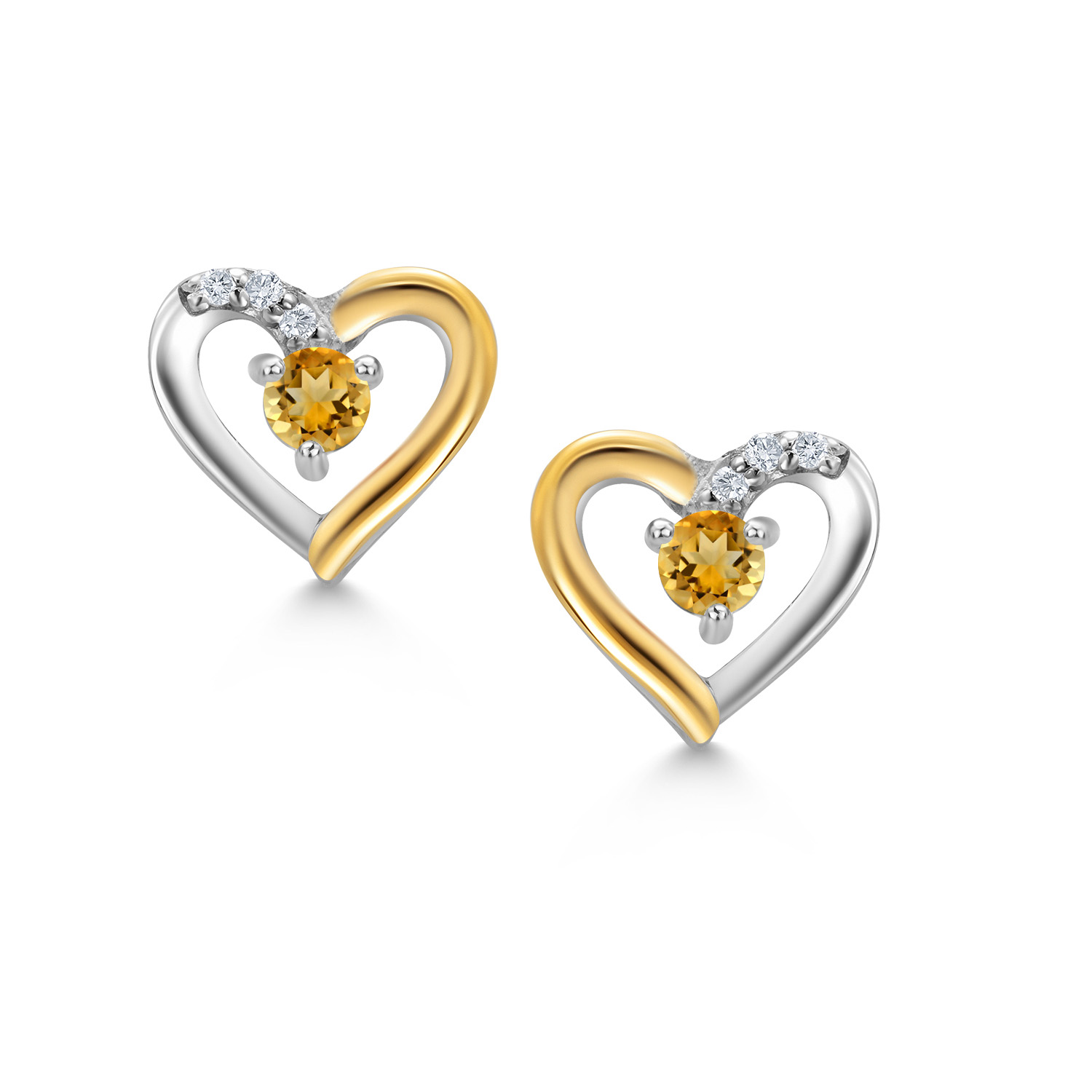 Heart Shape Earrings For Women | Round Gemstone Birthstone and White Lab Grown Diamond | 925 Sterling Silver and 10K Yellow Gold | Fine Jewelry Gifts for Her Mom Women Wife