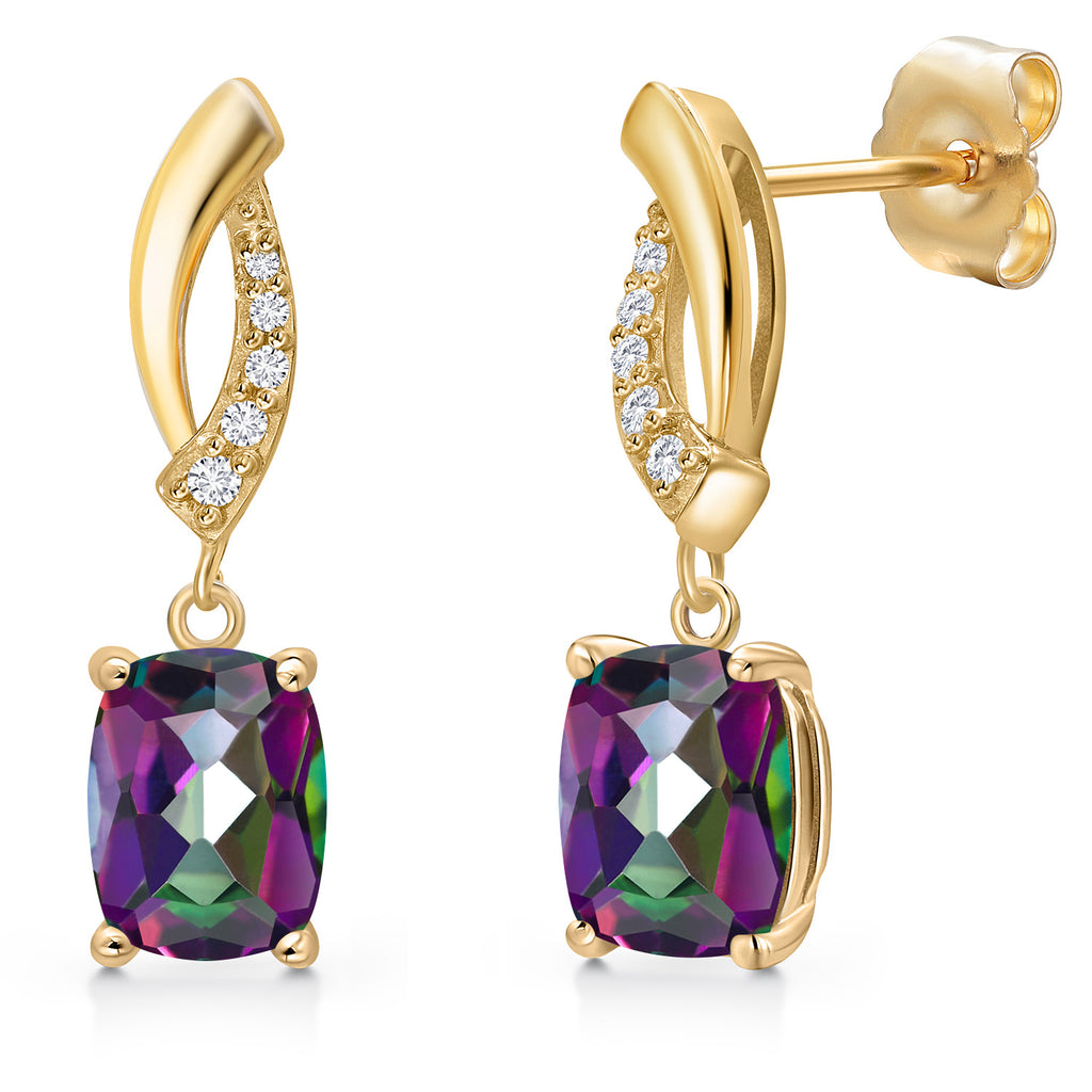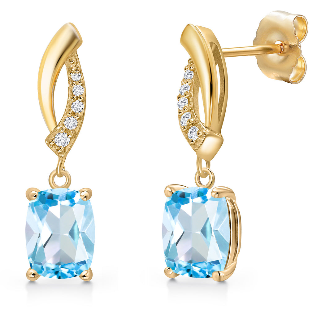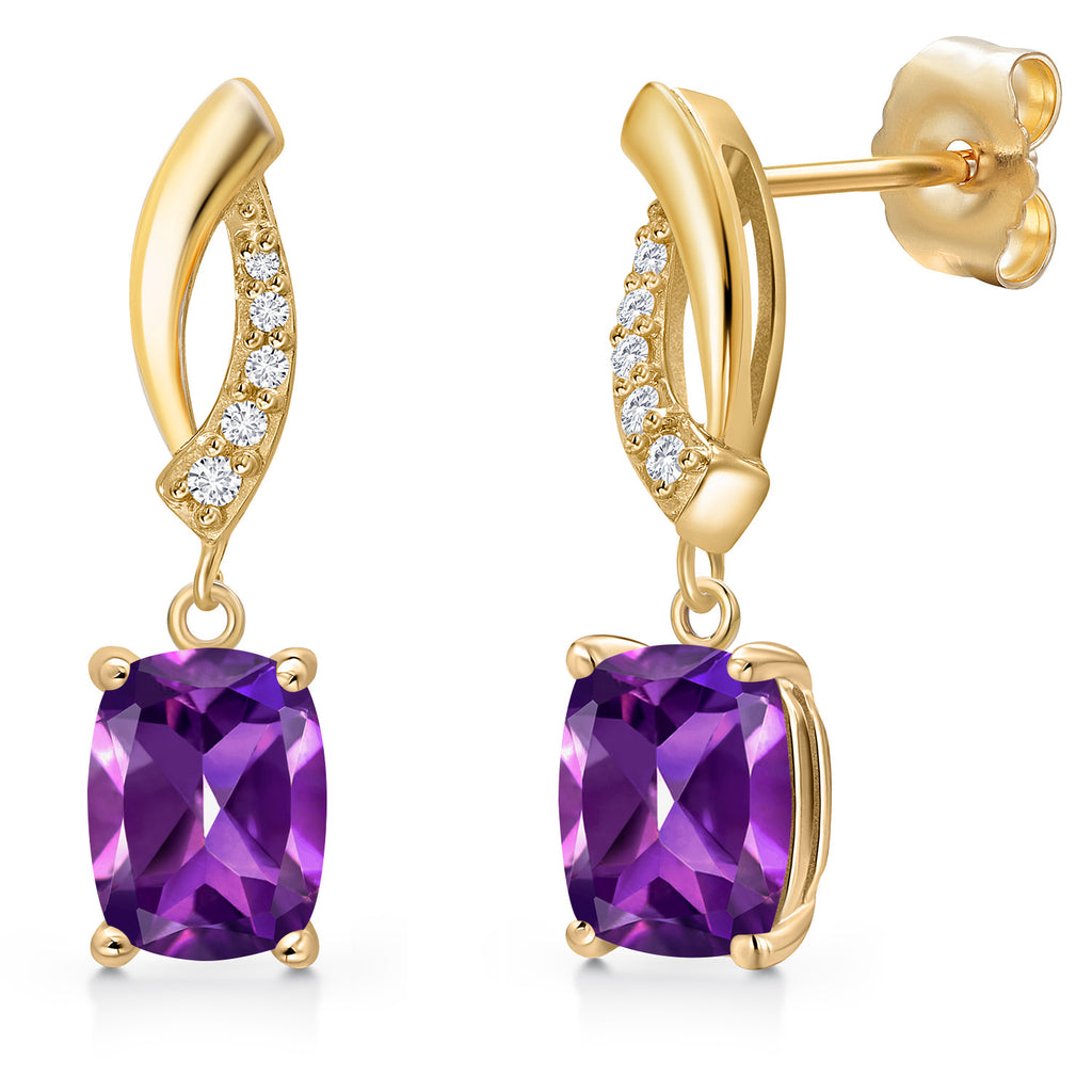 Infinity Dangle Drop Earrings For Women in 14K Yellow Gold | 7X5MM Cushion Gemstone Birthstone and 1MM Accent Lab Grown Diamond | Fine Jewelry Gifts for Her Mom Women Wife