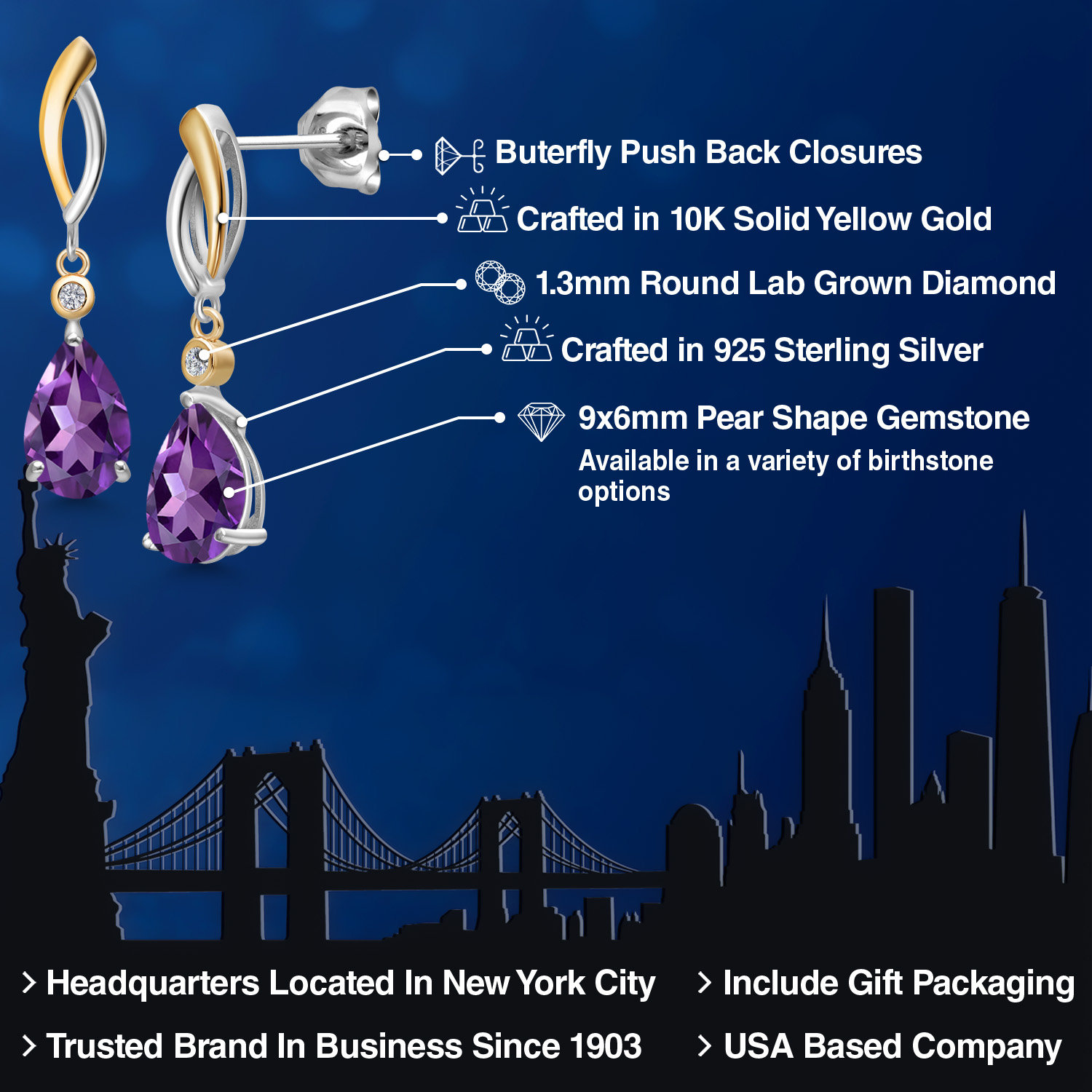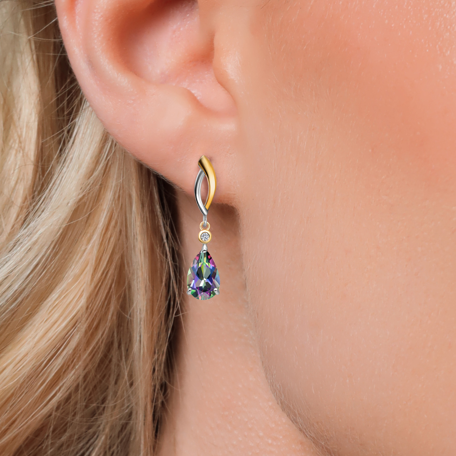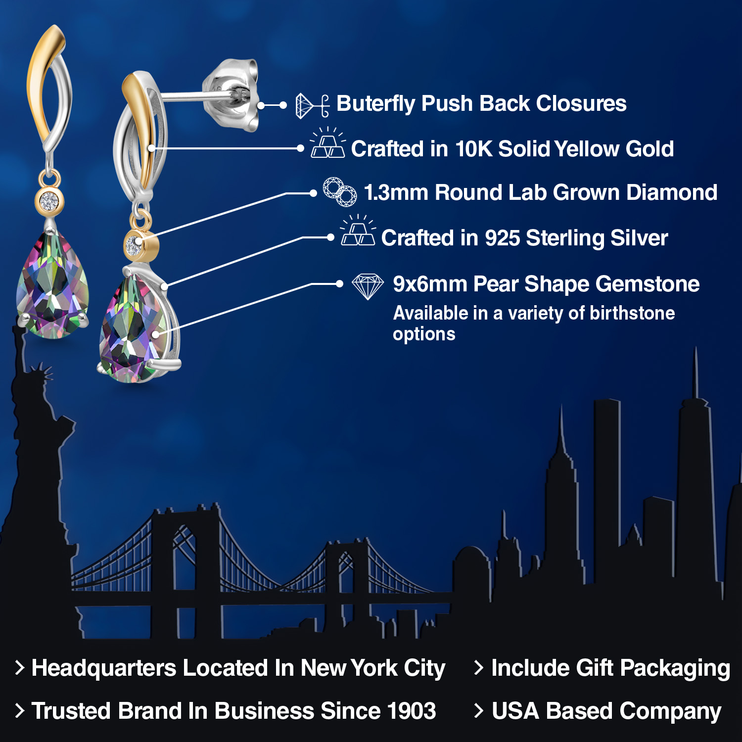 DAZZLING DESIGN WITH LAB GROWN DIAMOND: Featuring a 1.3mm round lab grown diamond accent, the earrings showcase a harmonious blend of metals that create a sophisticated, modern look. The combination of silver and gold enhances the gemstone's allure and elegance.