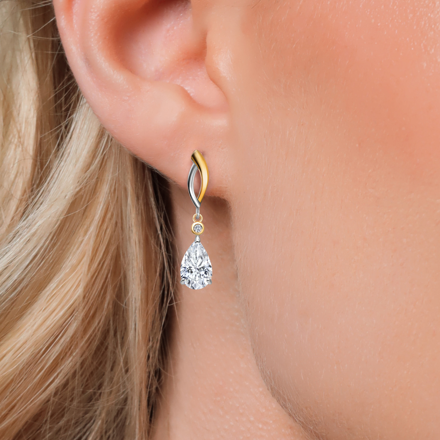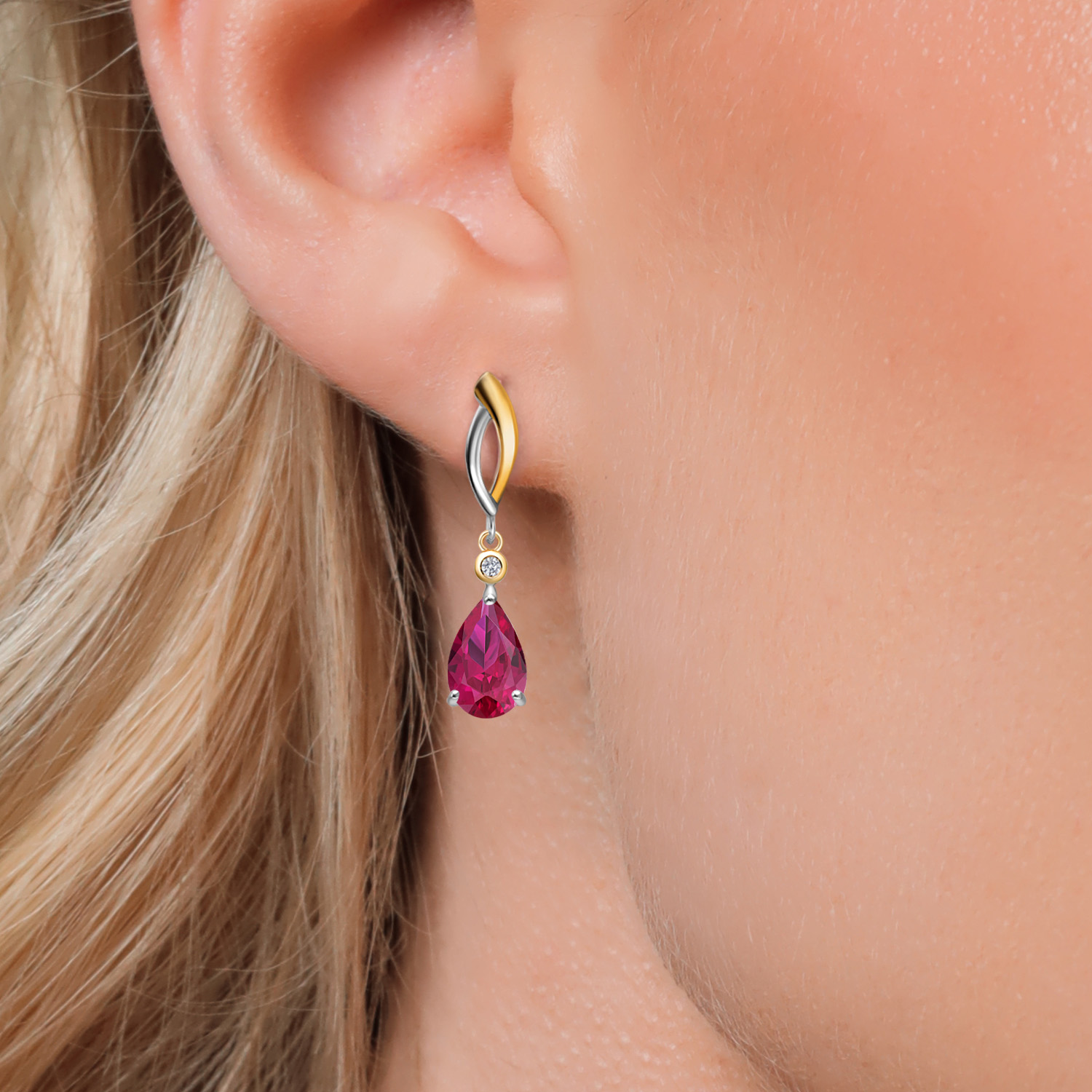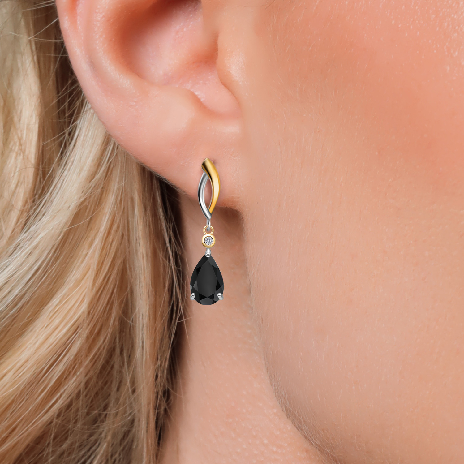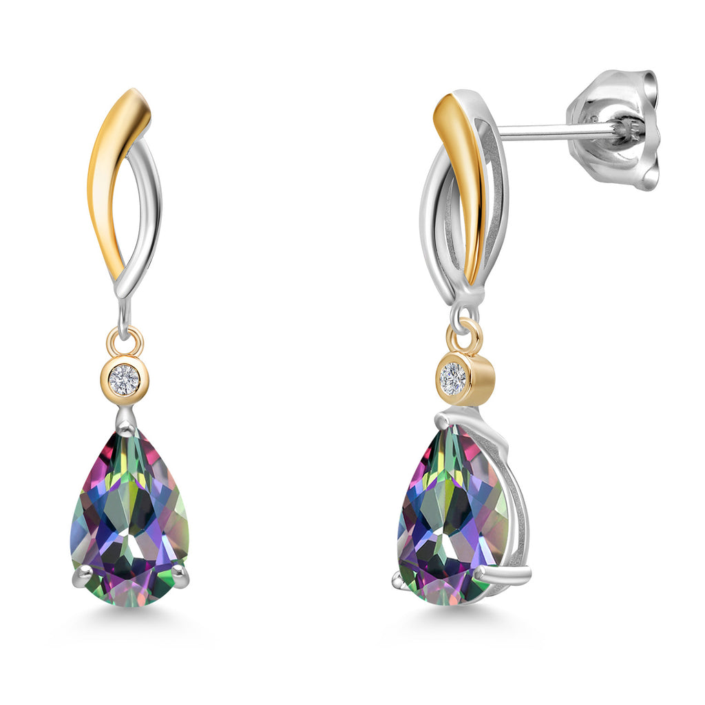 DAZZLING DESIGN WITH LAB GROWN DIAMOND: Featuring a 1.3mm round lab grown diamond accent, the earrings showcase a harmonious blend of metals that create a sophisticated, modern look. The combination of silver and gold enhances the gemstone's allure and elegance.