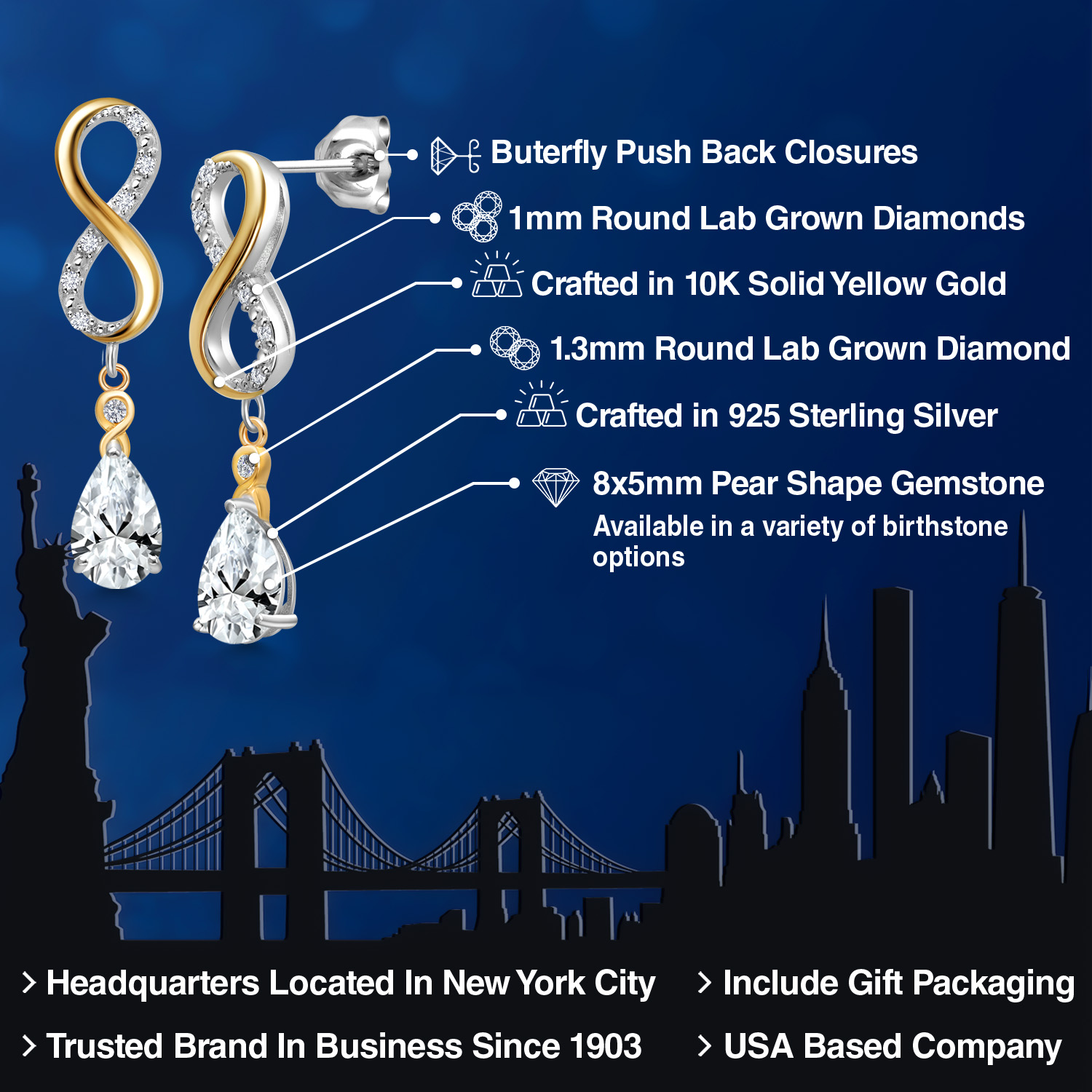 VIBRANT PEAR-SHAPED GEMSTONES: Each earring showcases a dazzling 8x5MM pear-shaped gemstone birthstone, adding a pop of vibrant color. The pear-shaped gemstones are expertly cut to enhance their natural beauty, making these earrings a standout accessory for any occasion.