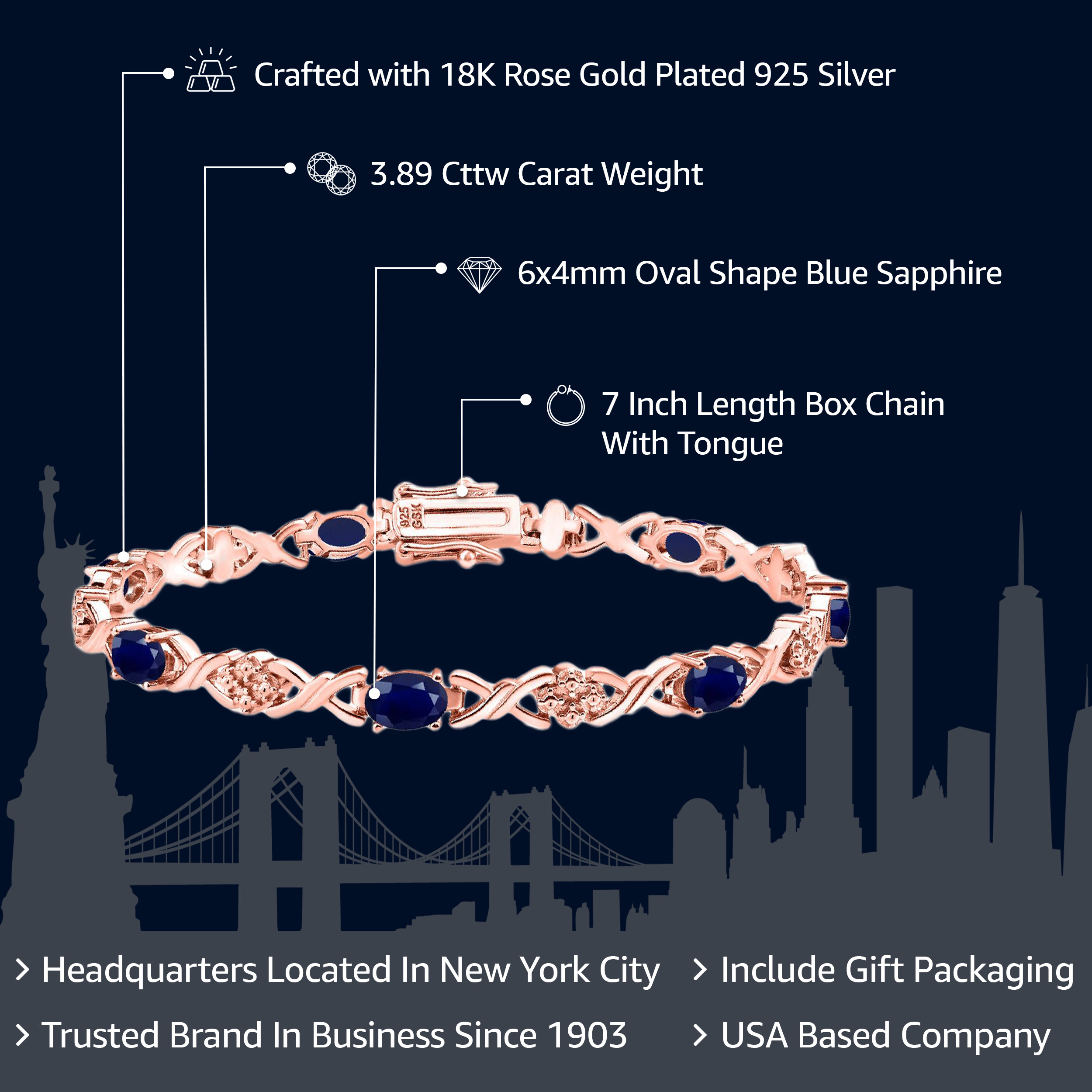 Infinity Link Gemstone Birthstone Tennis Bracelet for Women | 18K Rose Gold Plated Silver | Oval 6X4MM | 7 Inch with Secure Clasp | Fine Jewelry for Her Mom Wife Anniversary