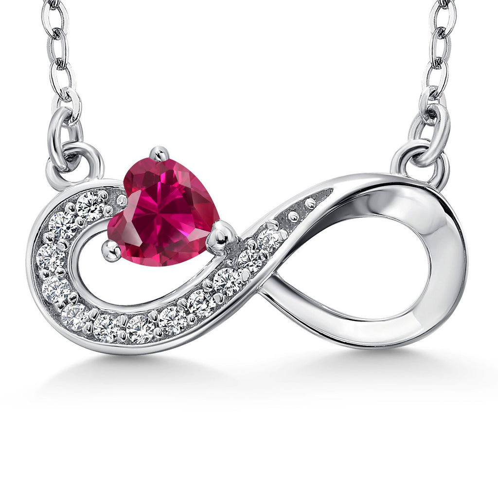 Infinity Pendant Necklace For Women | 925 Sterling Silver | 4MM Heart Shape Gemstone Birthstone | 18 Inch Silver Chain | Fine Jewelry Gifts for Her Mom Women Wife