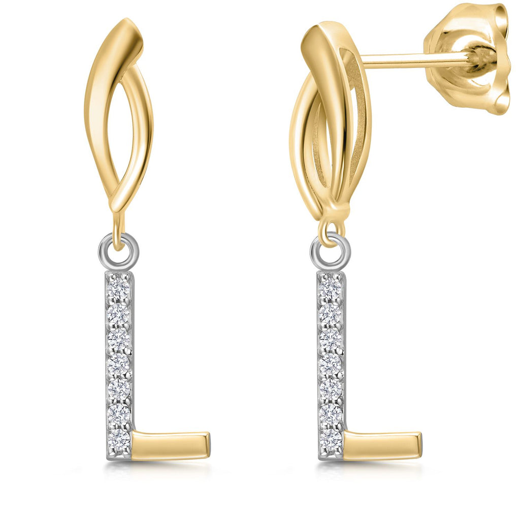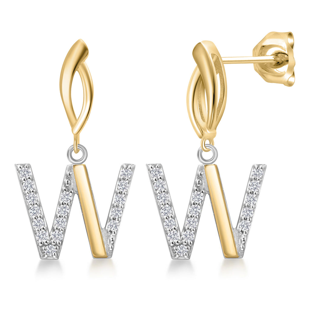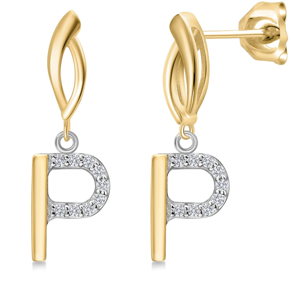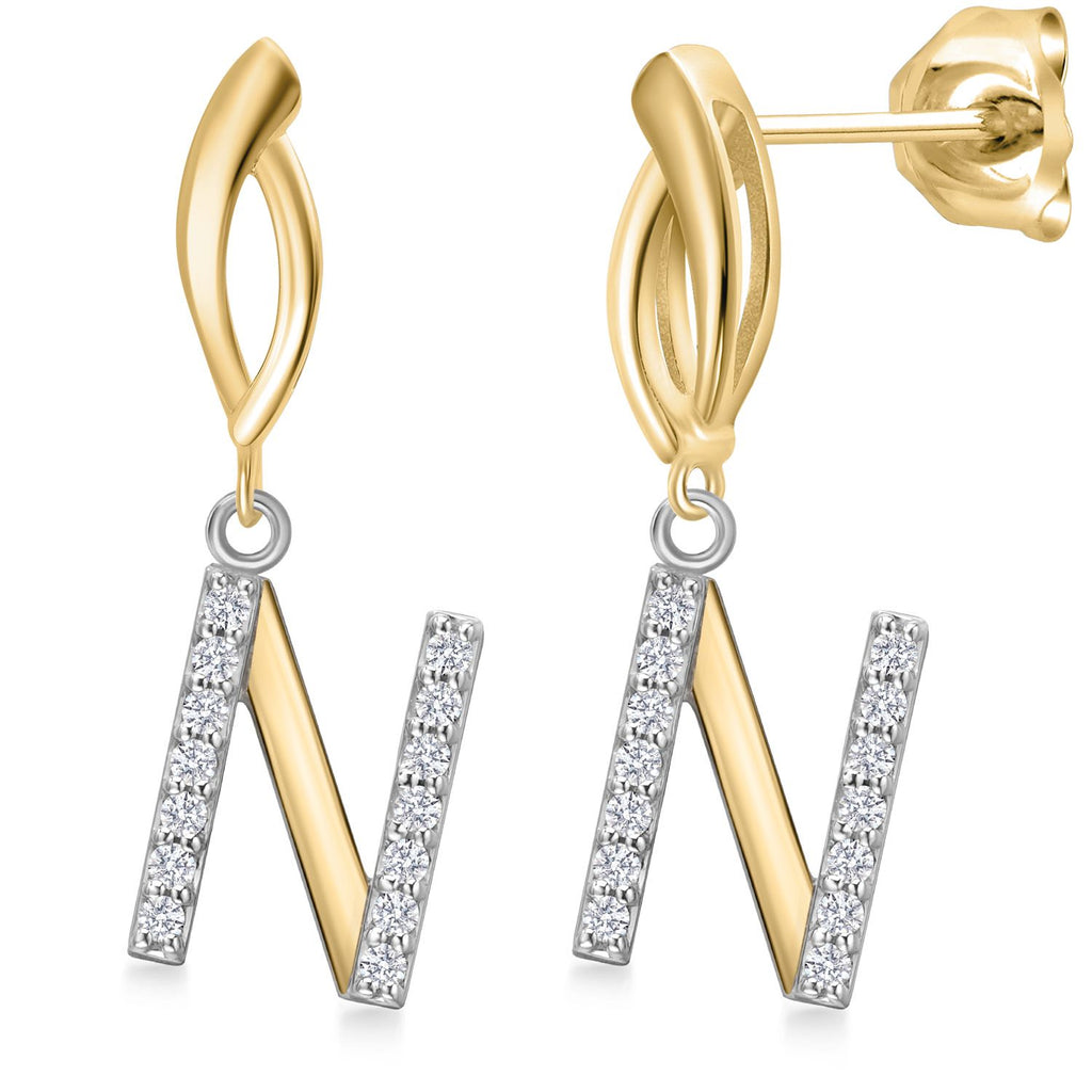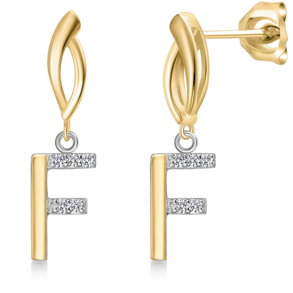 Initial Earrings Letter A to Z Alphabet | 10K Yellow Gold and 925 Sterling Silver | Lab Grown Diamond | Gift Women Mother's Day Wife Mom Girlfriend Anniversary Birthday | By Keren Hanan