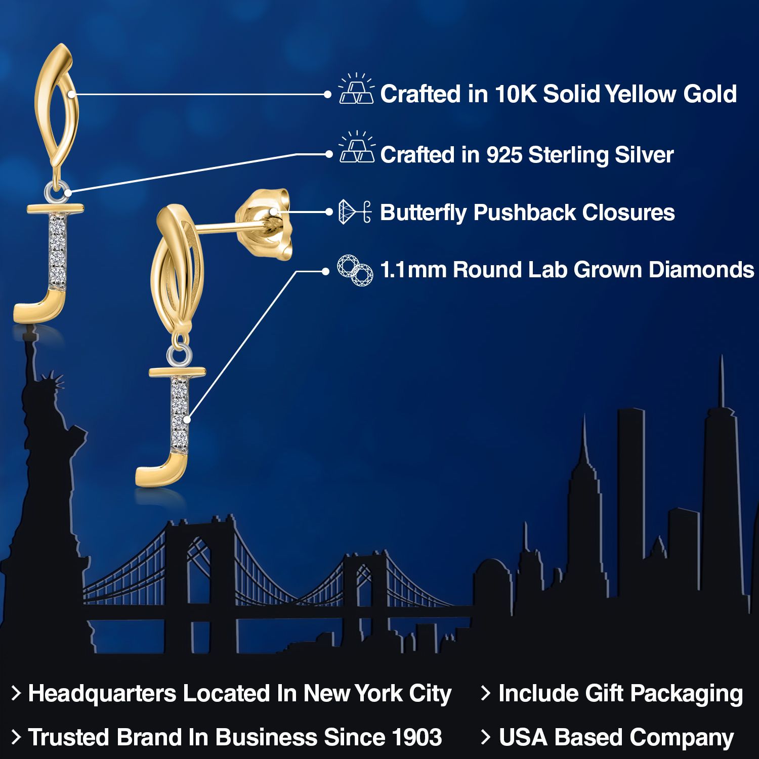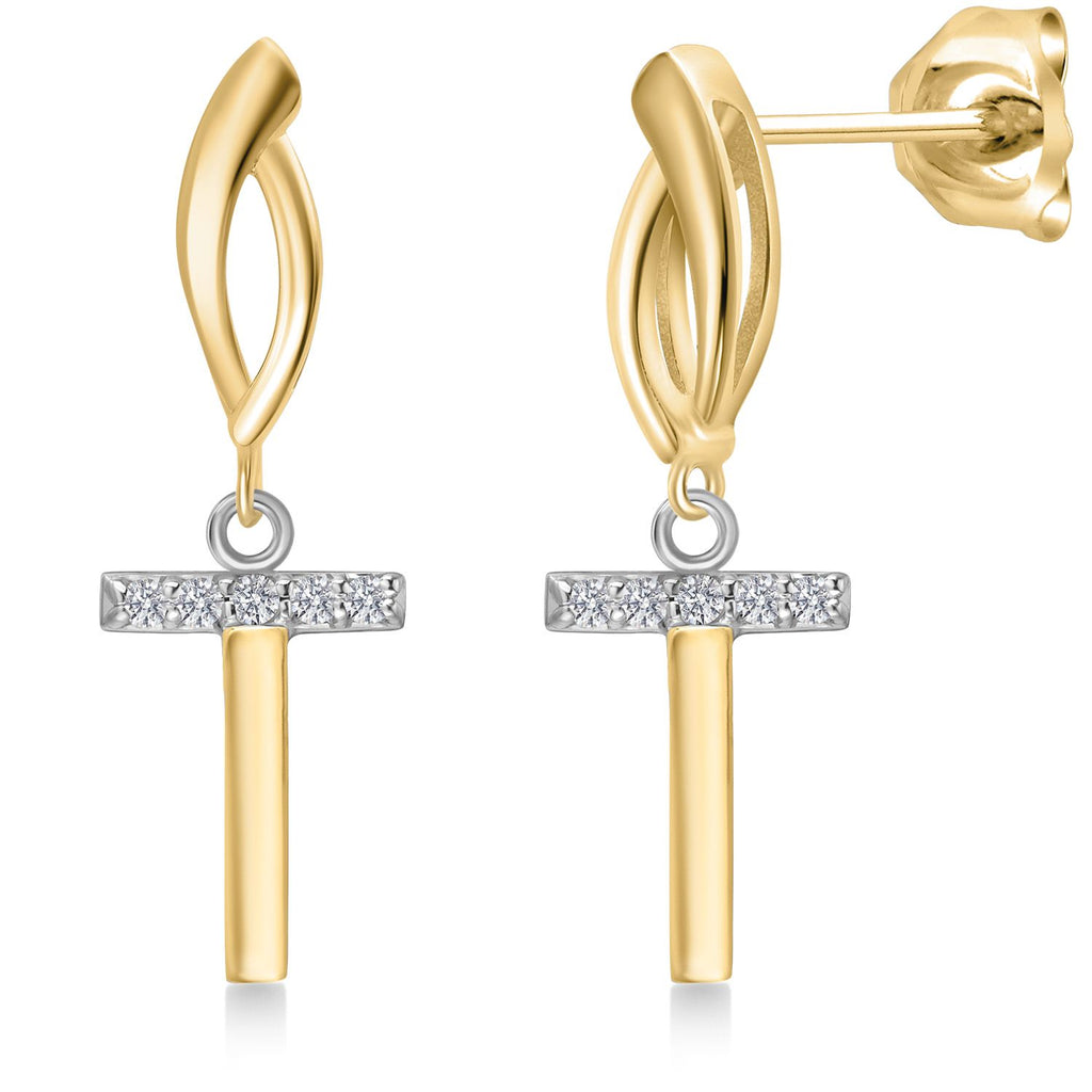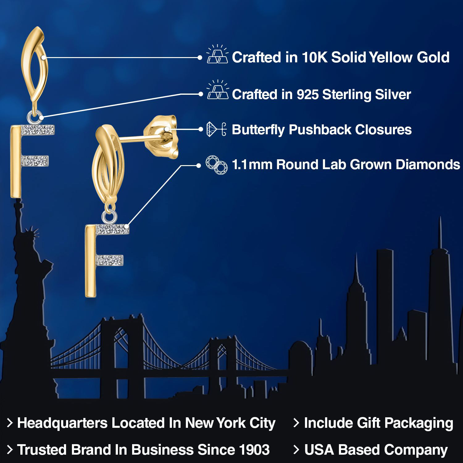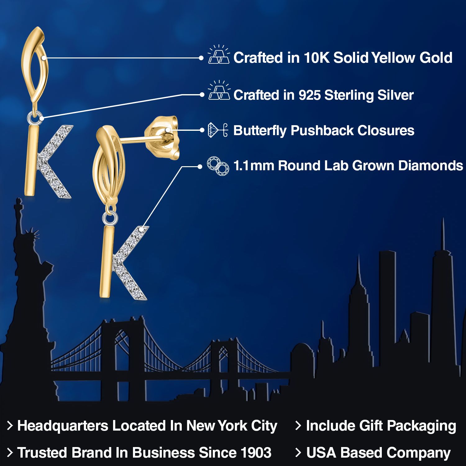 Initial Earrings Letter A to Z Alphabet | 10K Yellow Gold and 925 Sterling Silver | Lab Grown Diamond | Gift Women Mother's Day Wife Mom Girlfriend Anniversary Birthday | By Keren Hanan