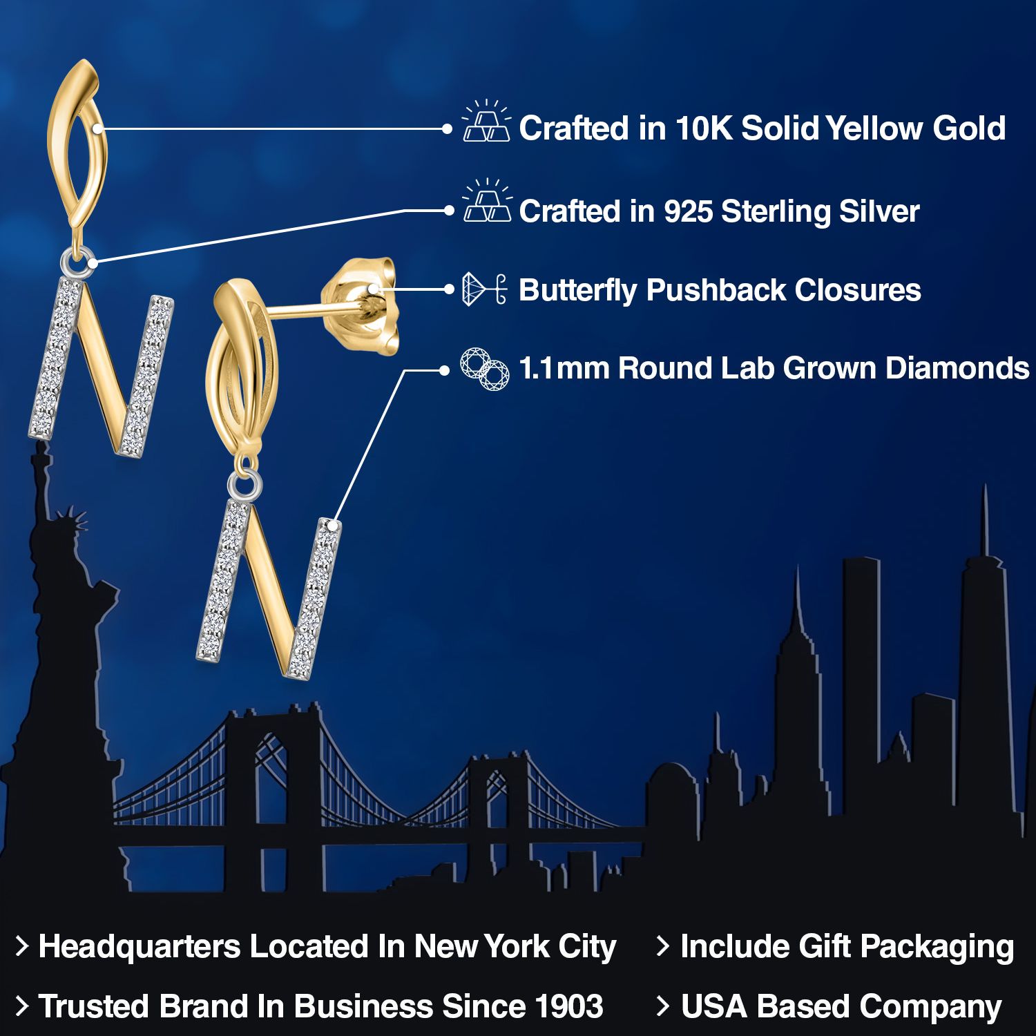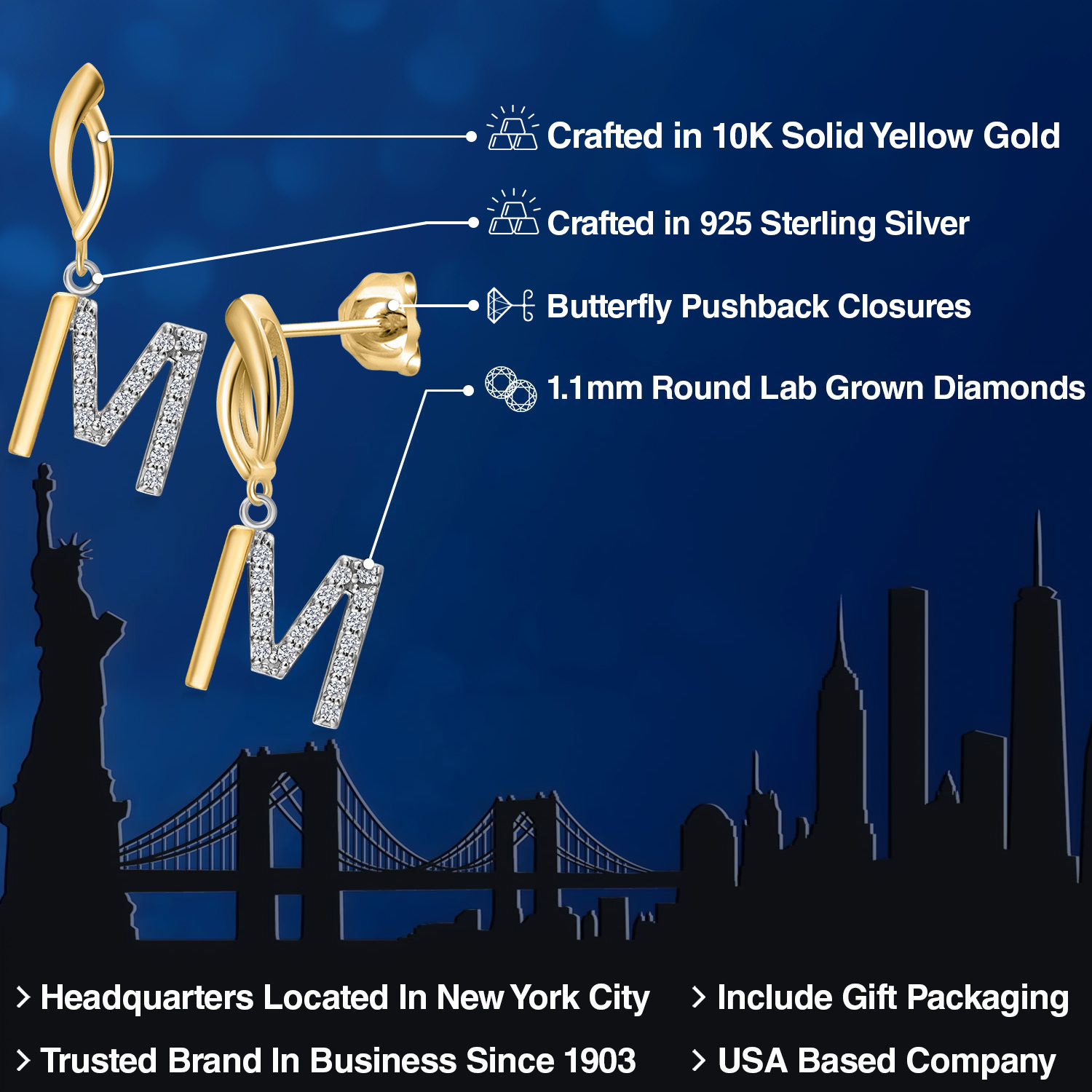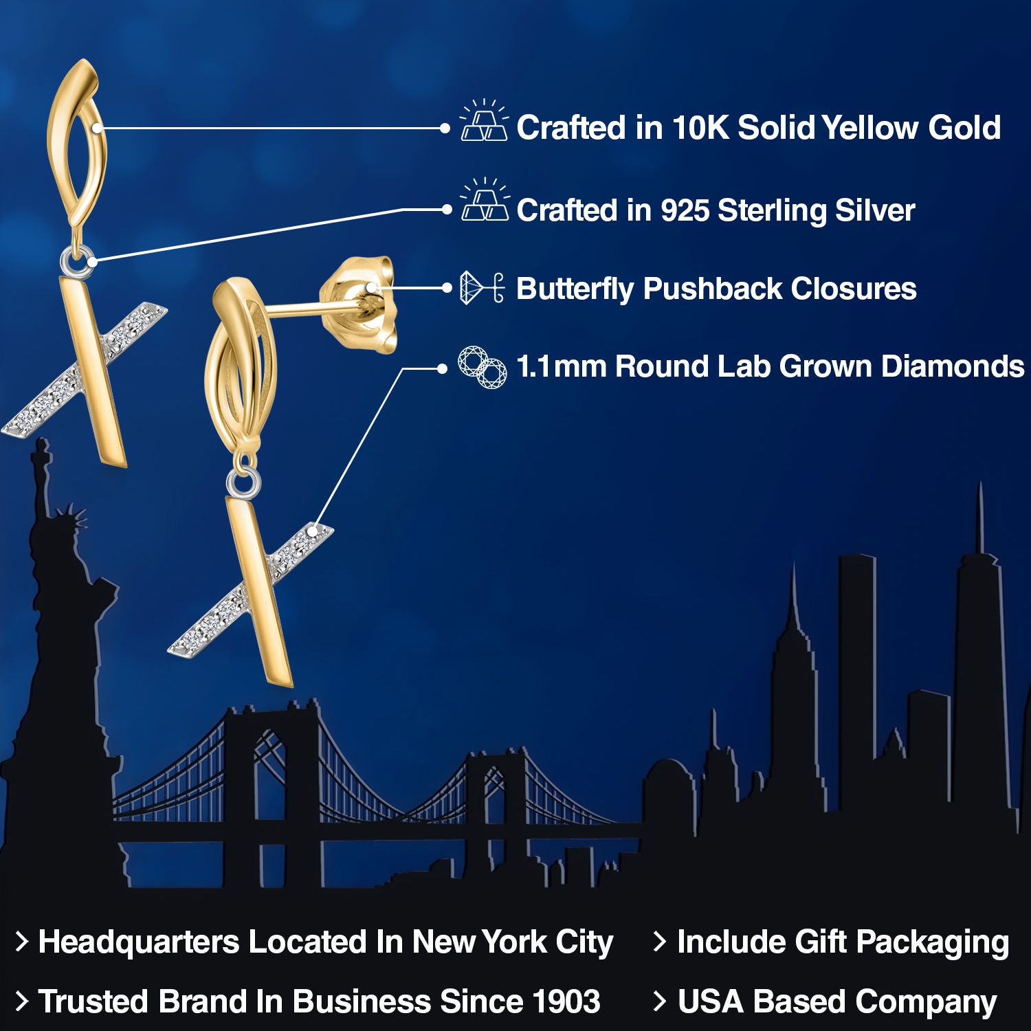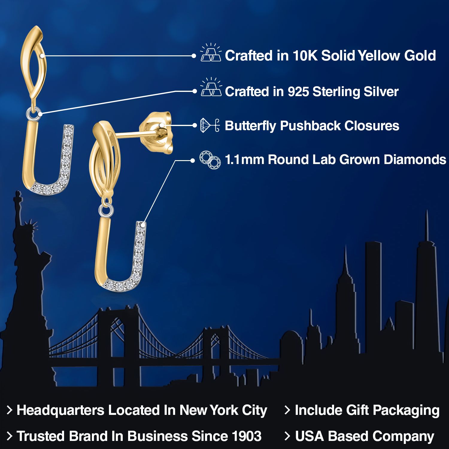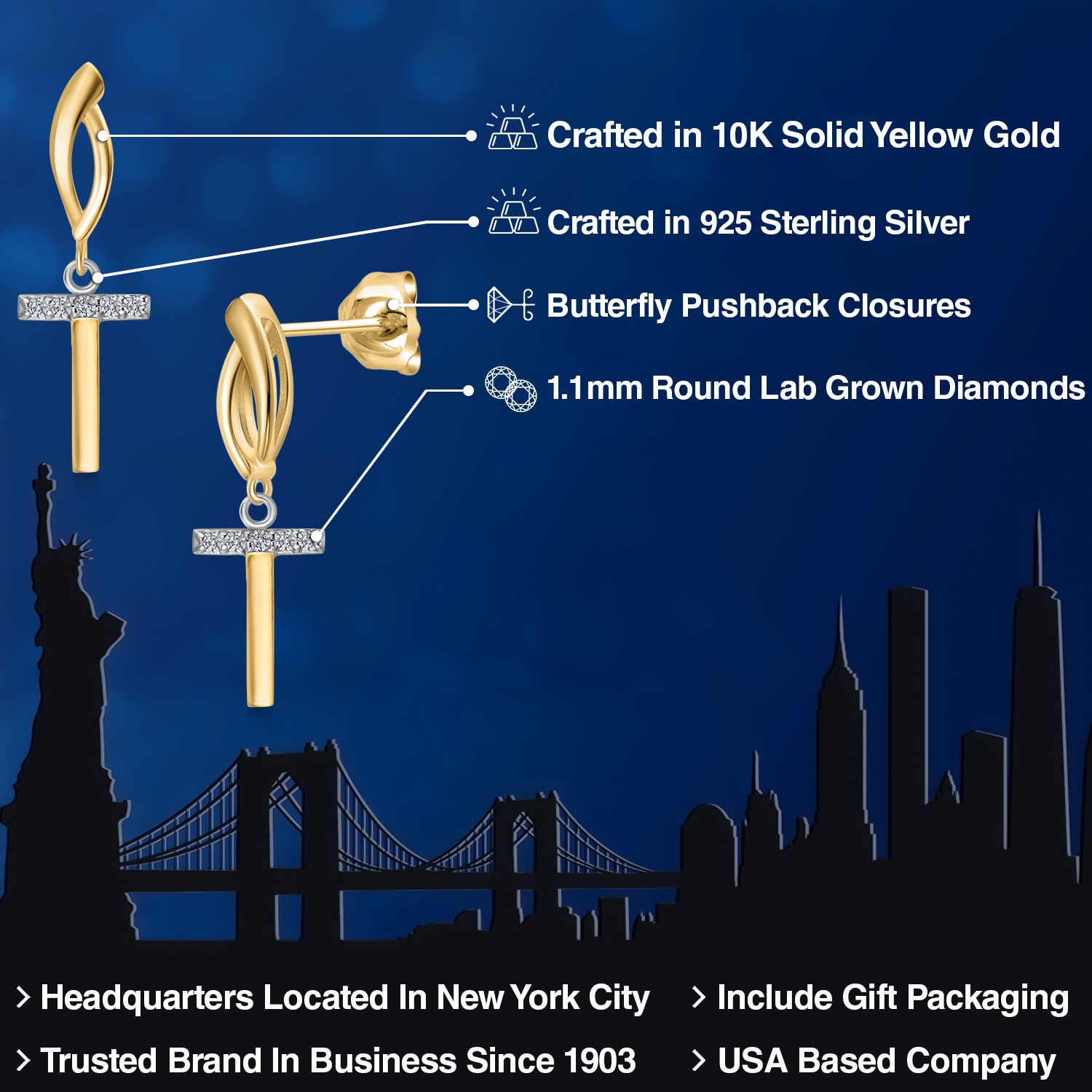 HARMONY OF YELLOW GOLD AND STERLING SILVER: Meticulously designed with the perfect harmony of 10K yellow gold and 925 sterling silver, these earrings strike a balance between warmth and timeless elegance. The dual-tone design ensures versatility and sophistication.