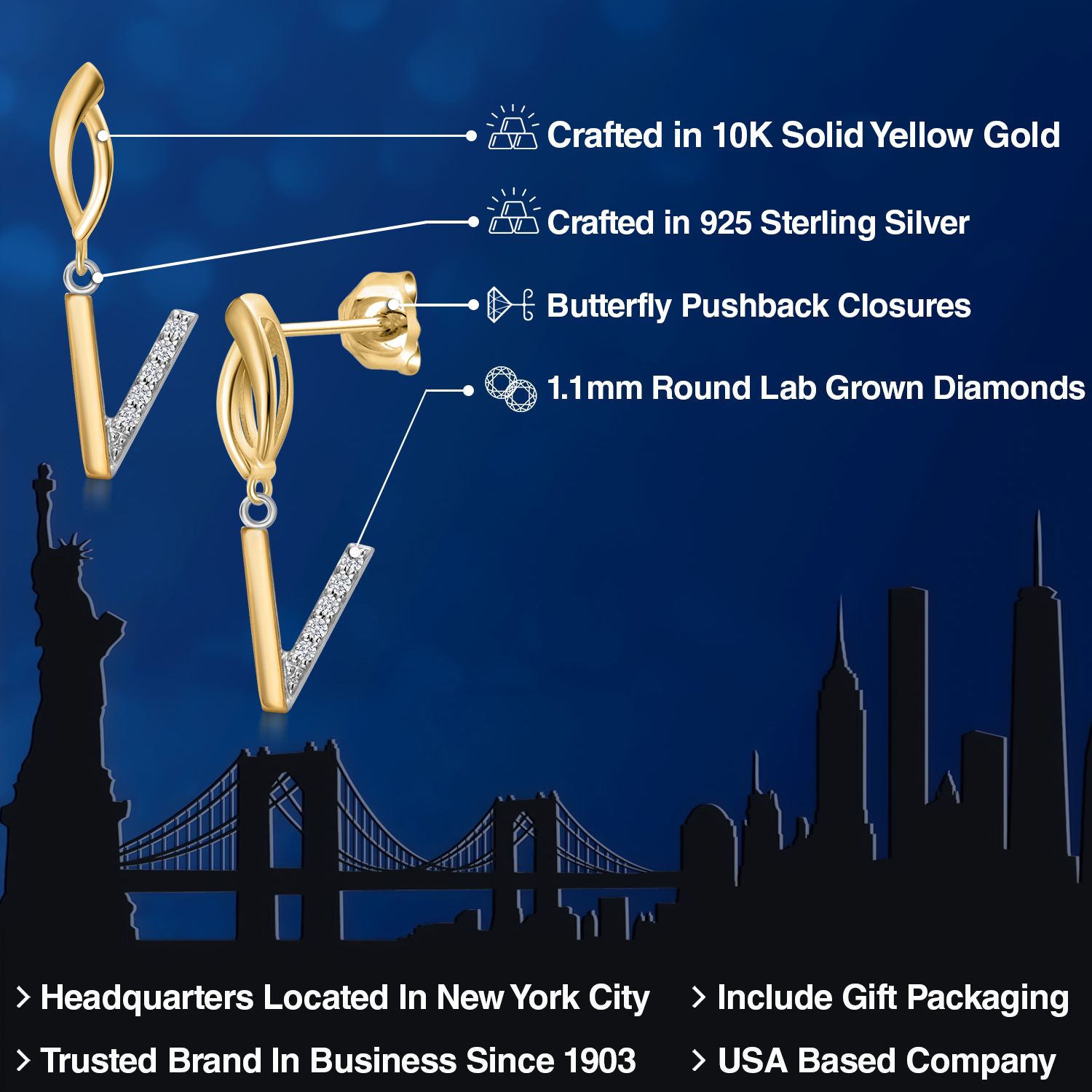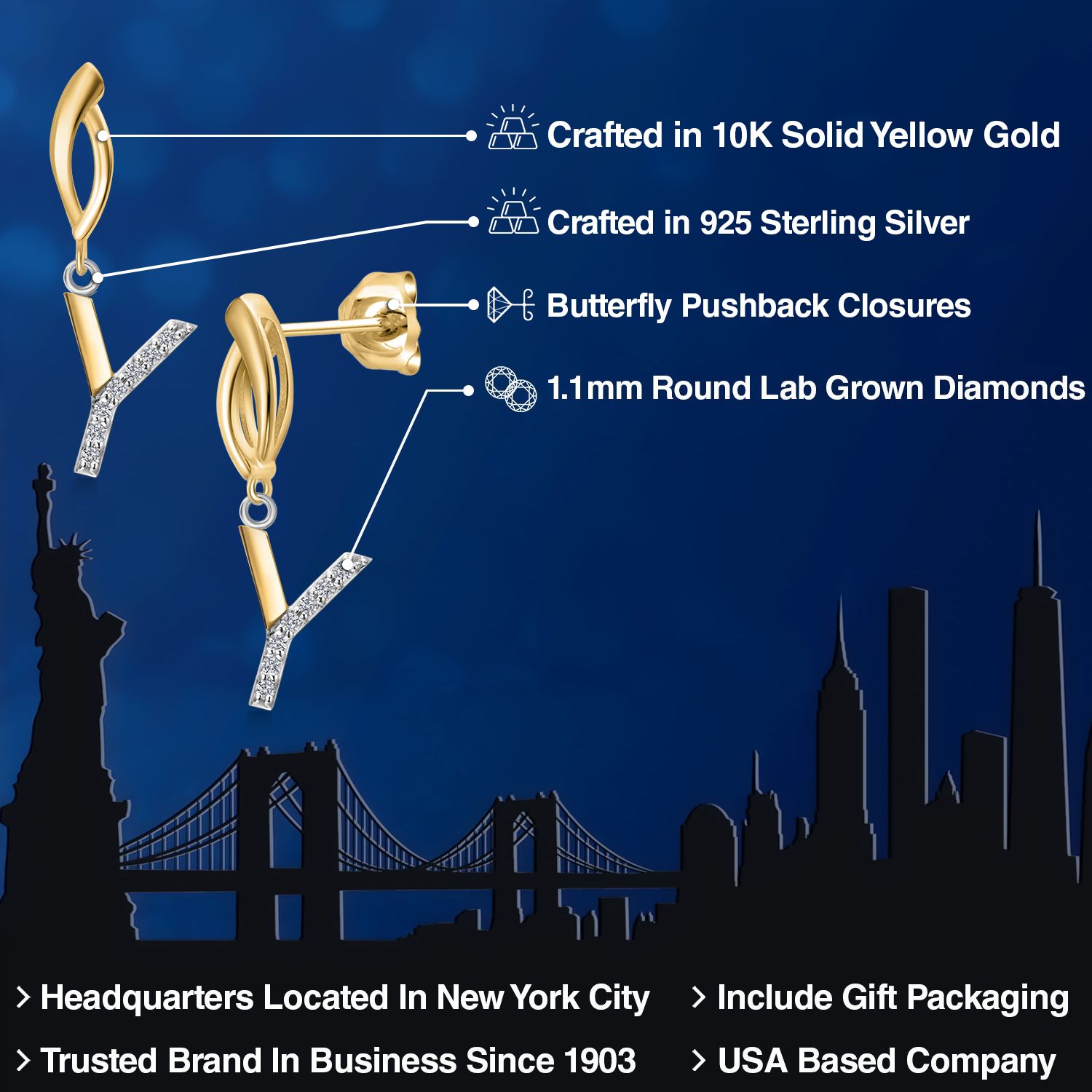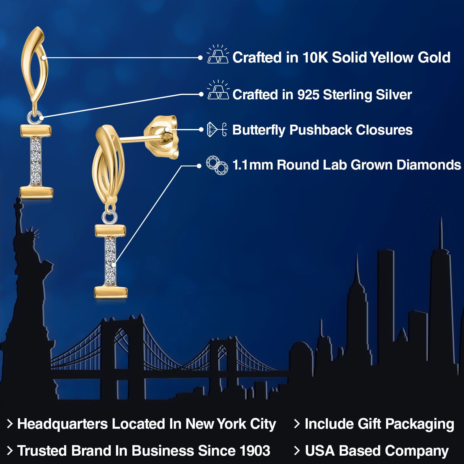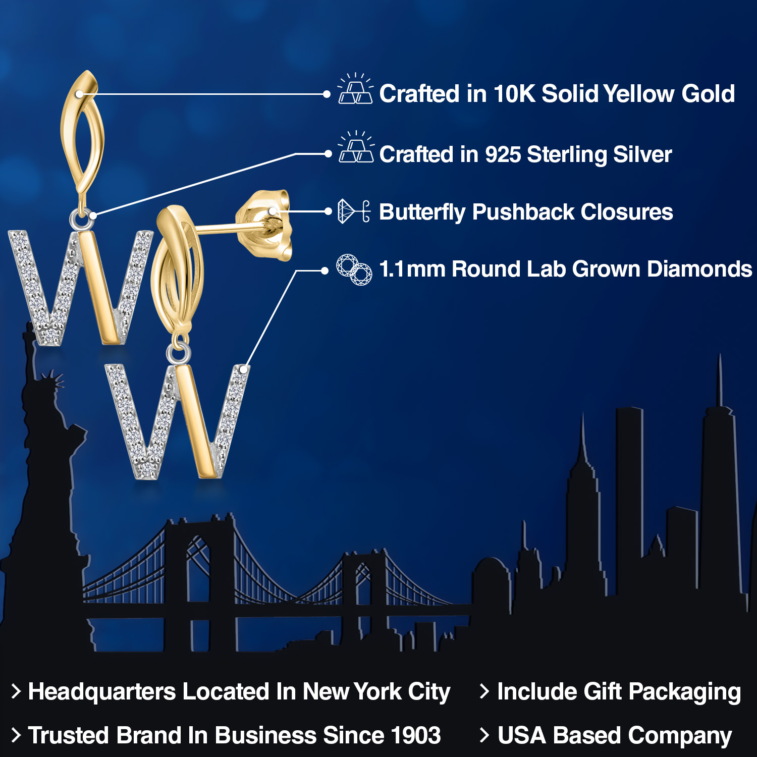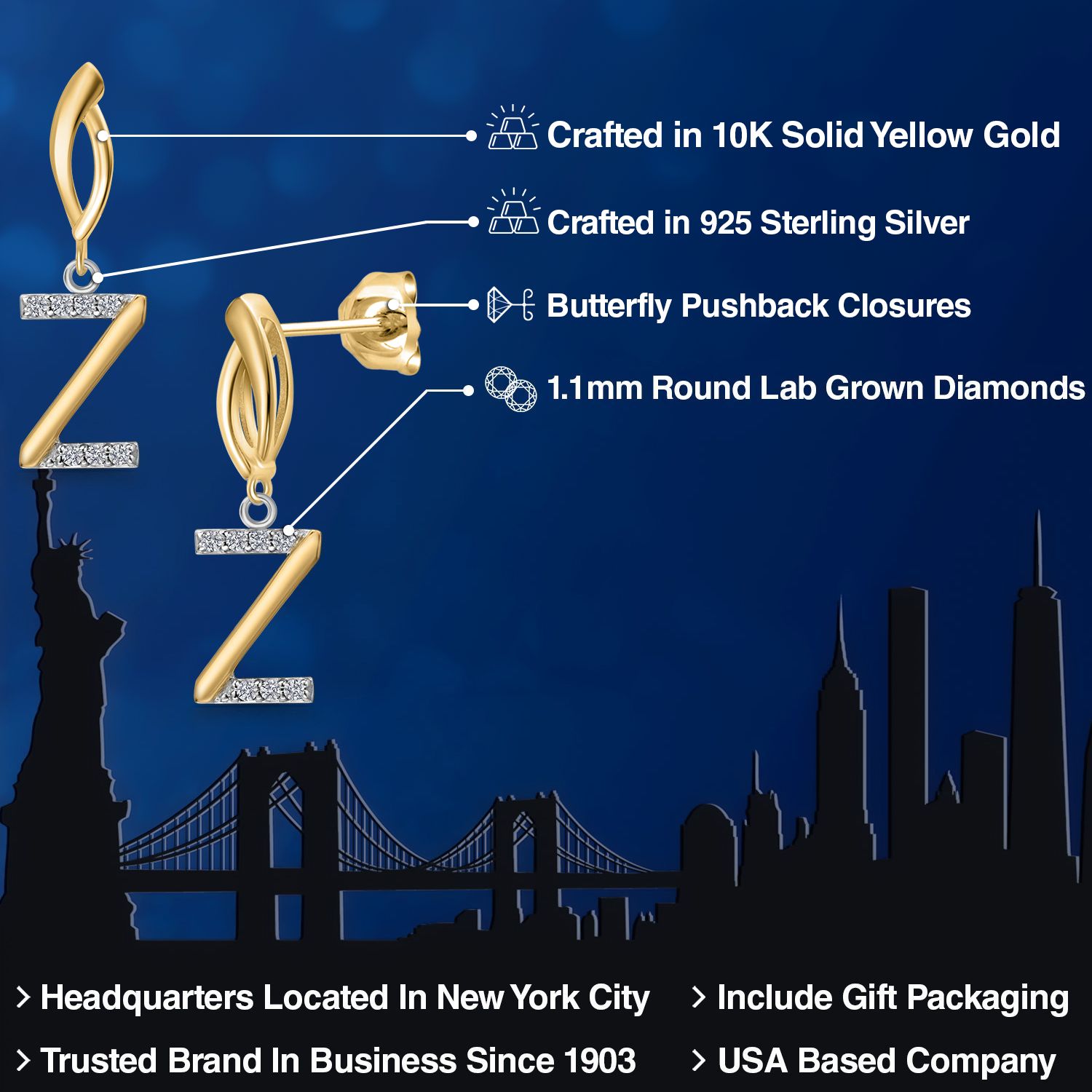 HARMONY OF YELLOW GOLD AND STERLING SILVER: Meticulously designed with the perfect harmony of 10K yellow gold and 925 sterling silver, these earrings strike a balance between warmth and timeless elegance. The dual-tone design ensures versatility and sophistication.