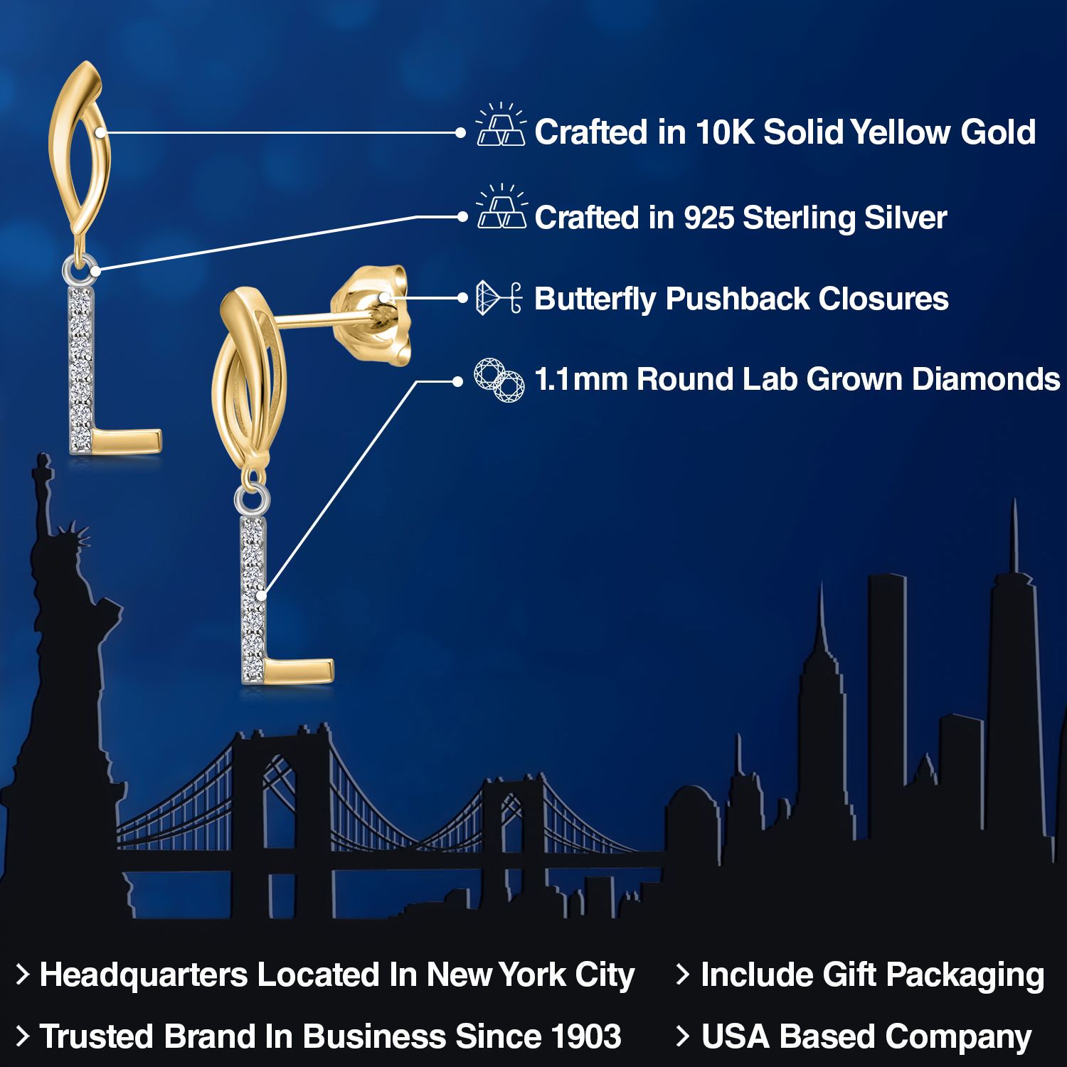 DAZZLING WHITE LAB GROWN DIAMOND ACCENTS: The initial letter charm is adorned with dazzling white lab grown diamonds, creating a captivating play of light. The carefully selected lab grown diamond adds a touch of glamour to the earrings, making it a standout piece.