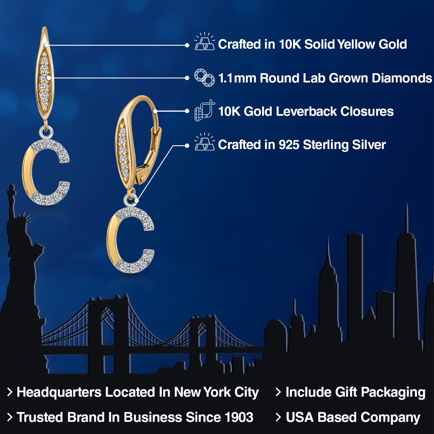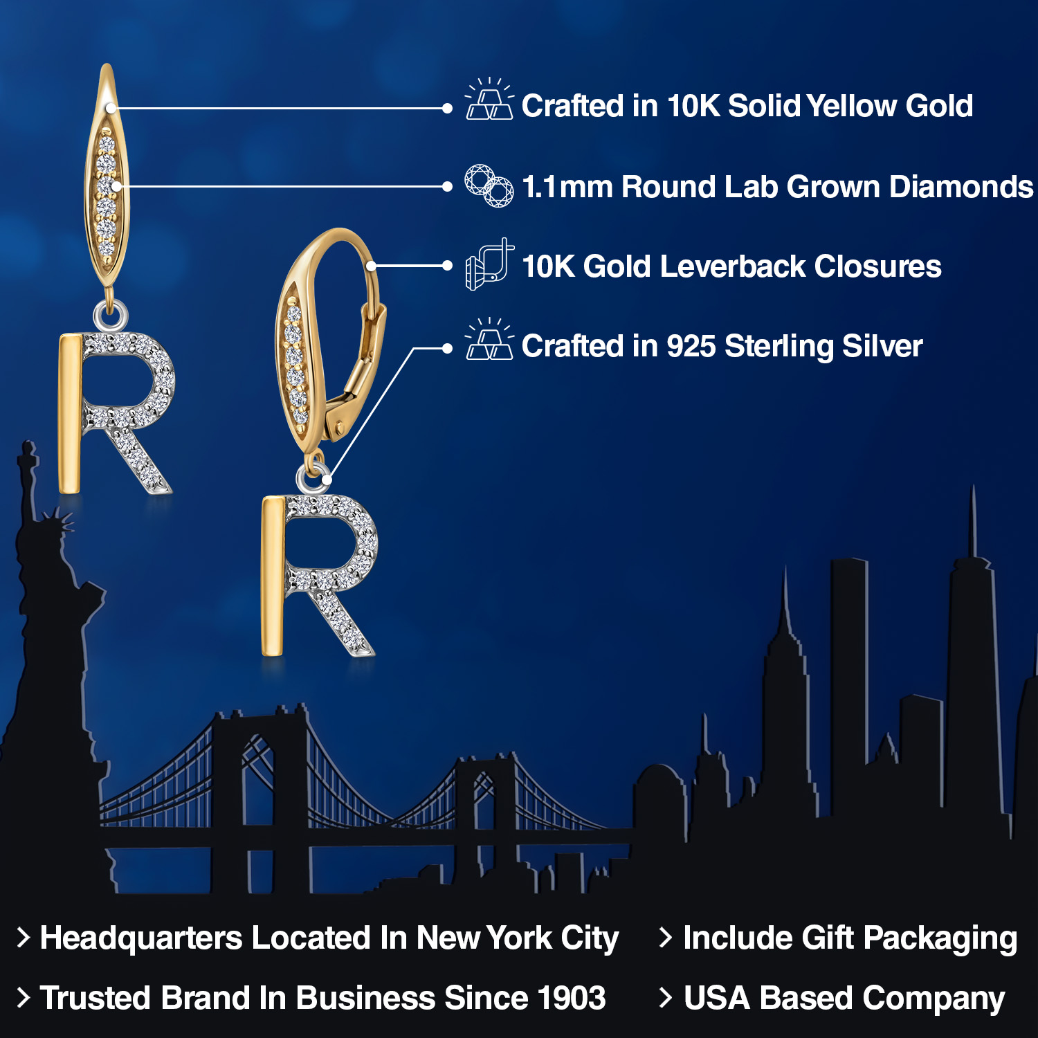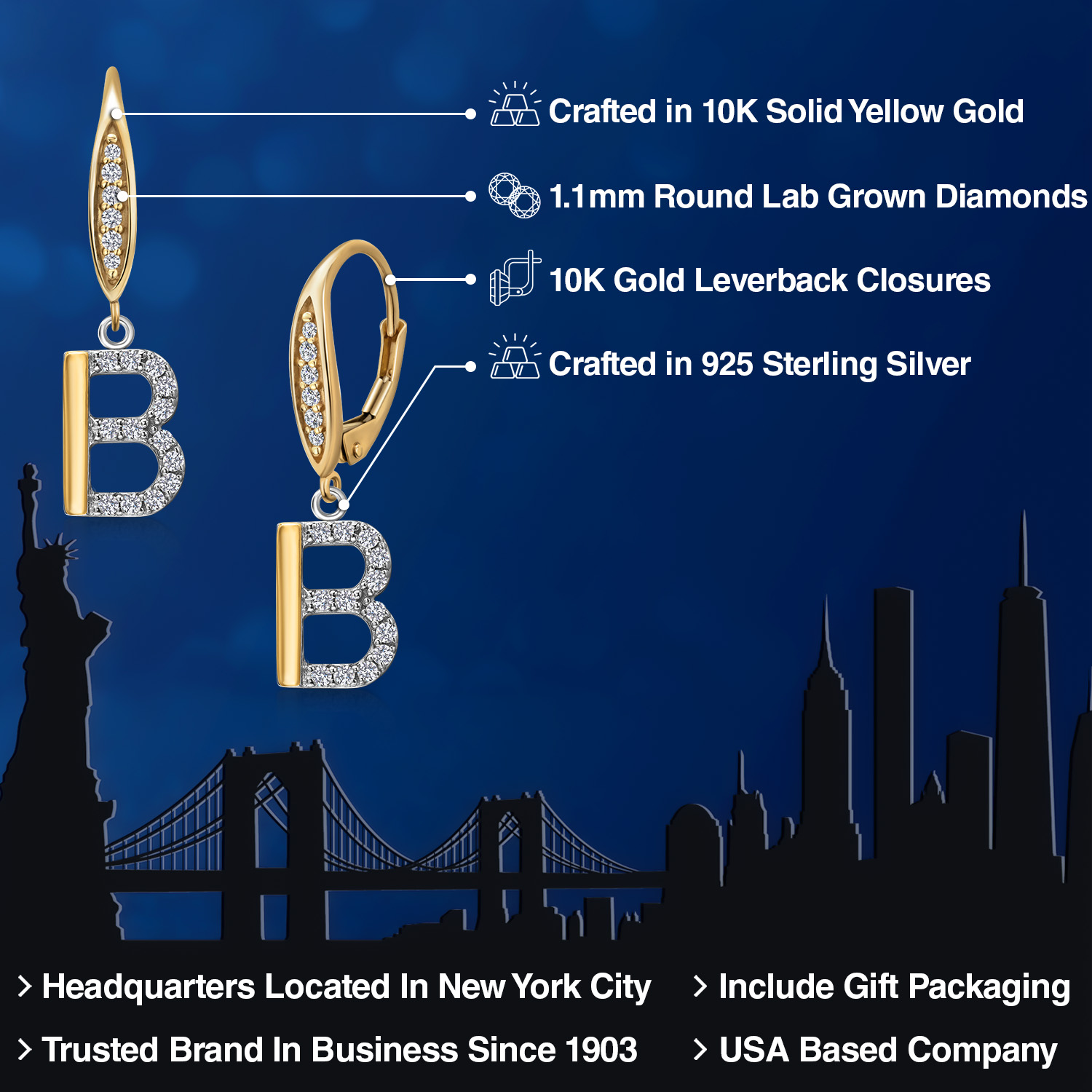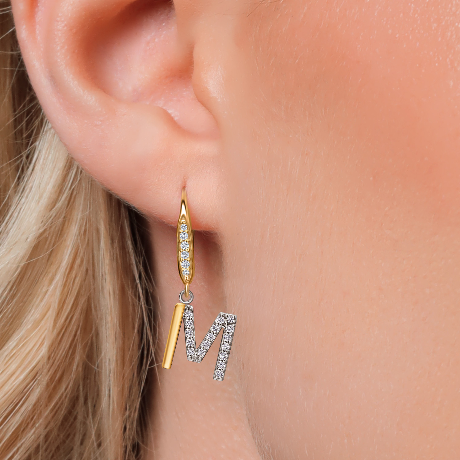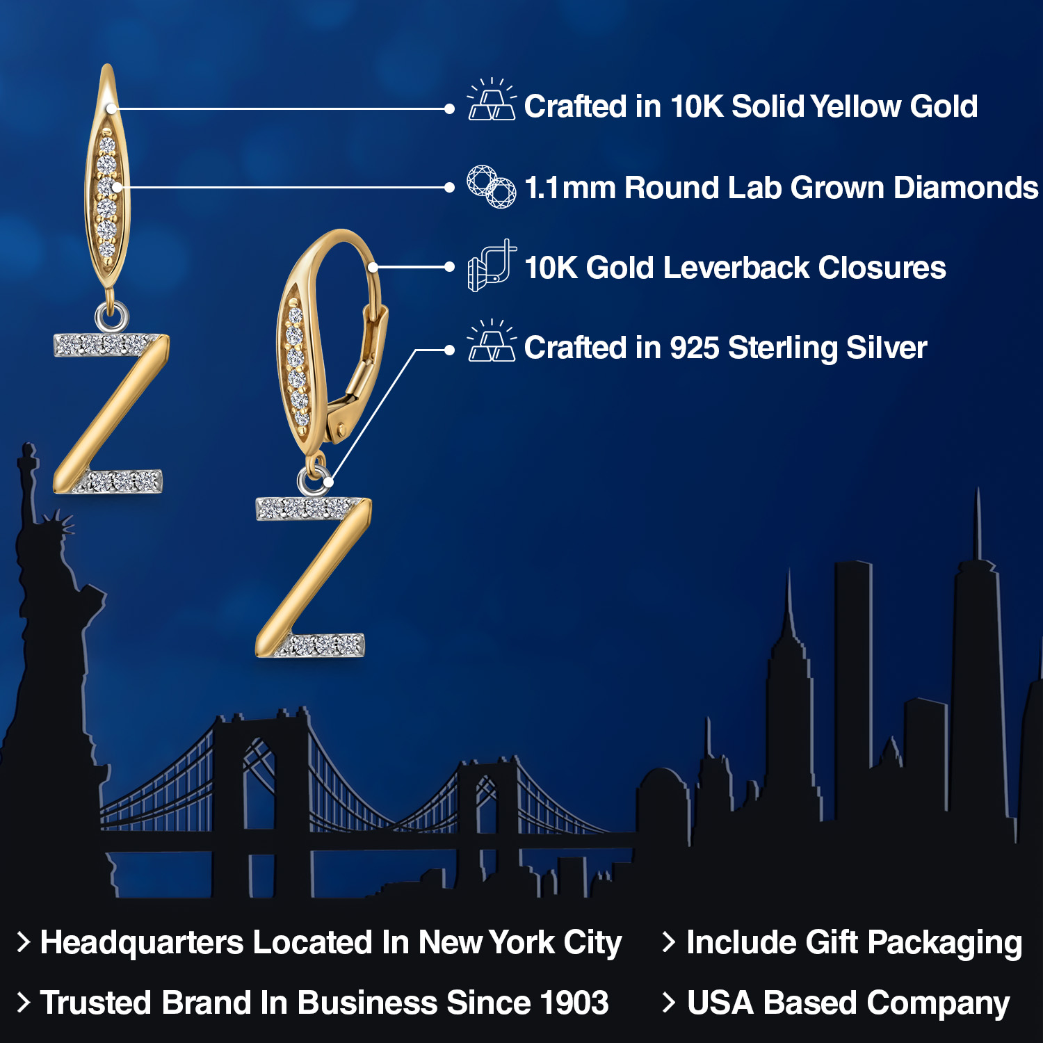 Initial Earrings Letter A to Z Alphabet | 10K Yellow Gold and 925 Sterling Silver | Lab Grown Diamond | Gift Women Mother's Day Wife Mom Girlfriend Anniversary Birthday | By Keren Hanan