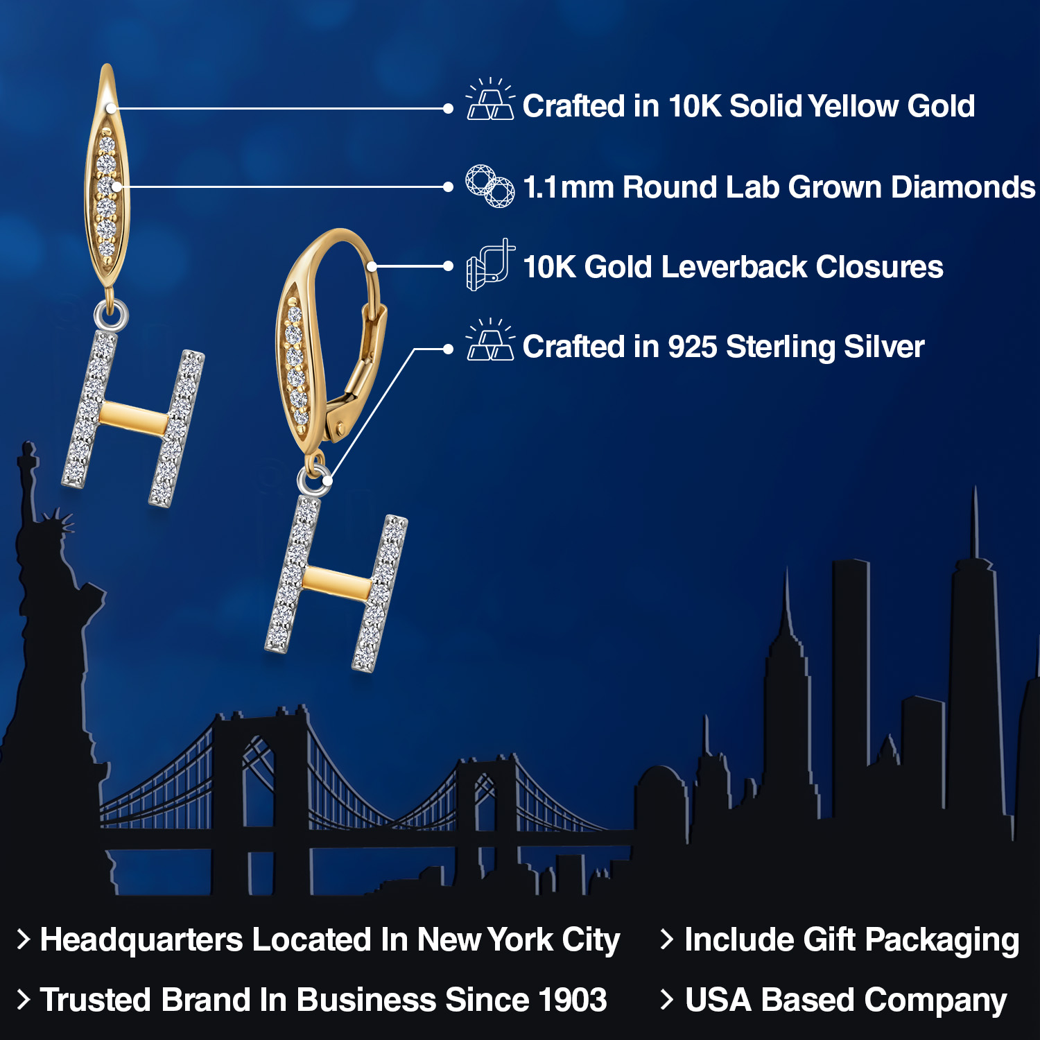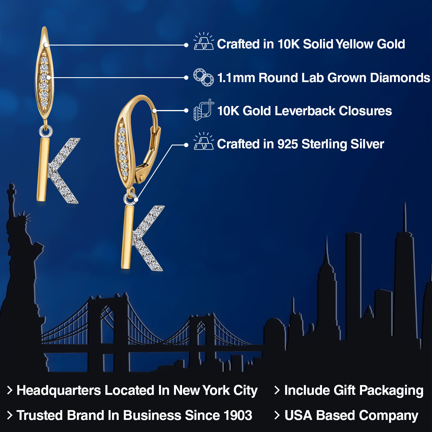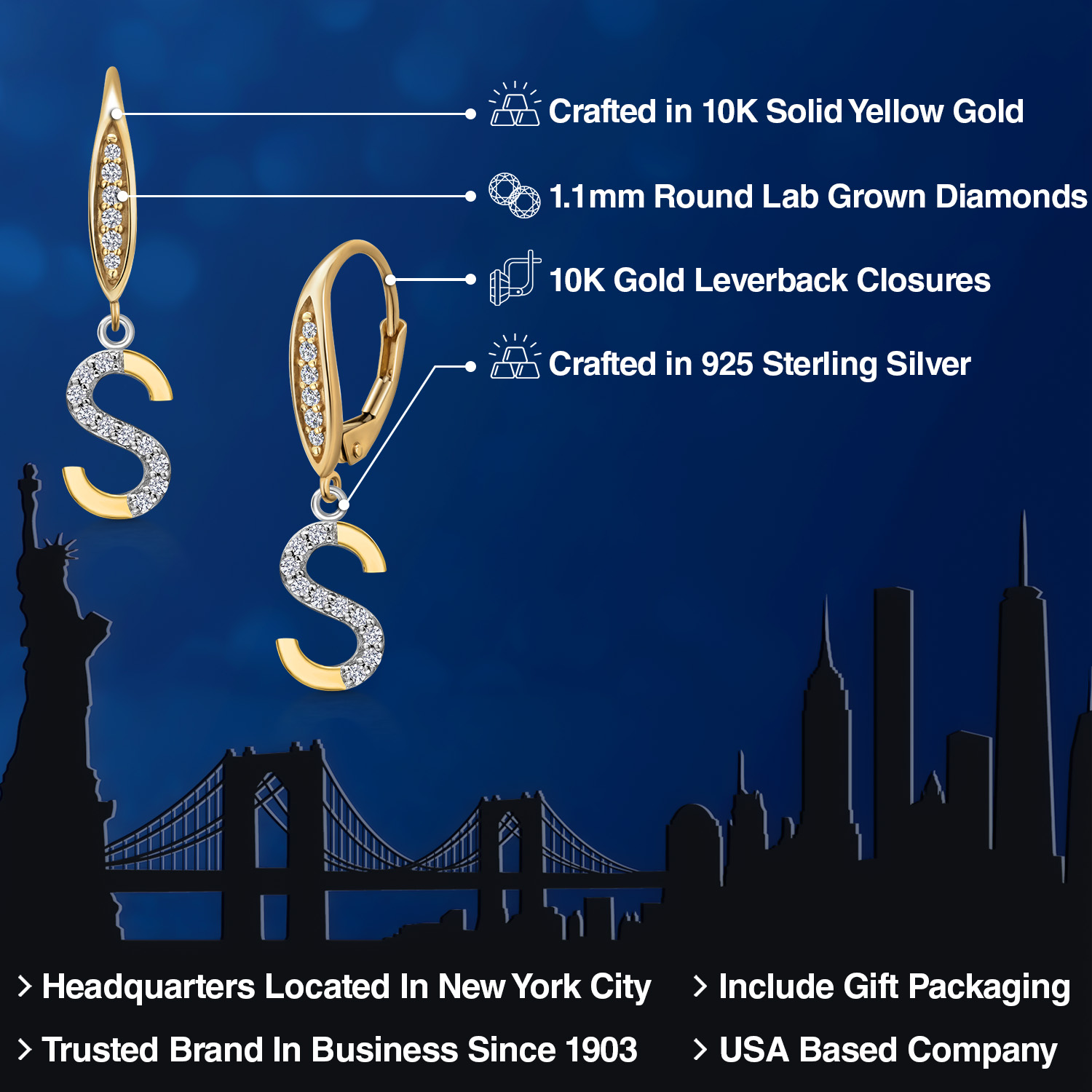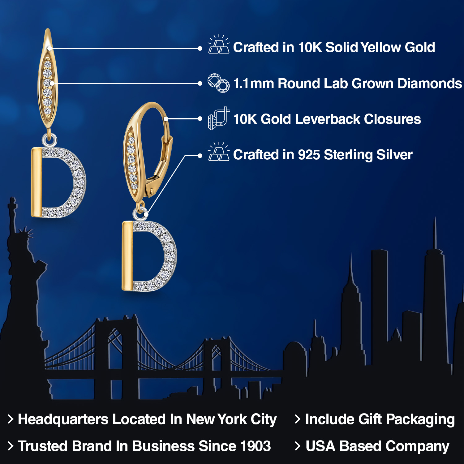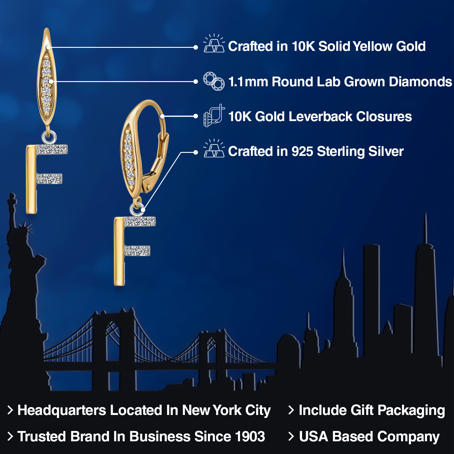 Initial Earrings Letter A to Z Alphabet | 10K Yellow Gold and 925 Sterling Silver | Lab Grown Diamond | Gift Women Mother's Day Wife Mom Girlfriend Anniversary Birthday | By Keren Hanan