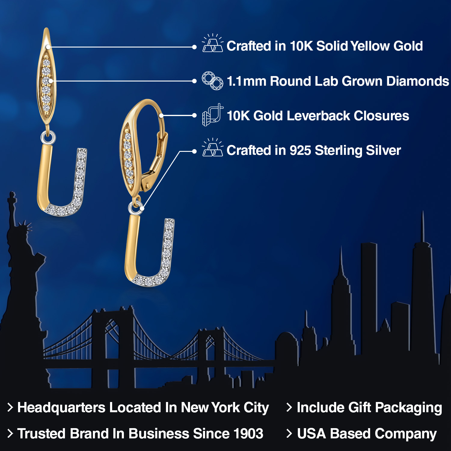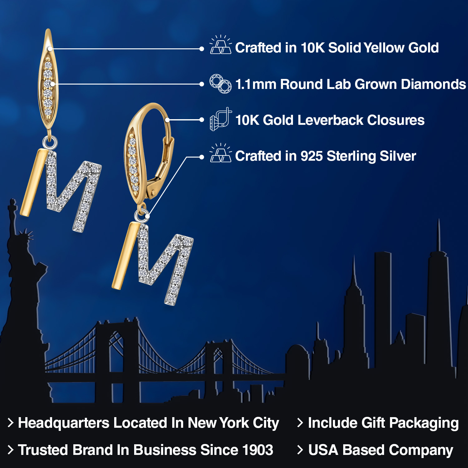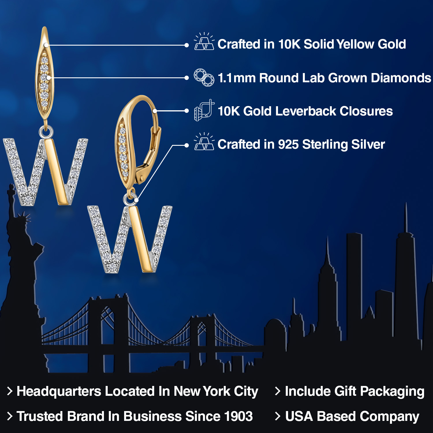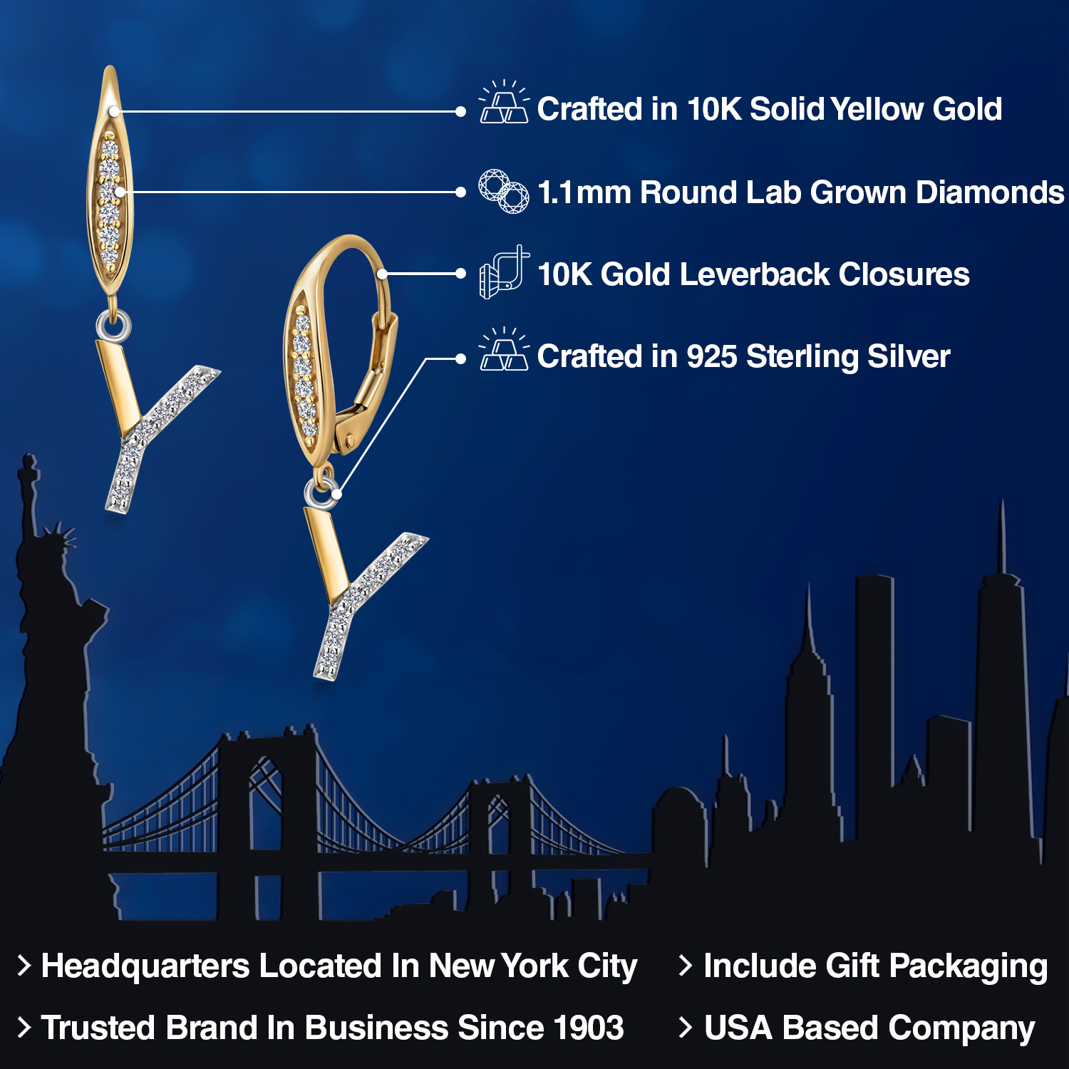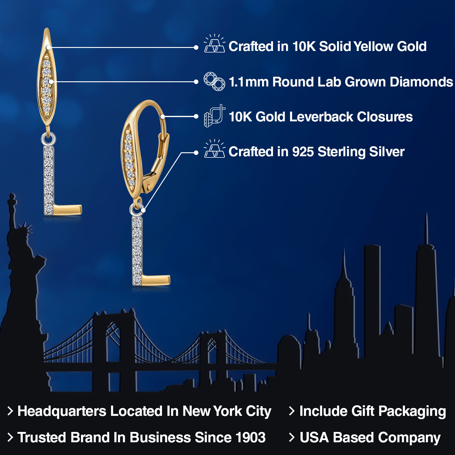 Initial Earrings Letter A to Z Alphabet | 10K Yellow Gold and 925 Sterling Silver | Lab Grown Diamond | Gift Women Mother's Day Wife Mom Girlfriend Anniversary Birthday | By Keren Hanan